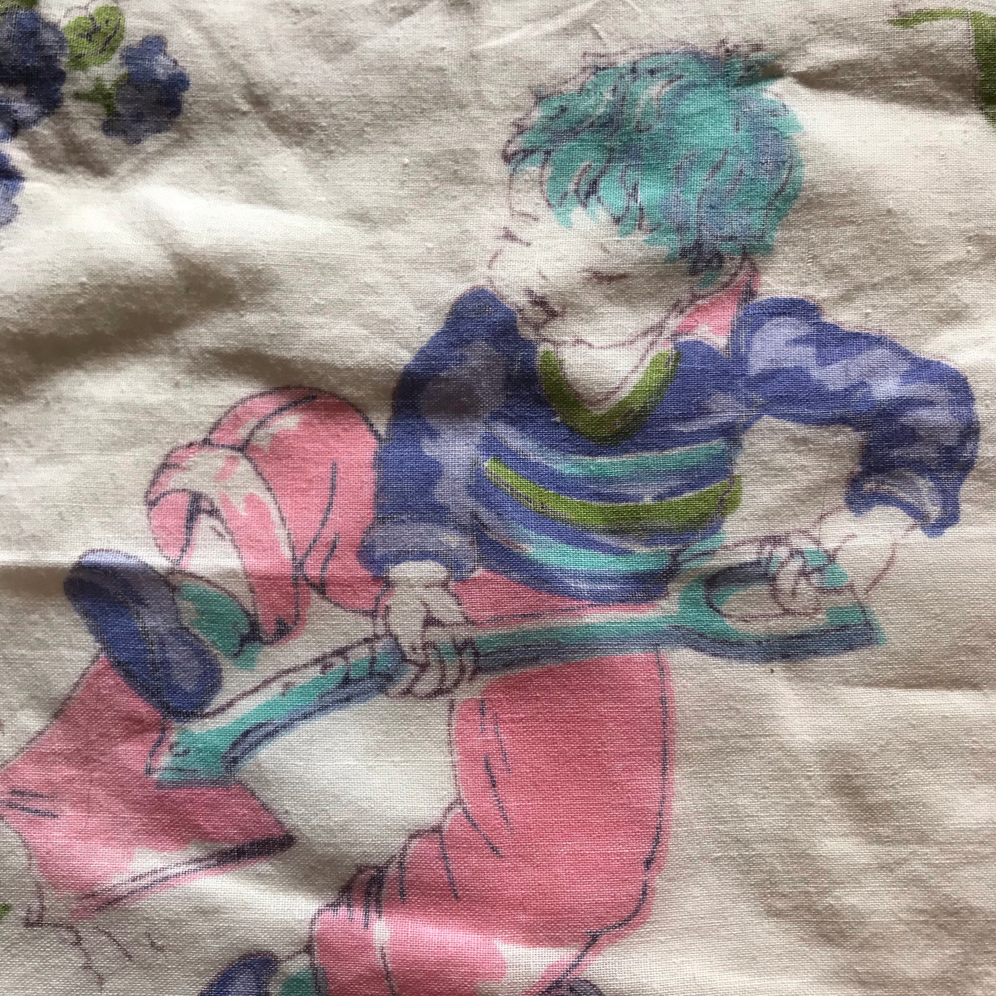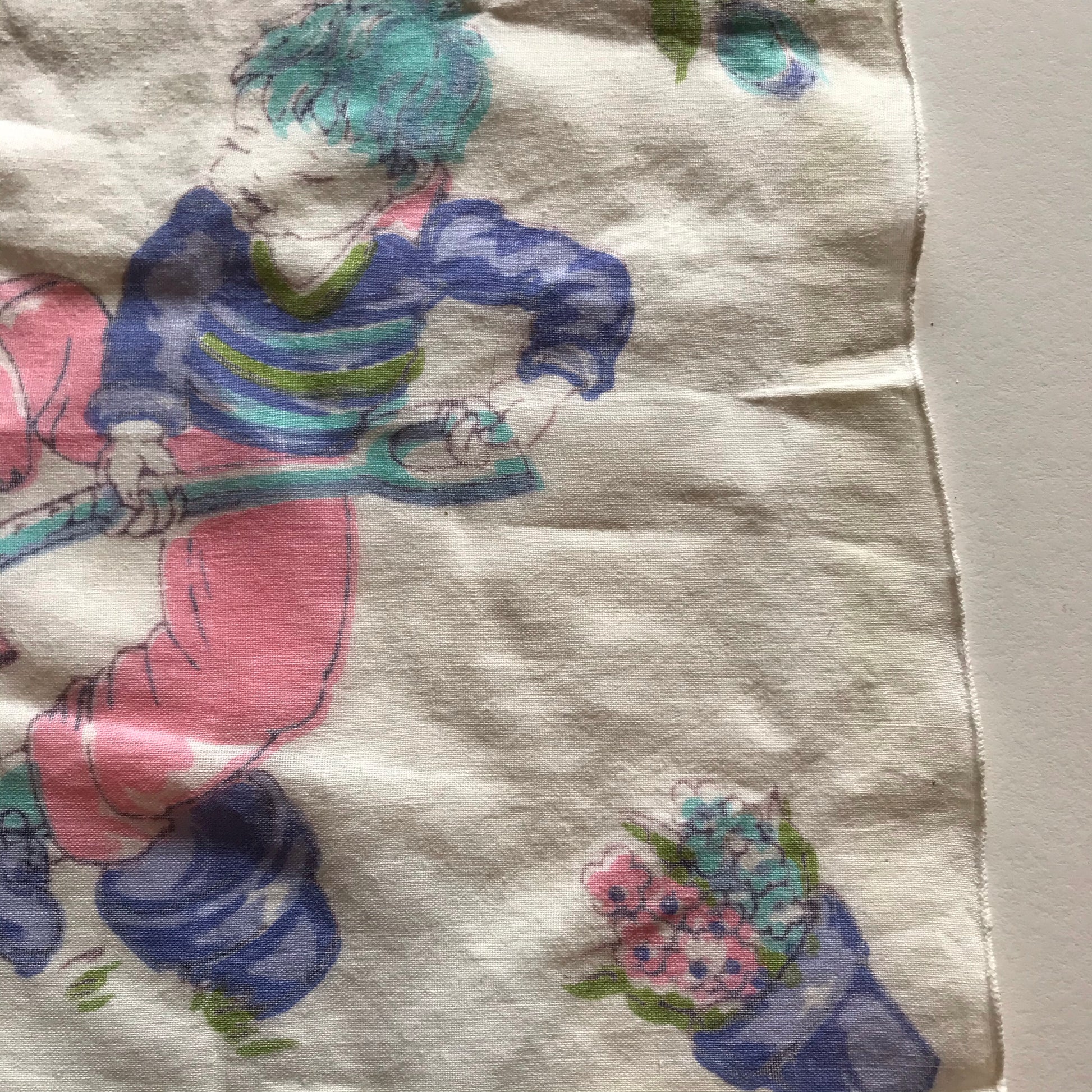 Pastel Gardening Boy Cotton Handkerchief circa 1930s