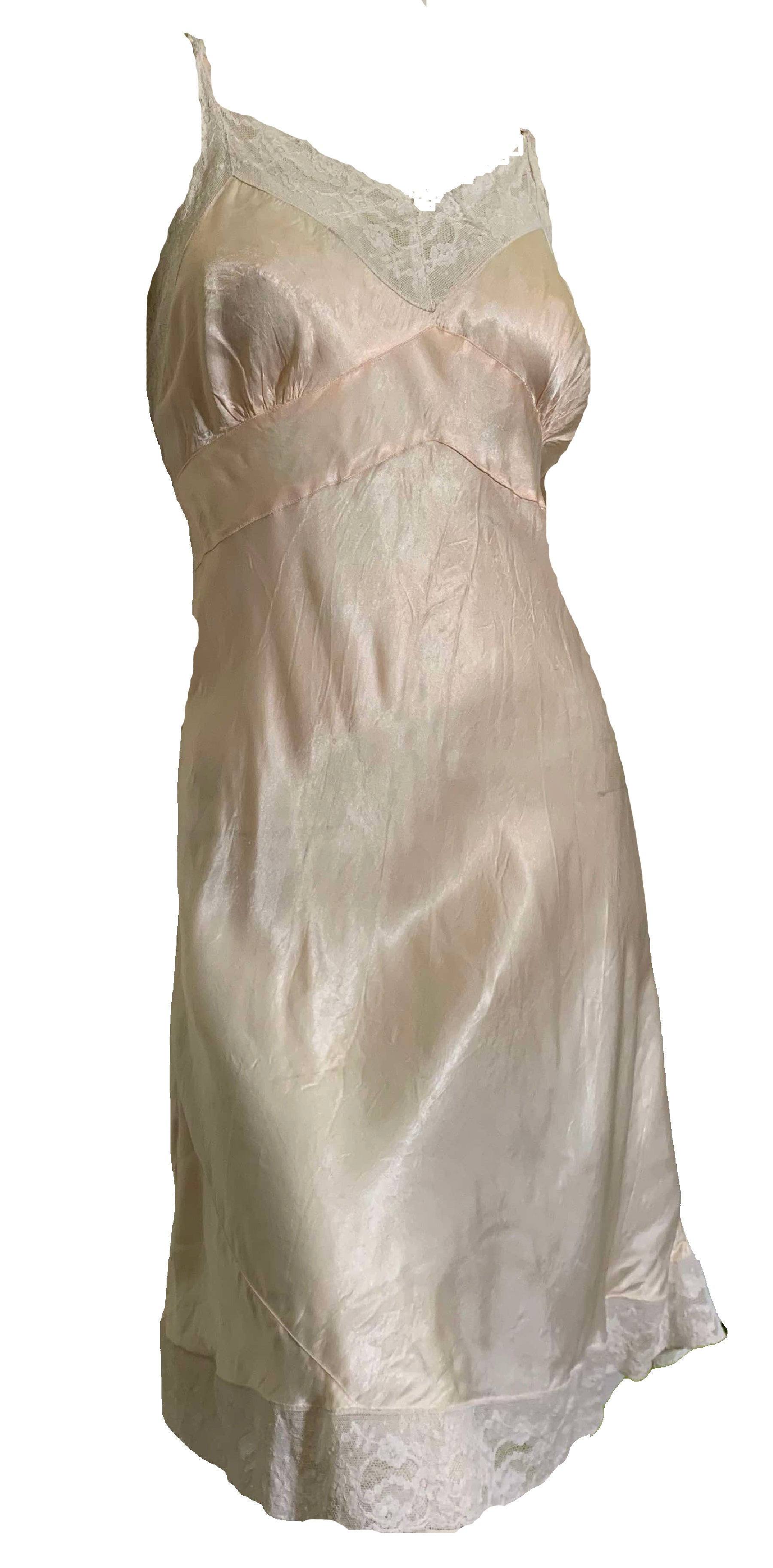 Peach Satin Embroidered Full Slip circa 1940s 38