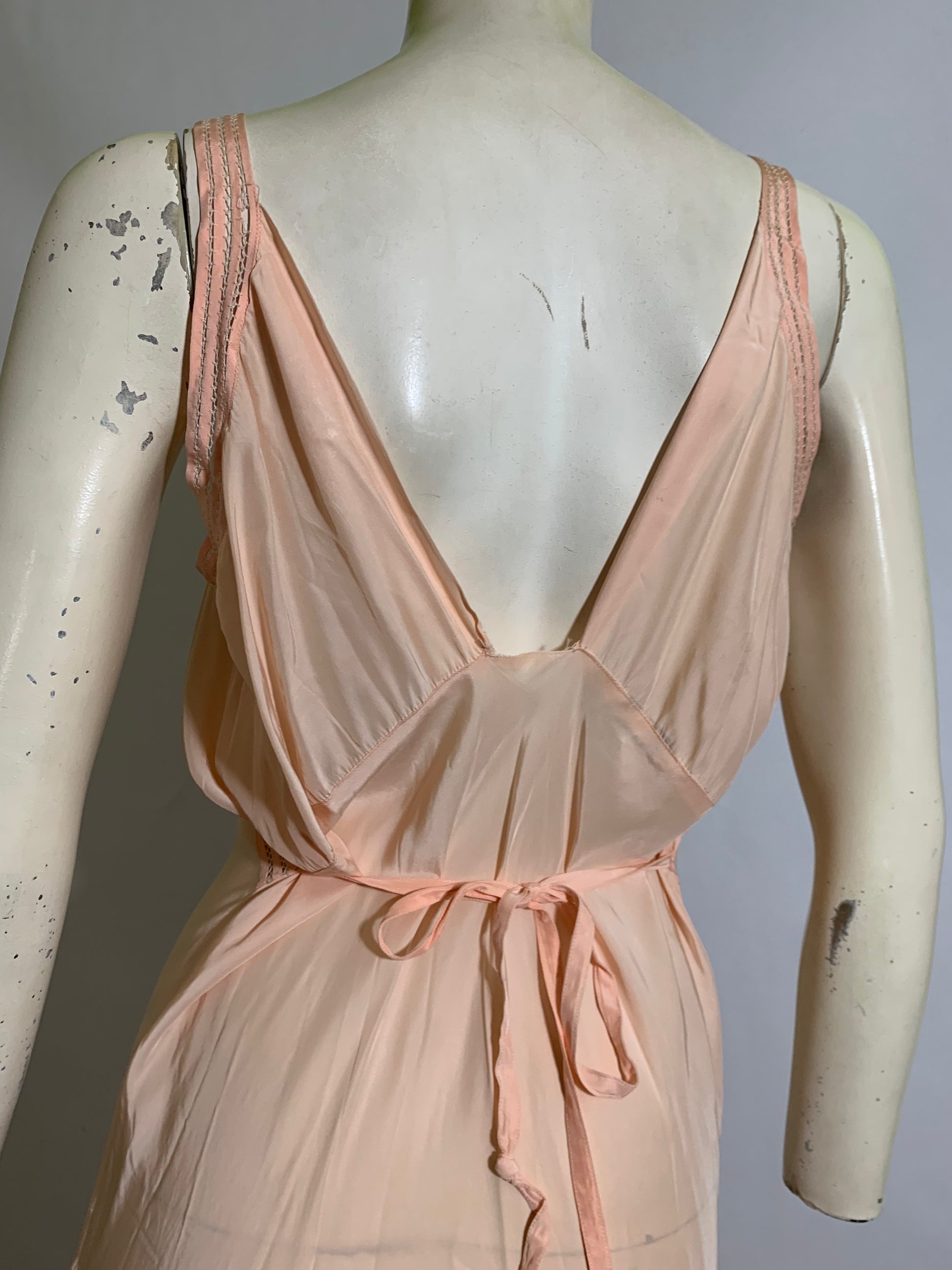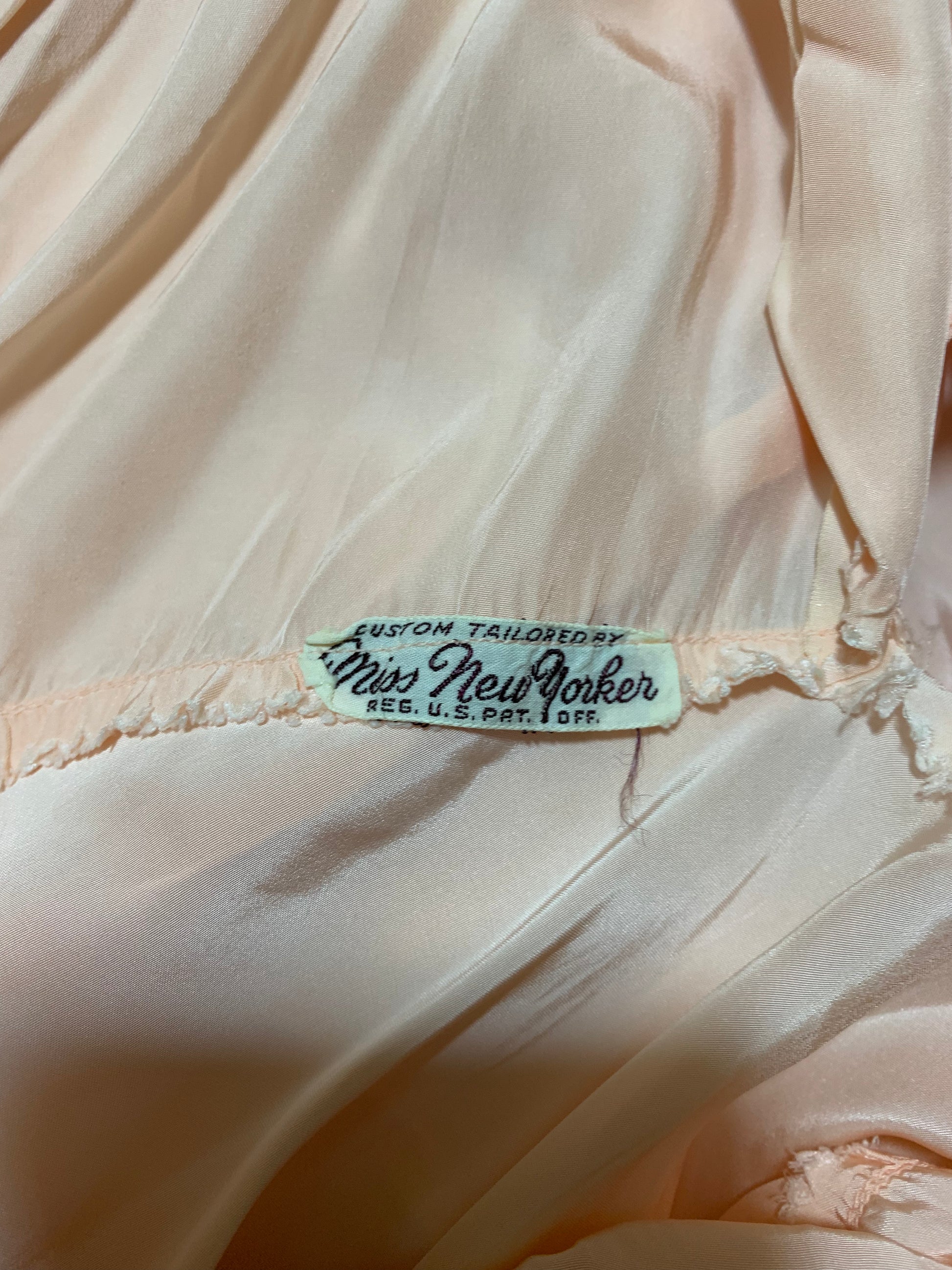 Peach Silk Bow Trimmed Bias Cut Nightgown circa 1930s