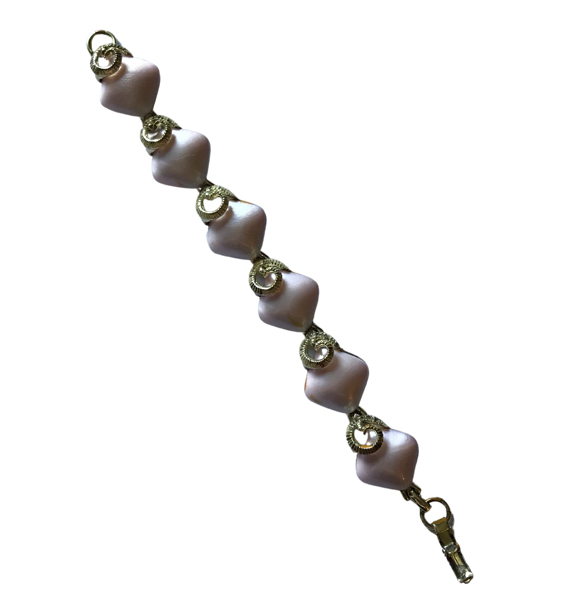 Pink Thermoset Plastic Shell Shaped Link Bracelet circa 1960s