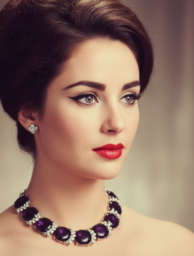 Purple Thermoset Plastic Disc Necklace with Rhinestones circa 1960s