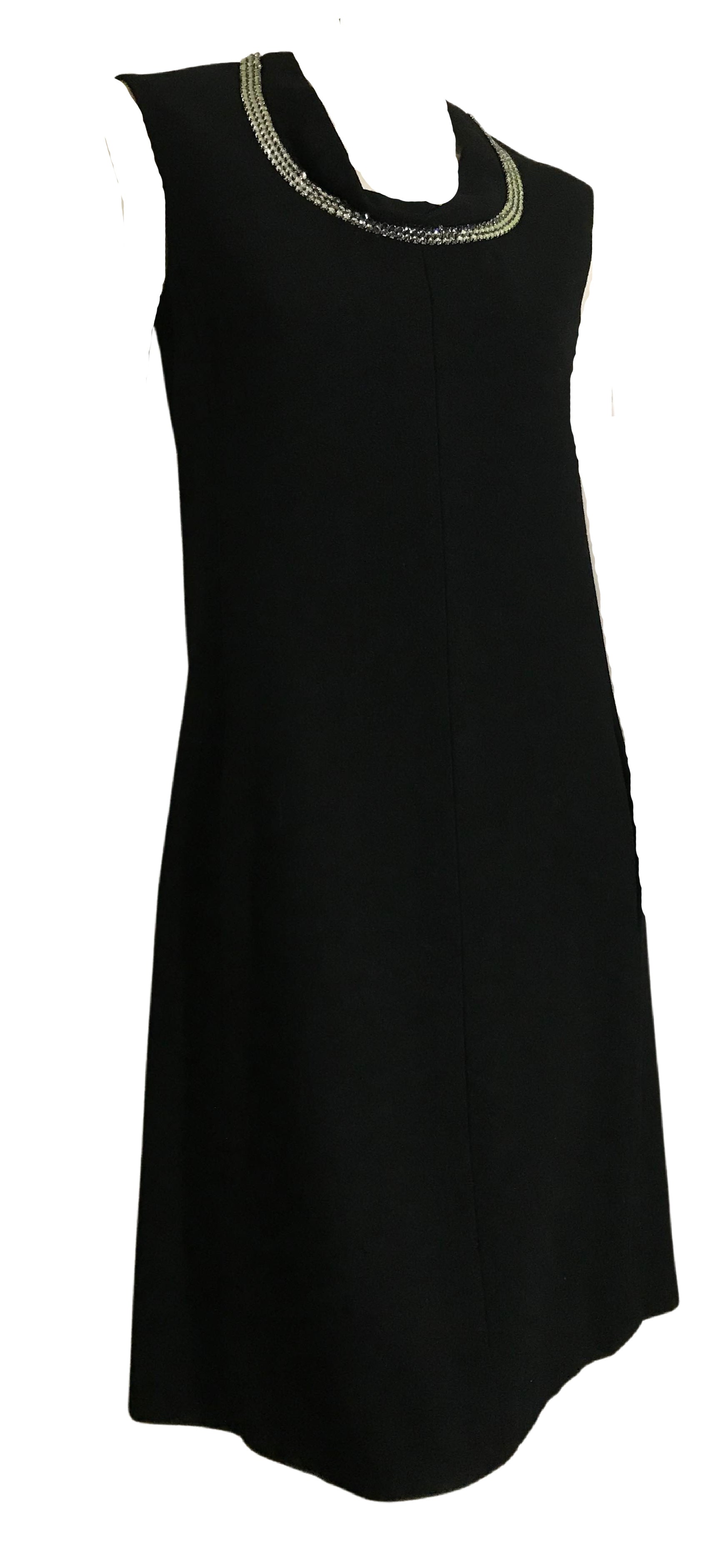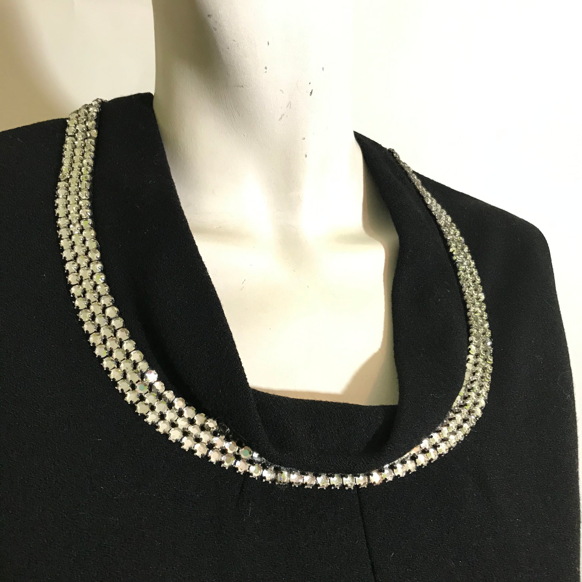 Rhinestone Collar Sleeveless Black Cocktail Dress circa 1960s