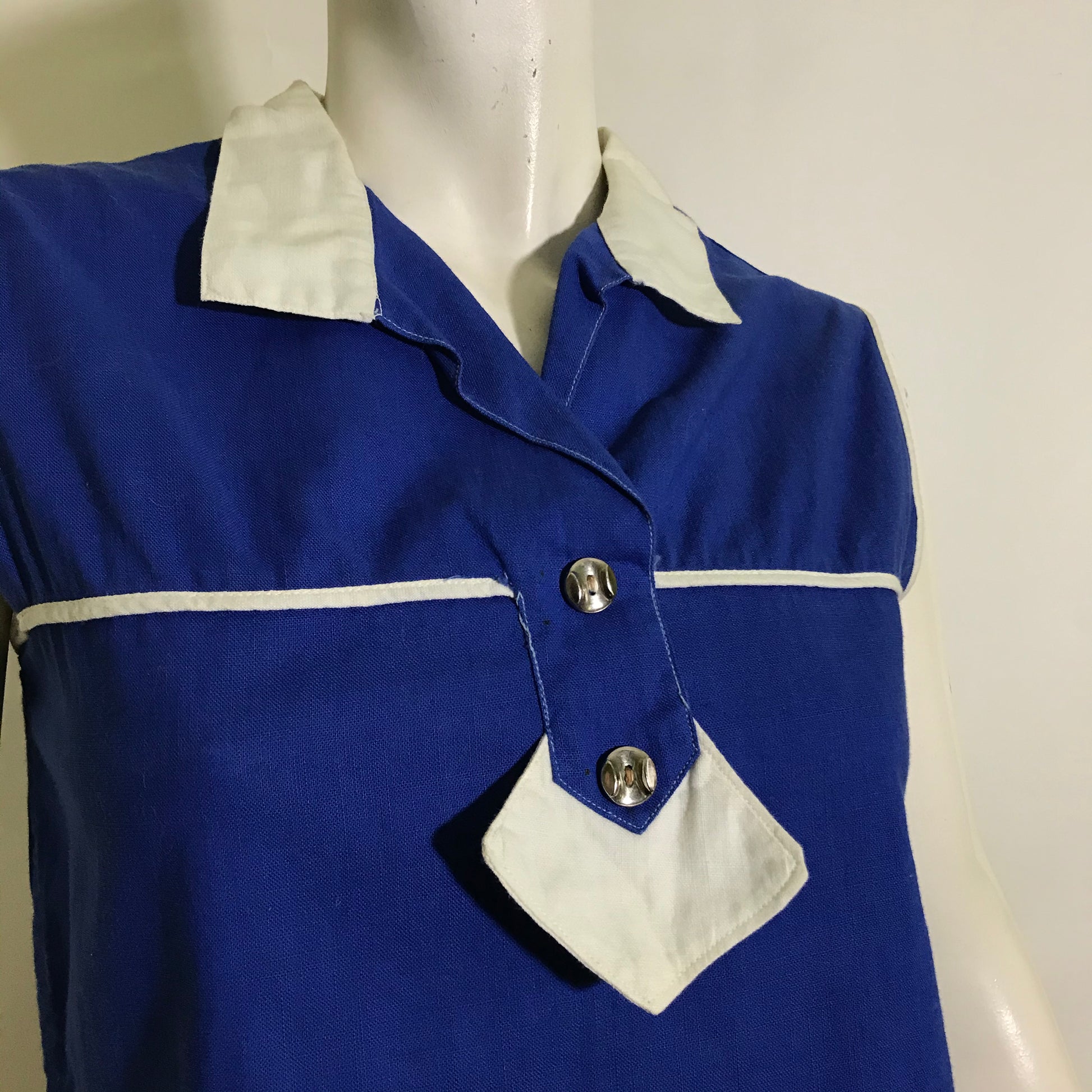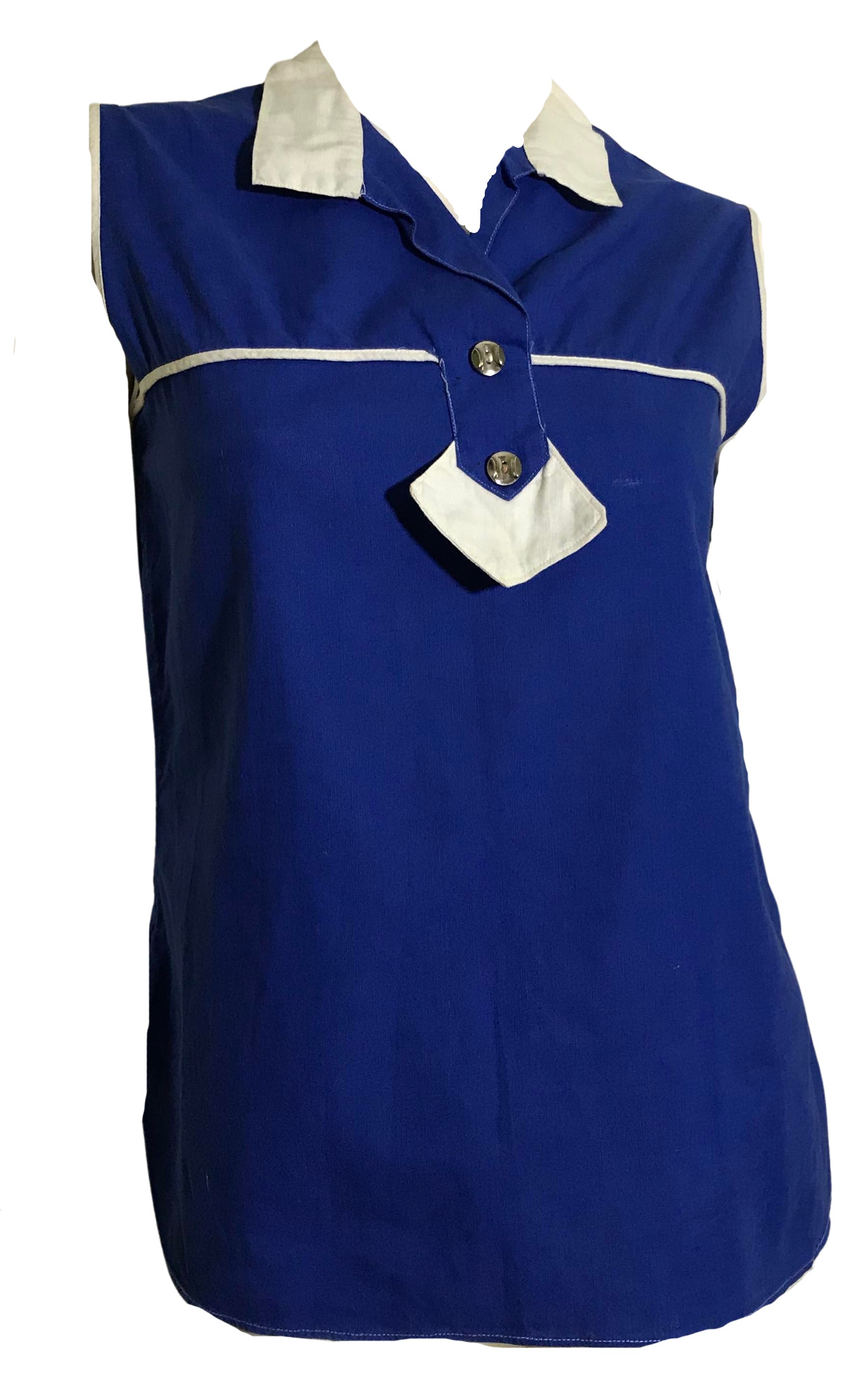Royal Blue and White Sleeveless Blouse circa 1960s