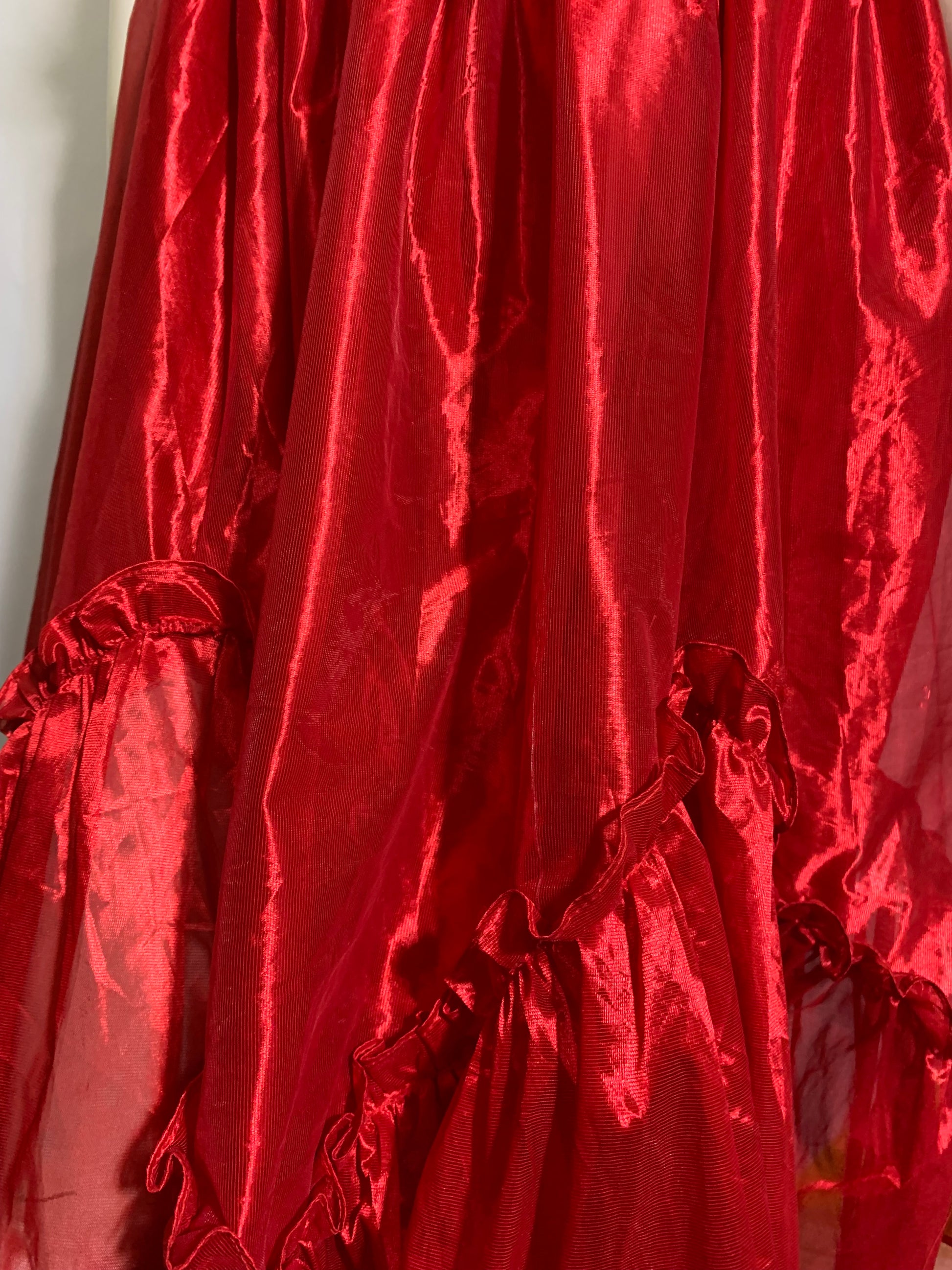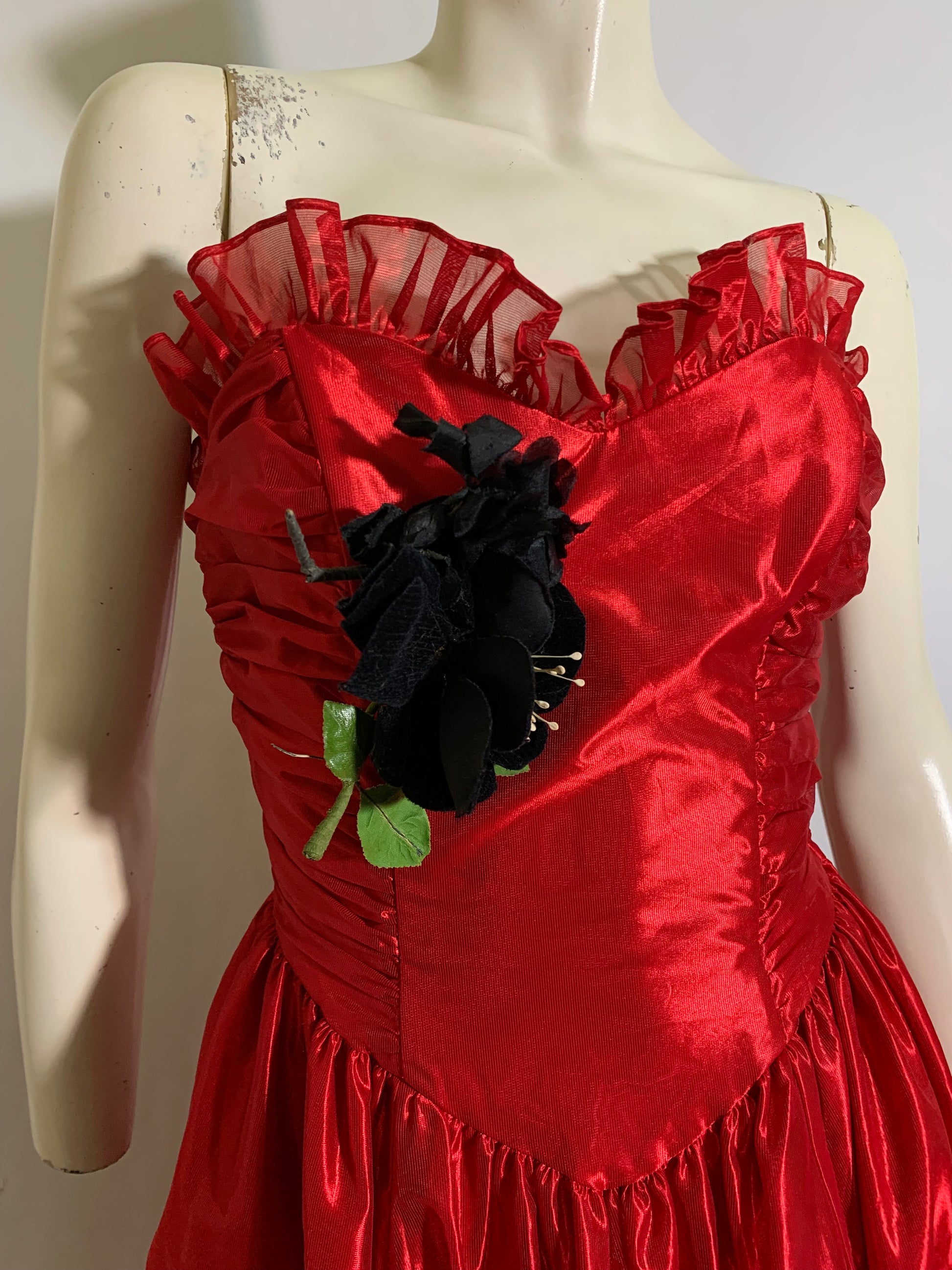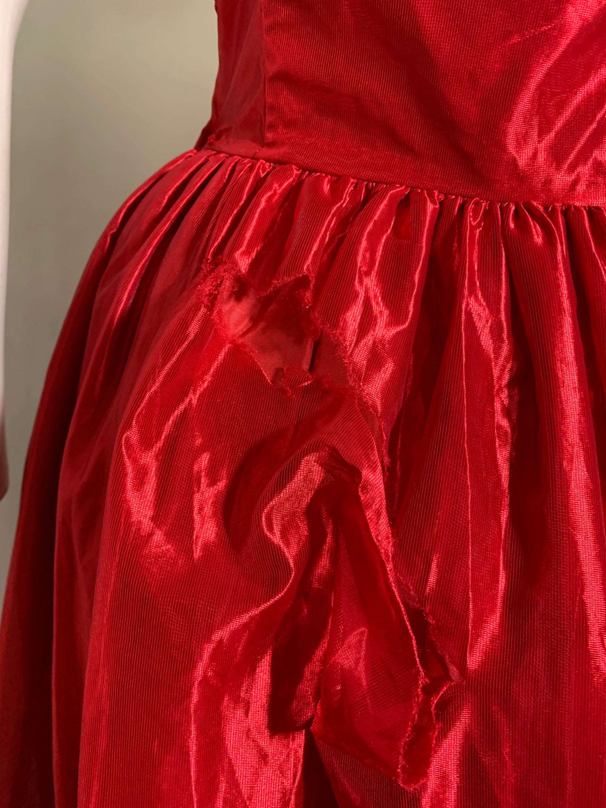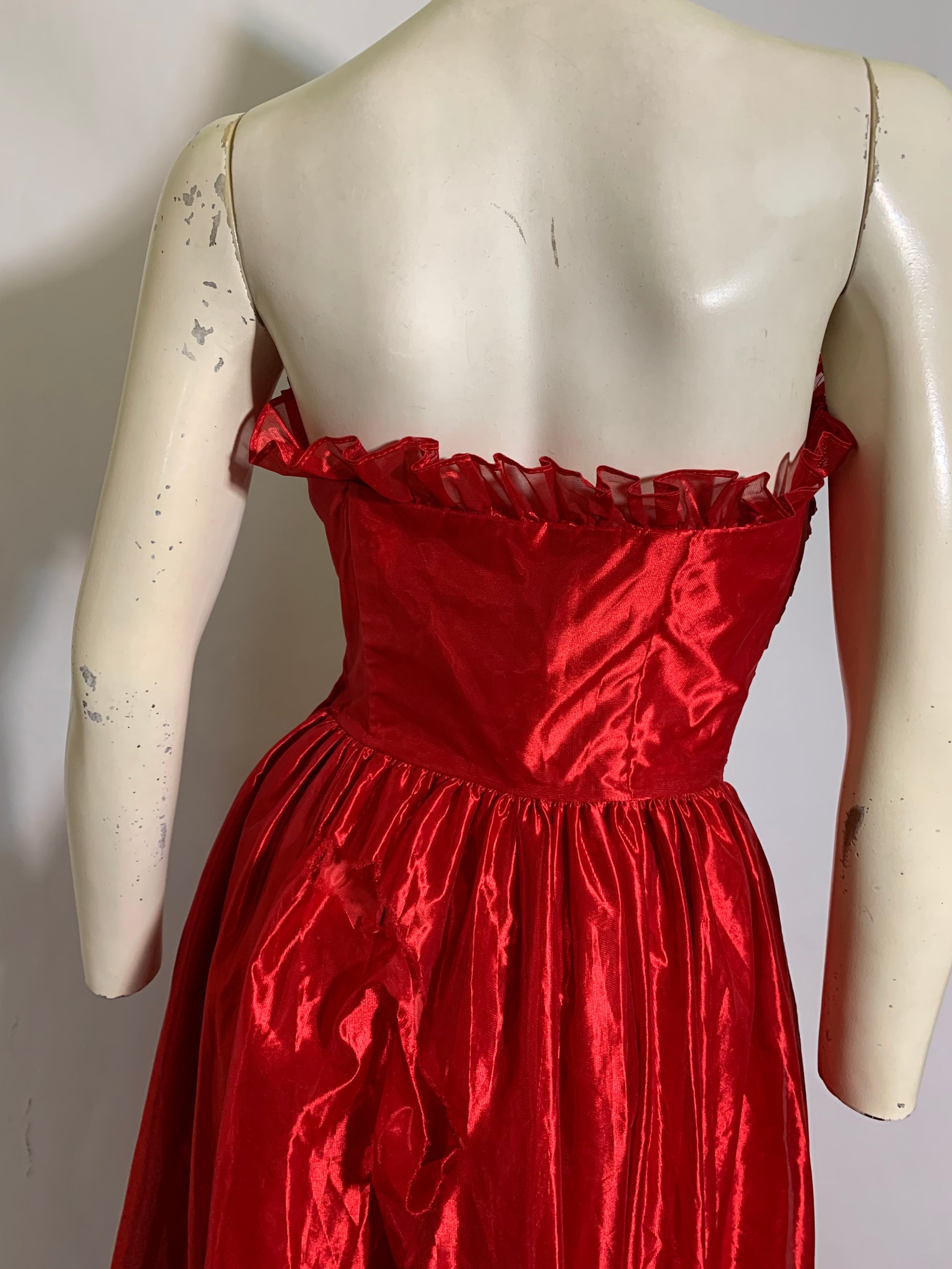 Shimmering Cherry Red Strapless Prom Dress circa 1980s