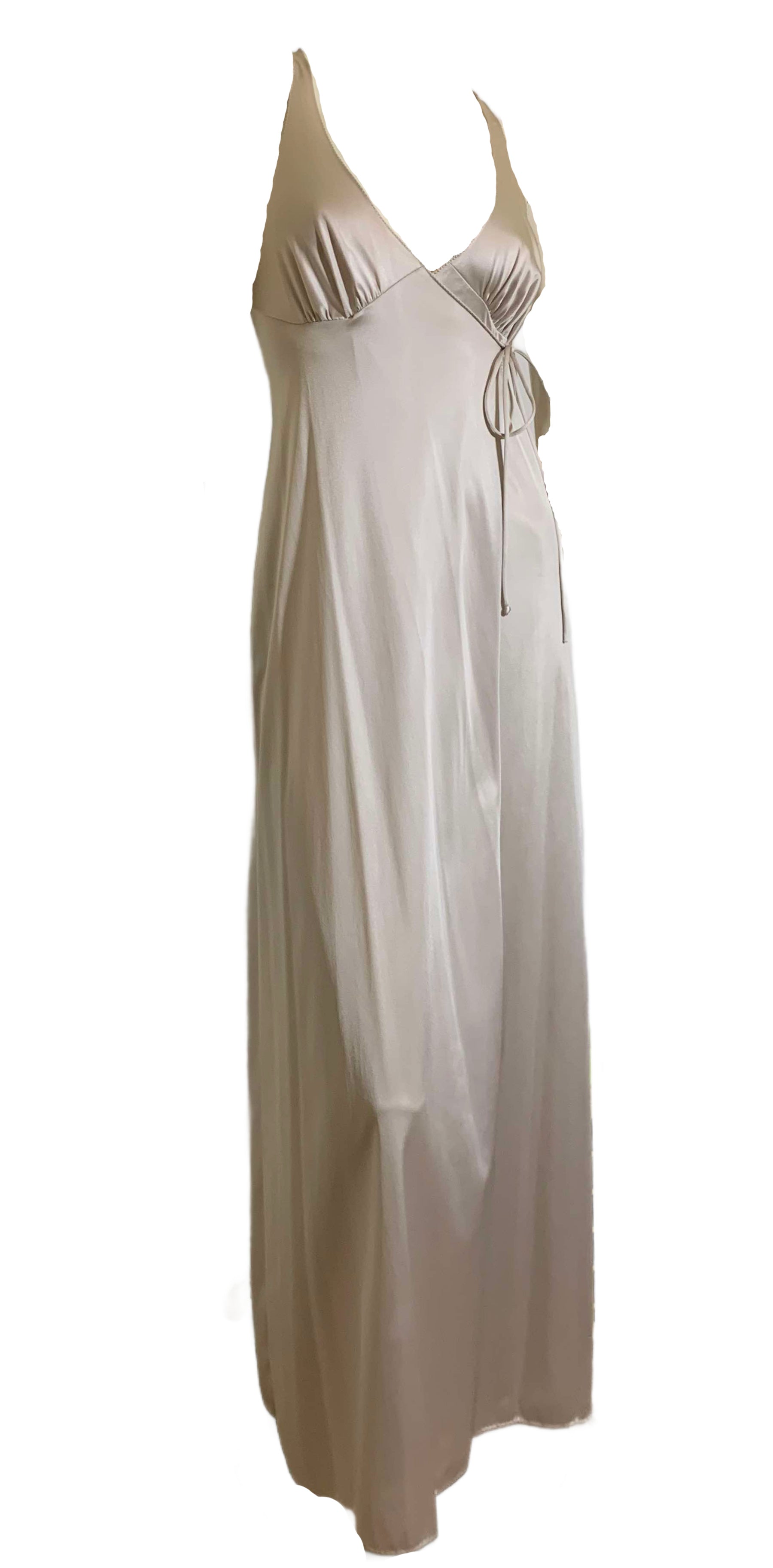Silvery Grey Wrap Front Slinky Nylon Nightgown circa 1970s