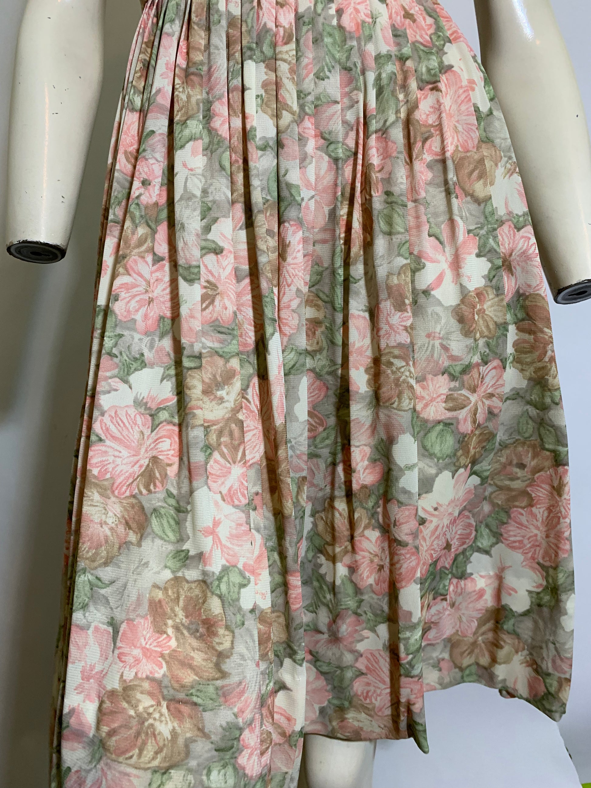 Softest Peach Floral Print Jersey Nylon Pleated Skirt Dress circa 1960s