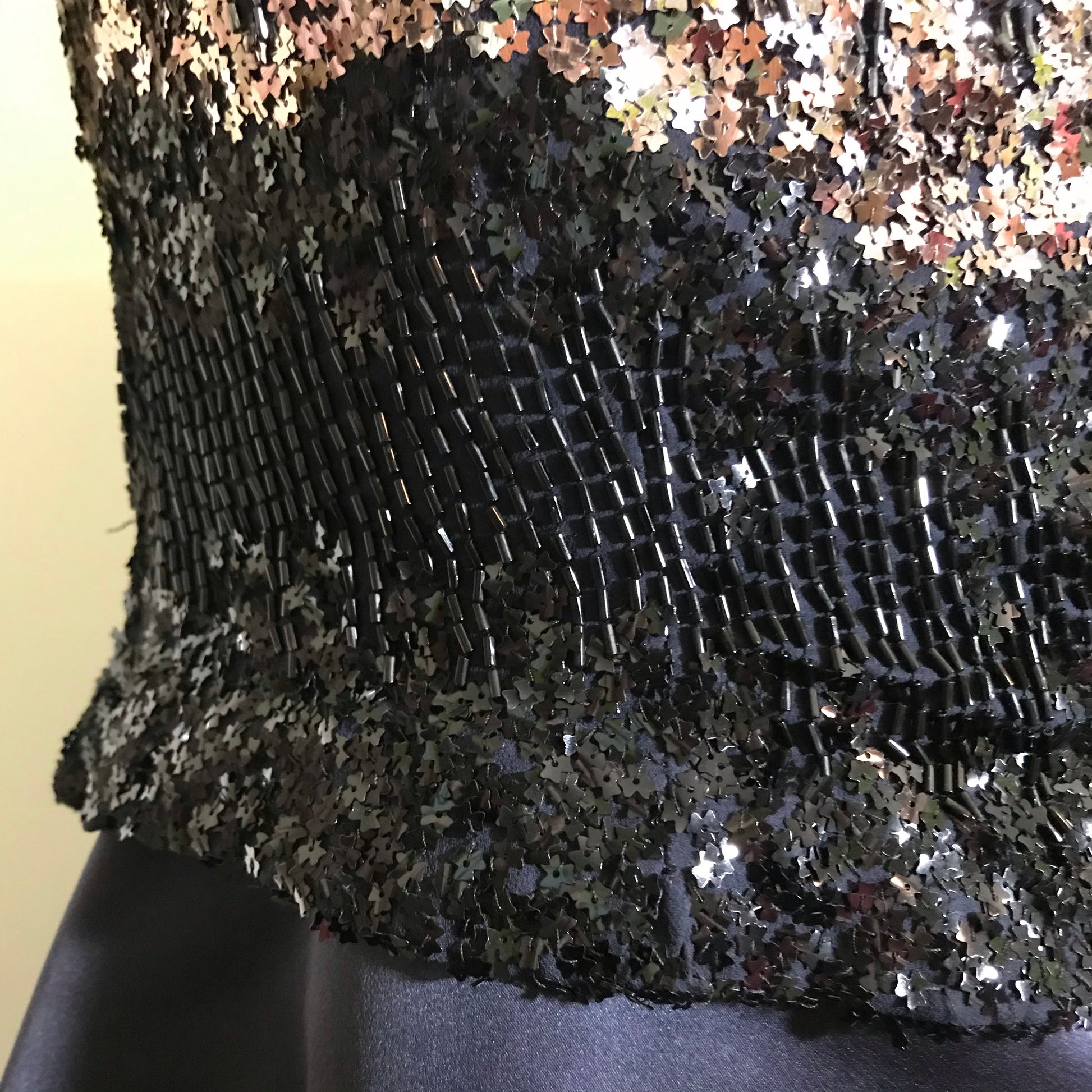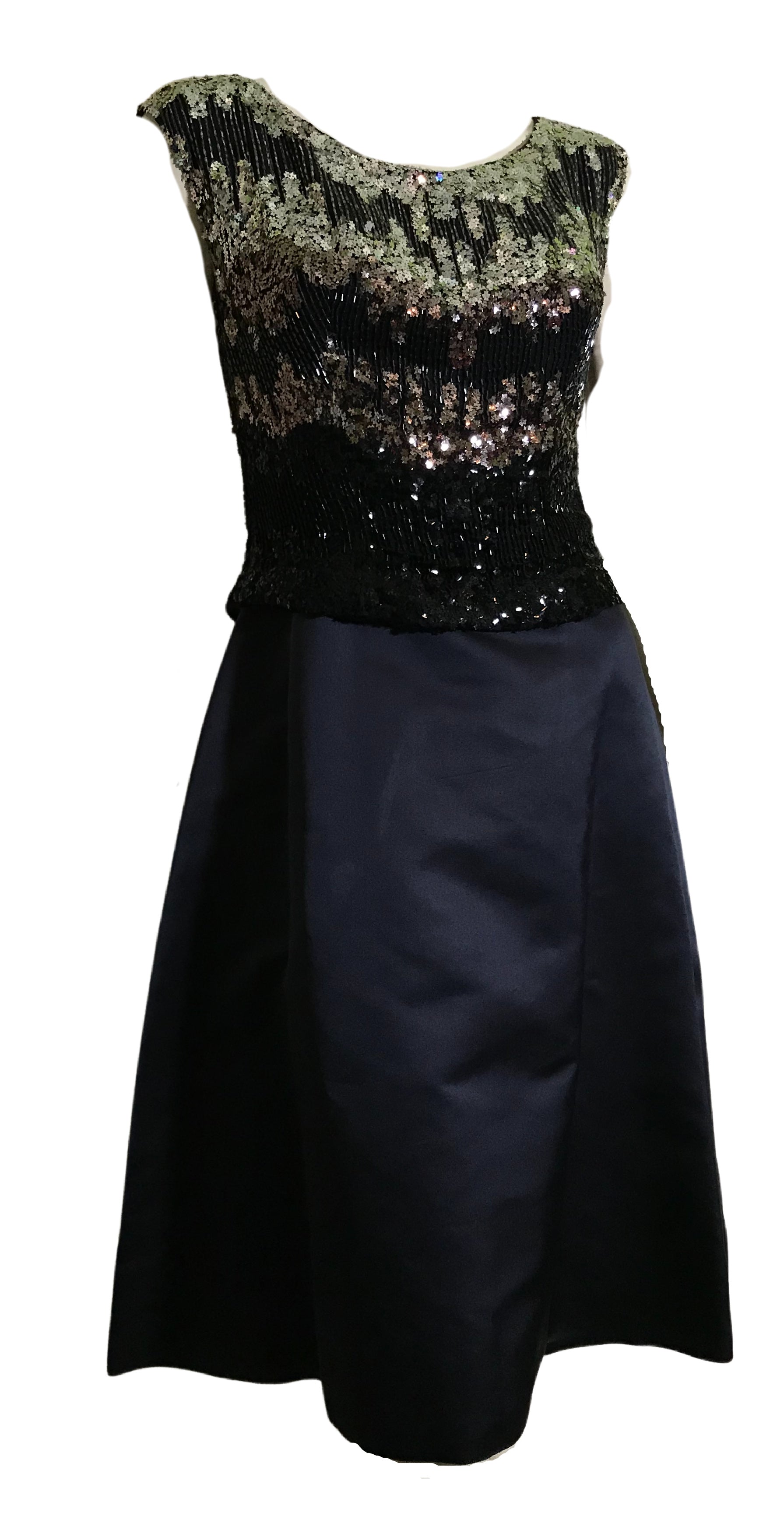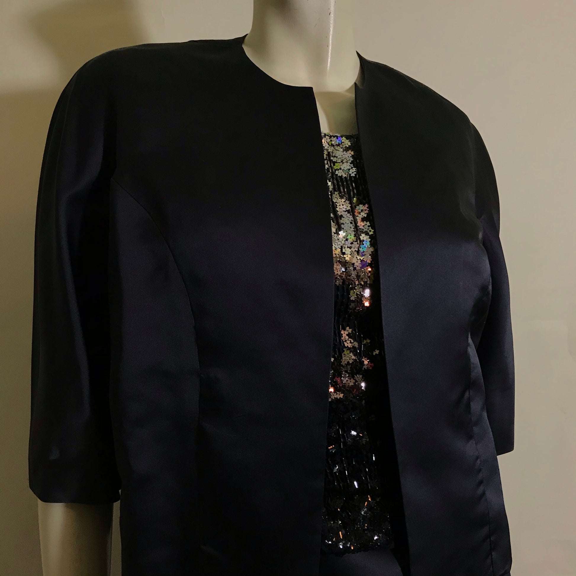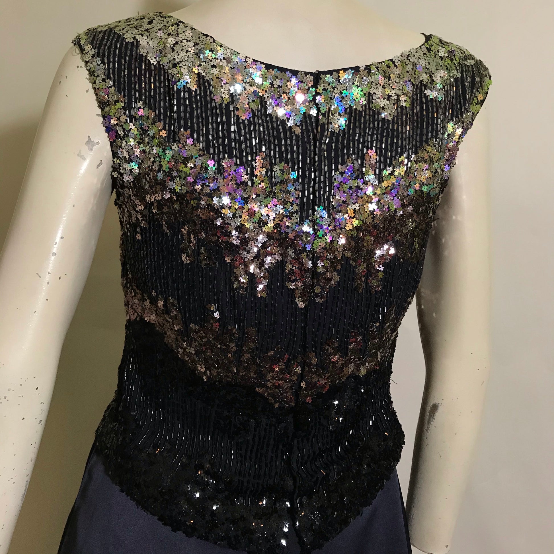 Sparkling Silver Star Sequined Bodice 3 Pc Deep Blue Silk Dress Sequined Top AND Jacket circa 1960s