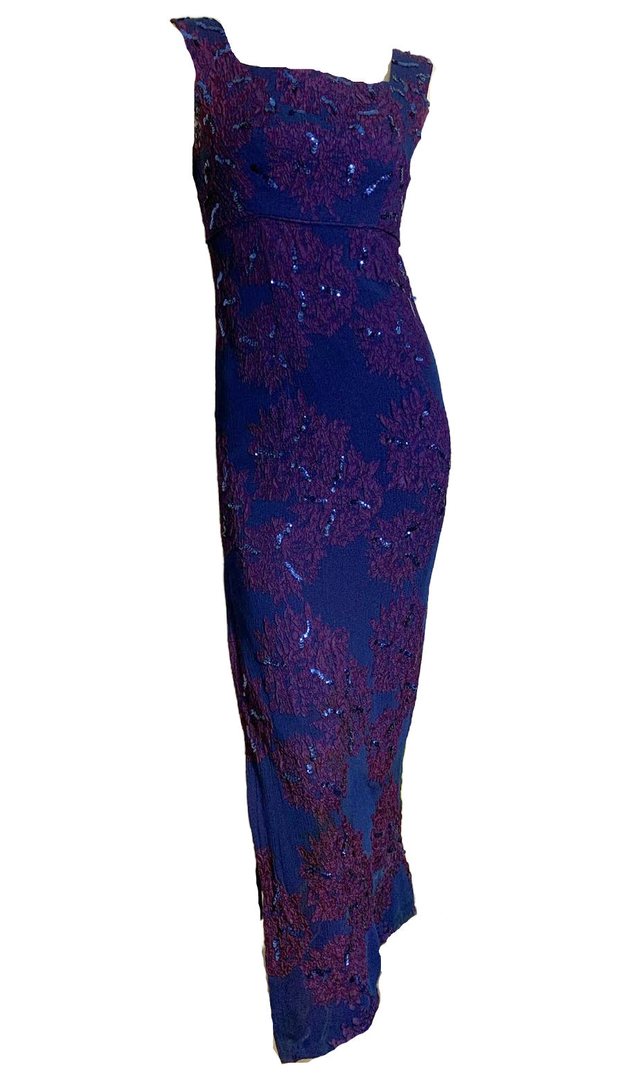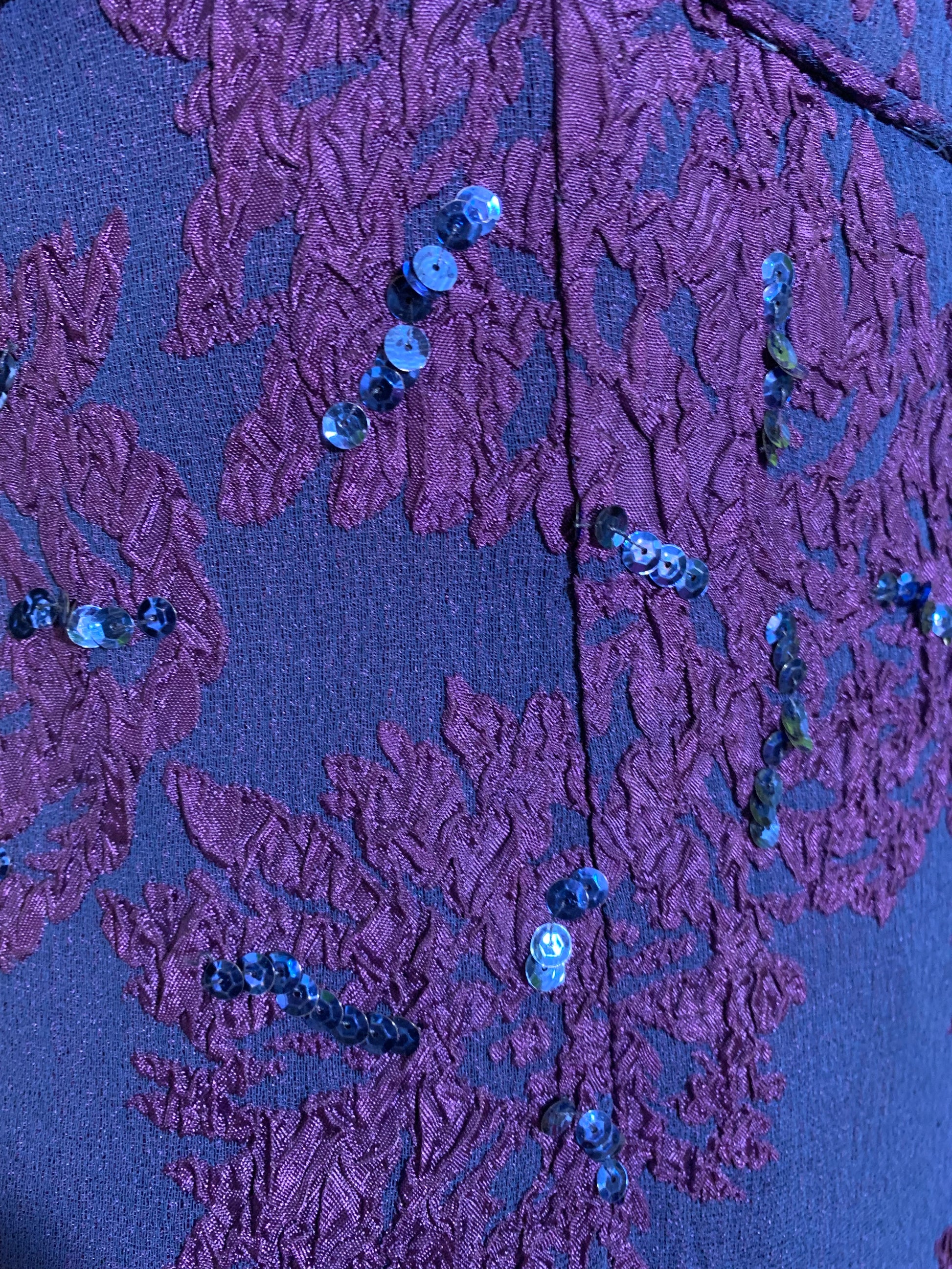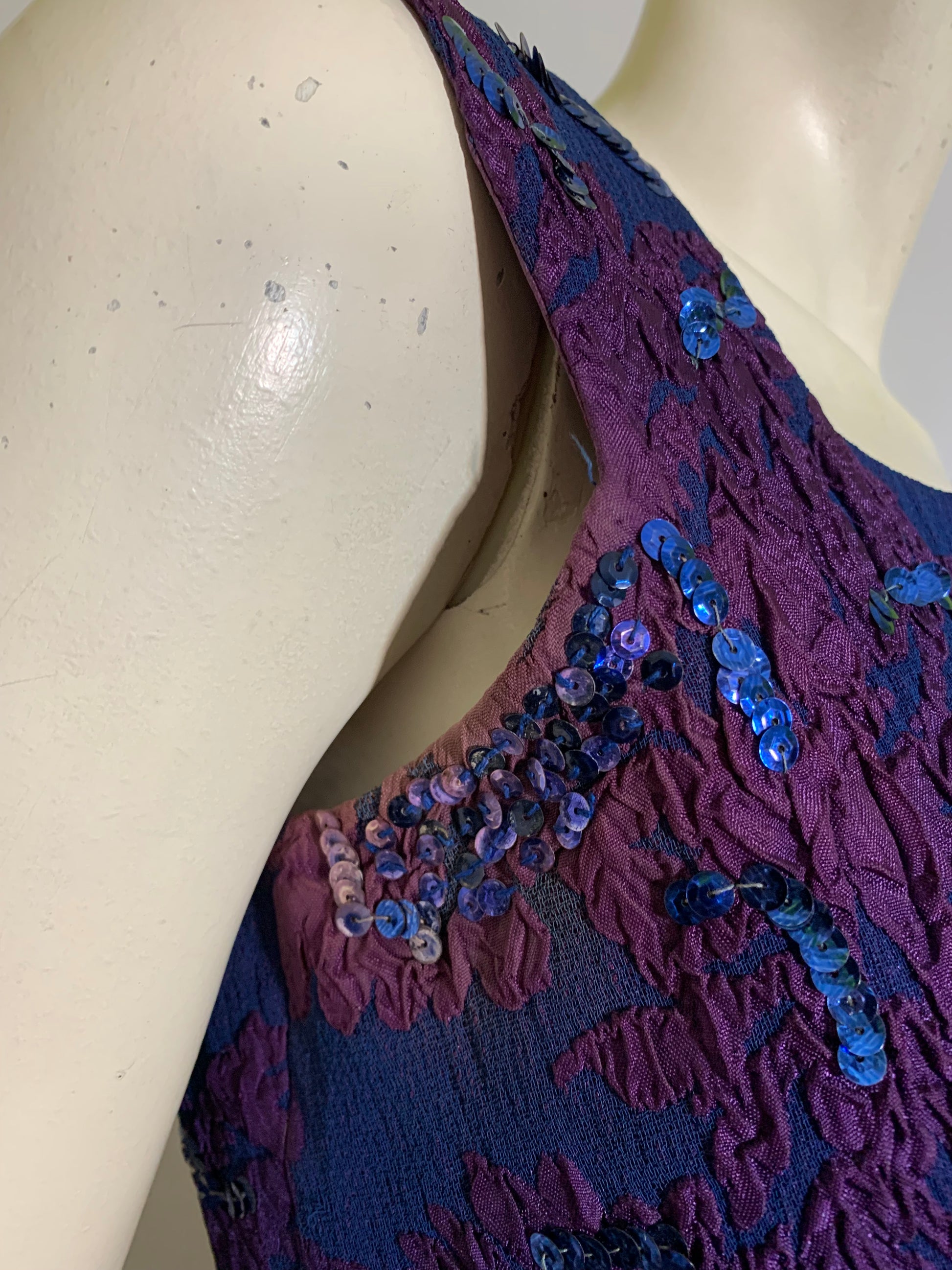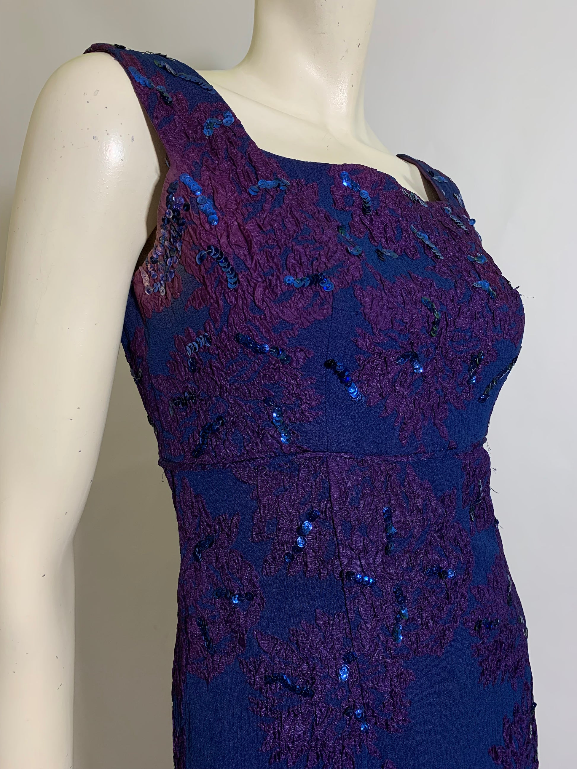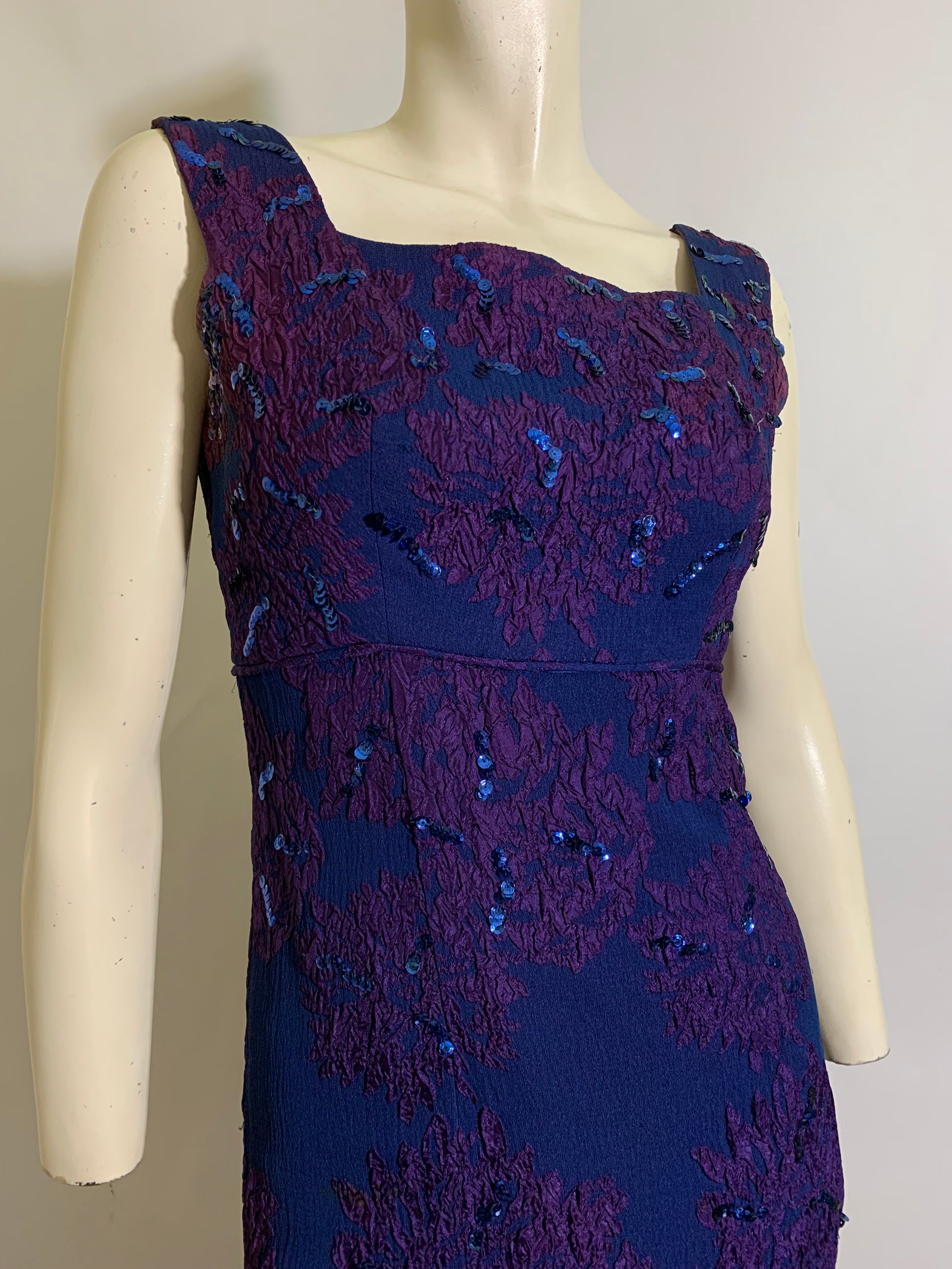 Sultry Sapphire Blue and Purple Sequined High Slit Evening Dress circa 1960s