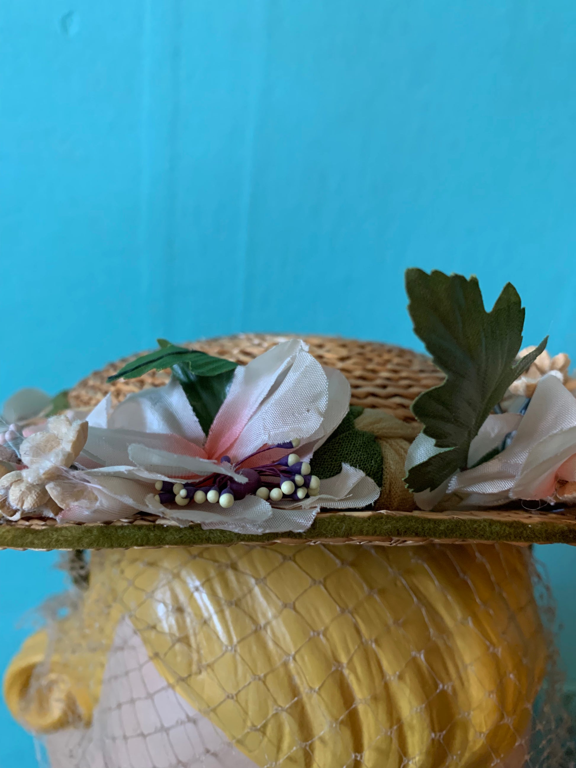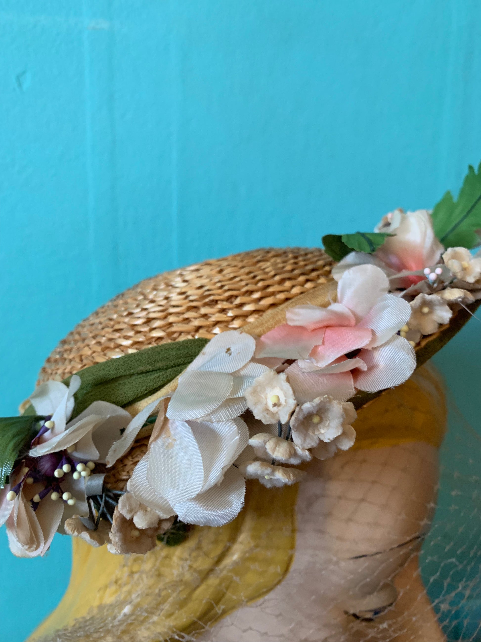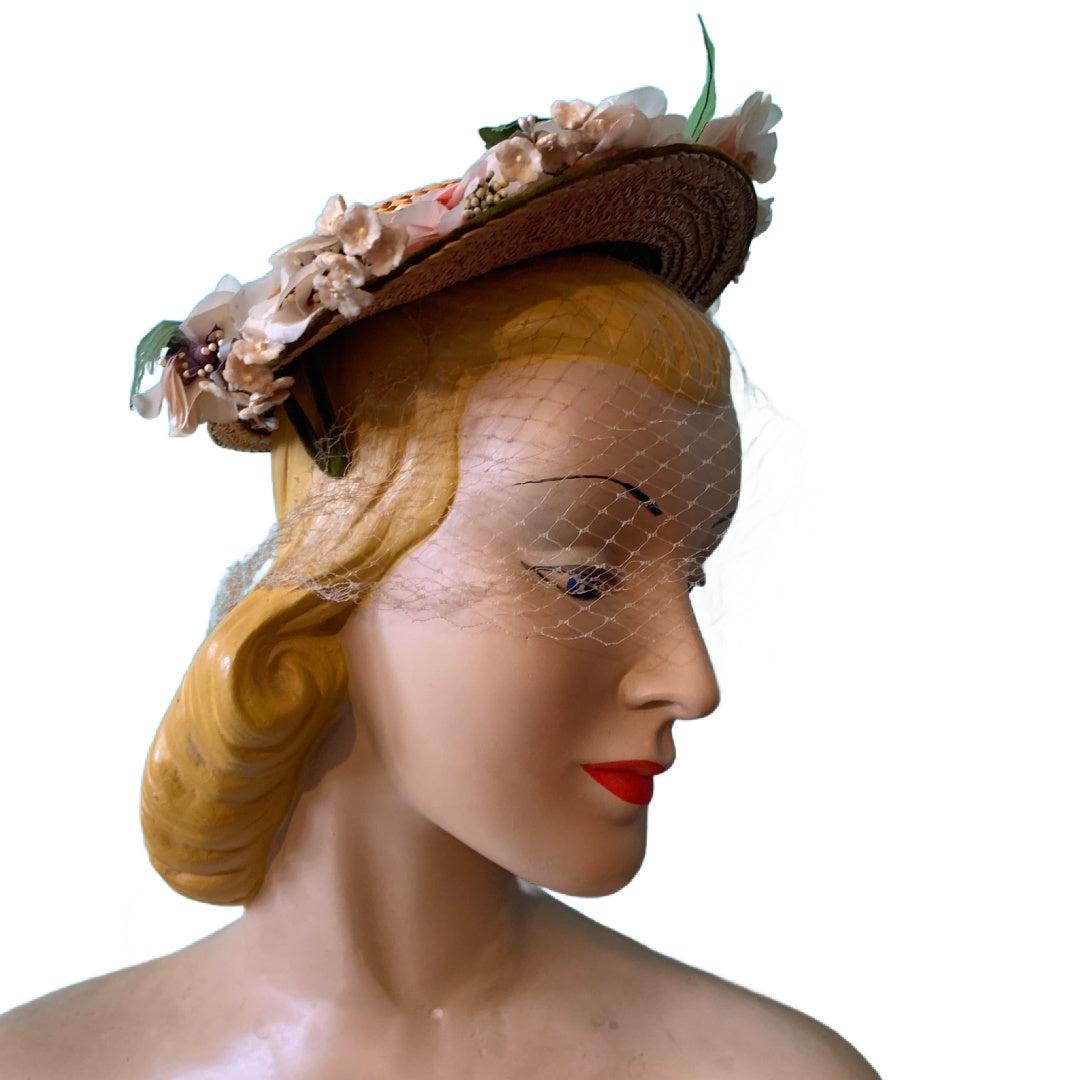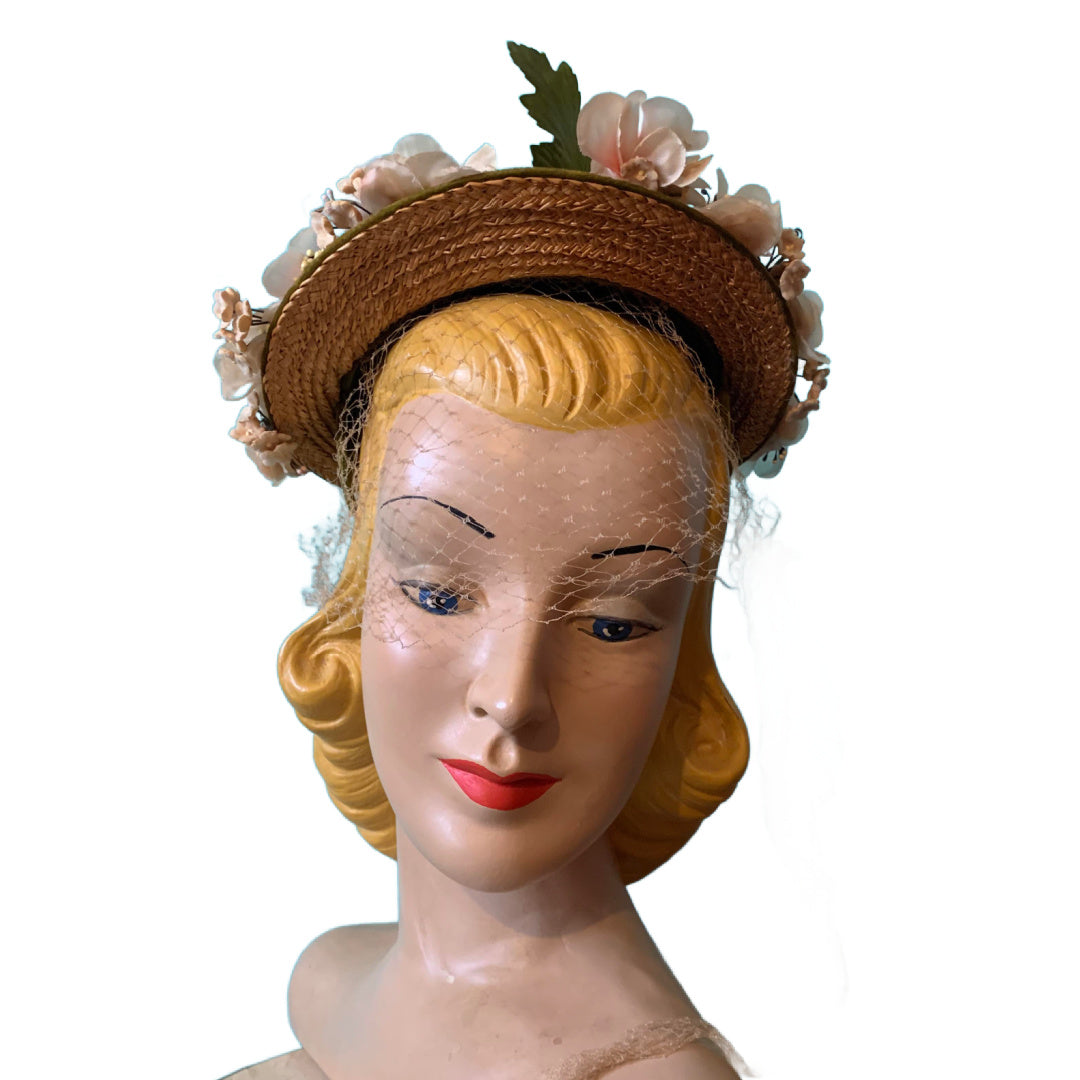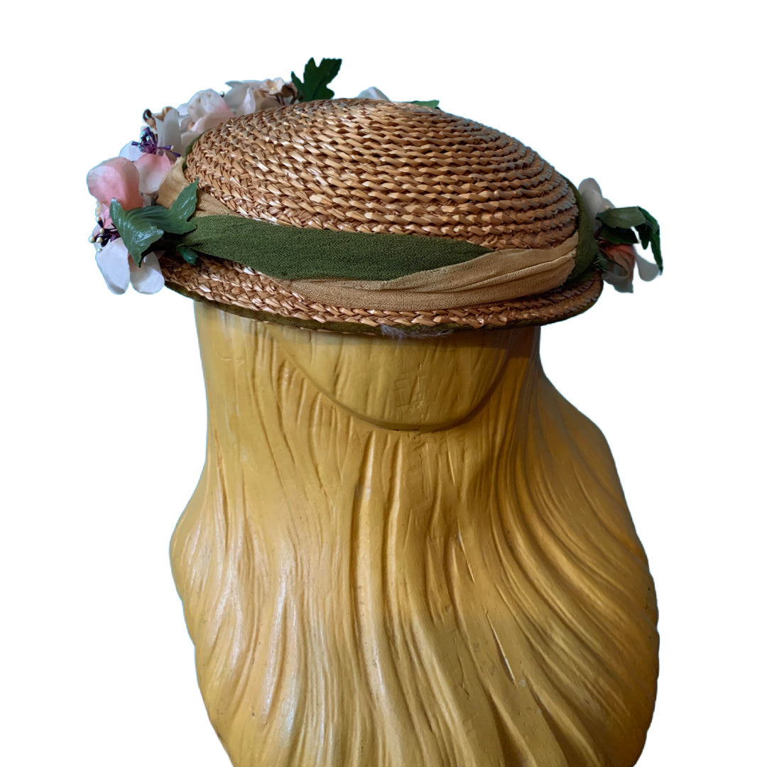 Summery Small Straw Flower Trimmed Hat circa 1950s