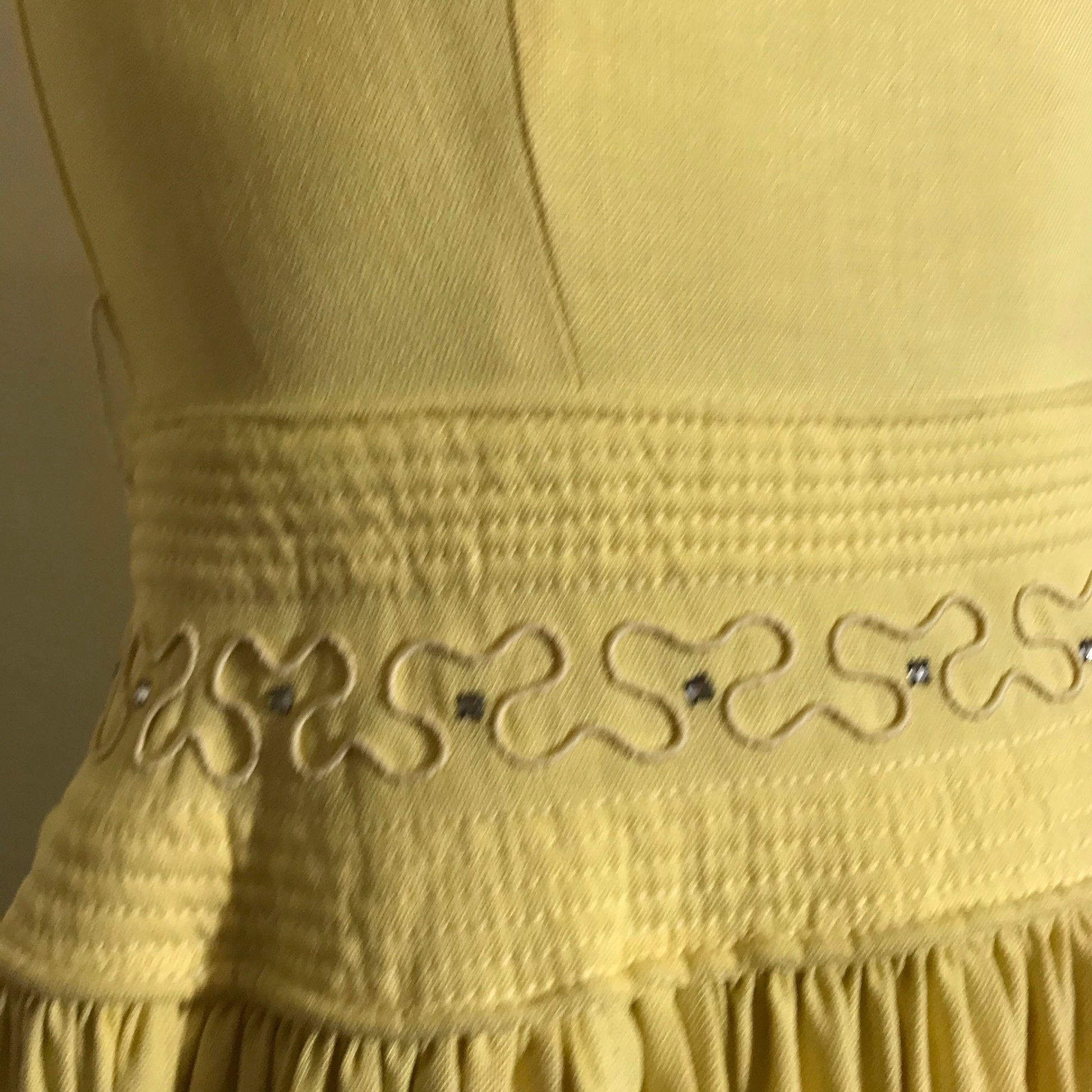 Sunshine Yellow Sleeveless Party Dress with Rhinestones circa 1940s