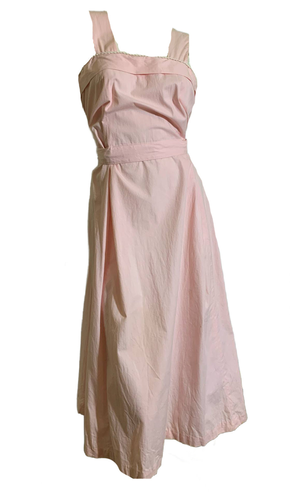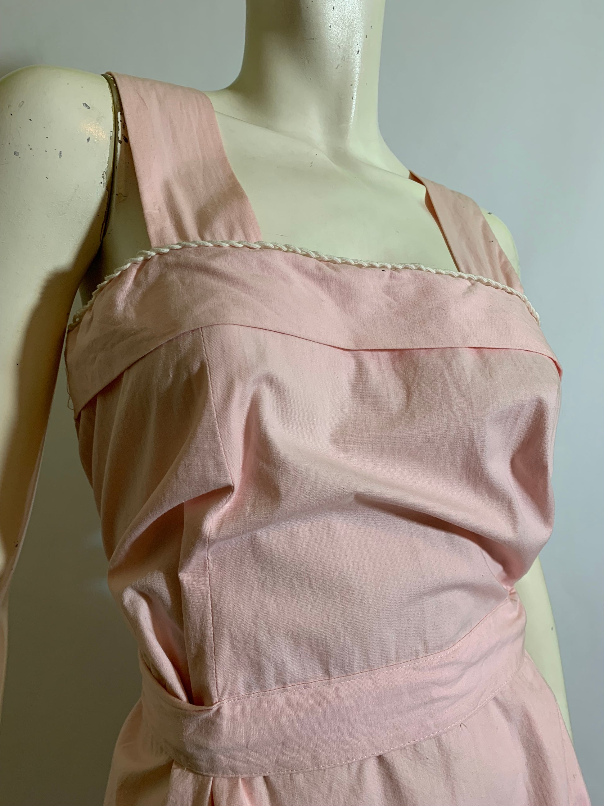 Sweet Pink Cotton Maternity Sun Dress Adjustable Waist circa 1940s