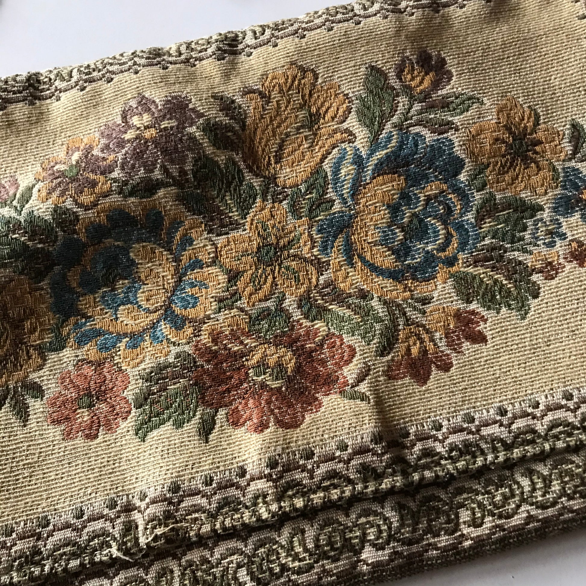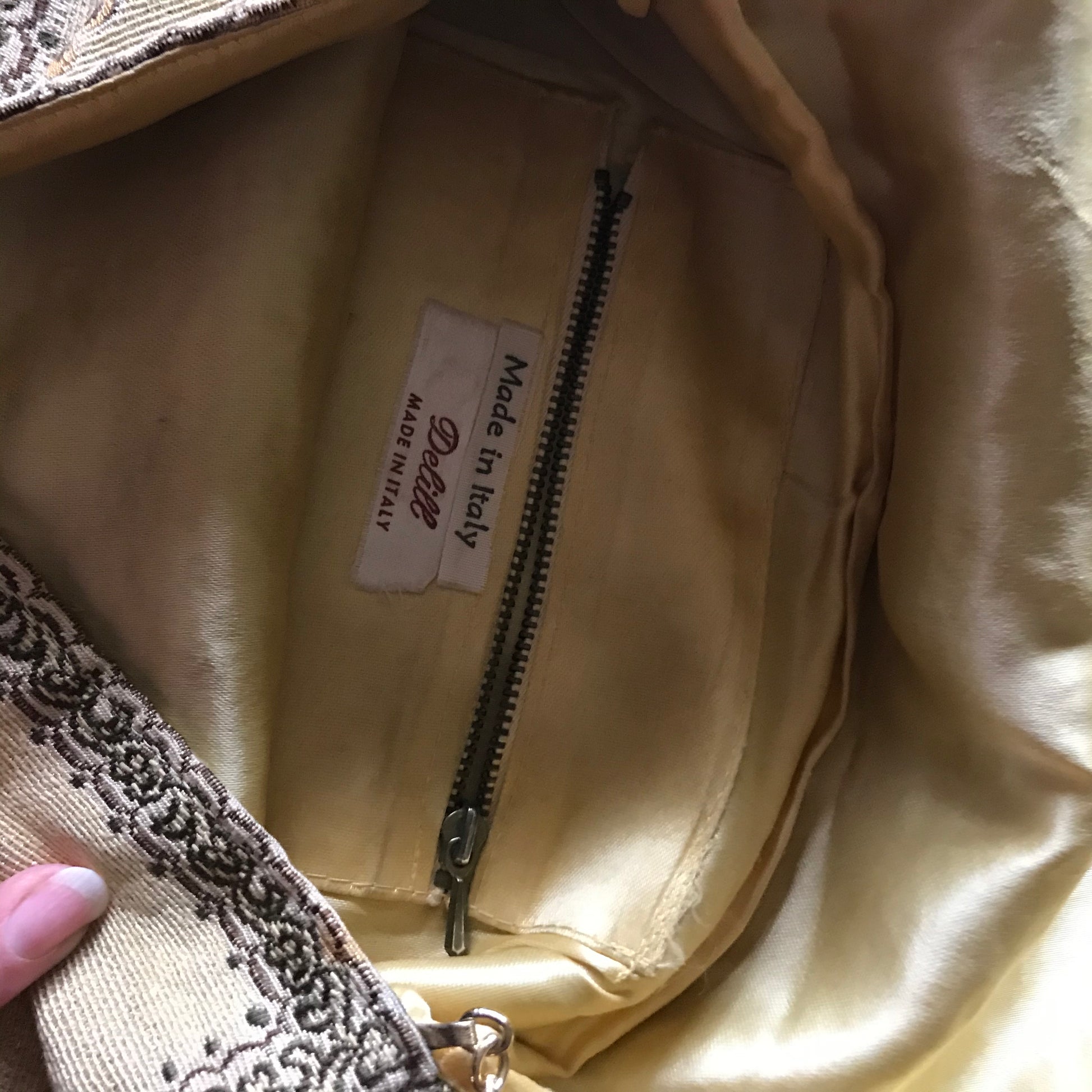 Tapestry Fabric Handbag with Metallic Threads, Gold Tone Clasp and Chain Strap circa 1970s