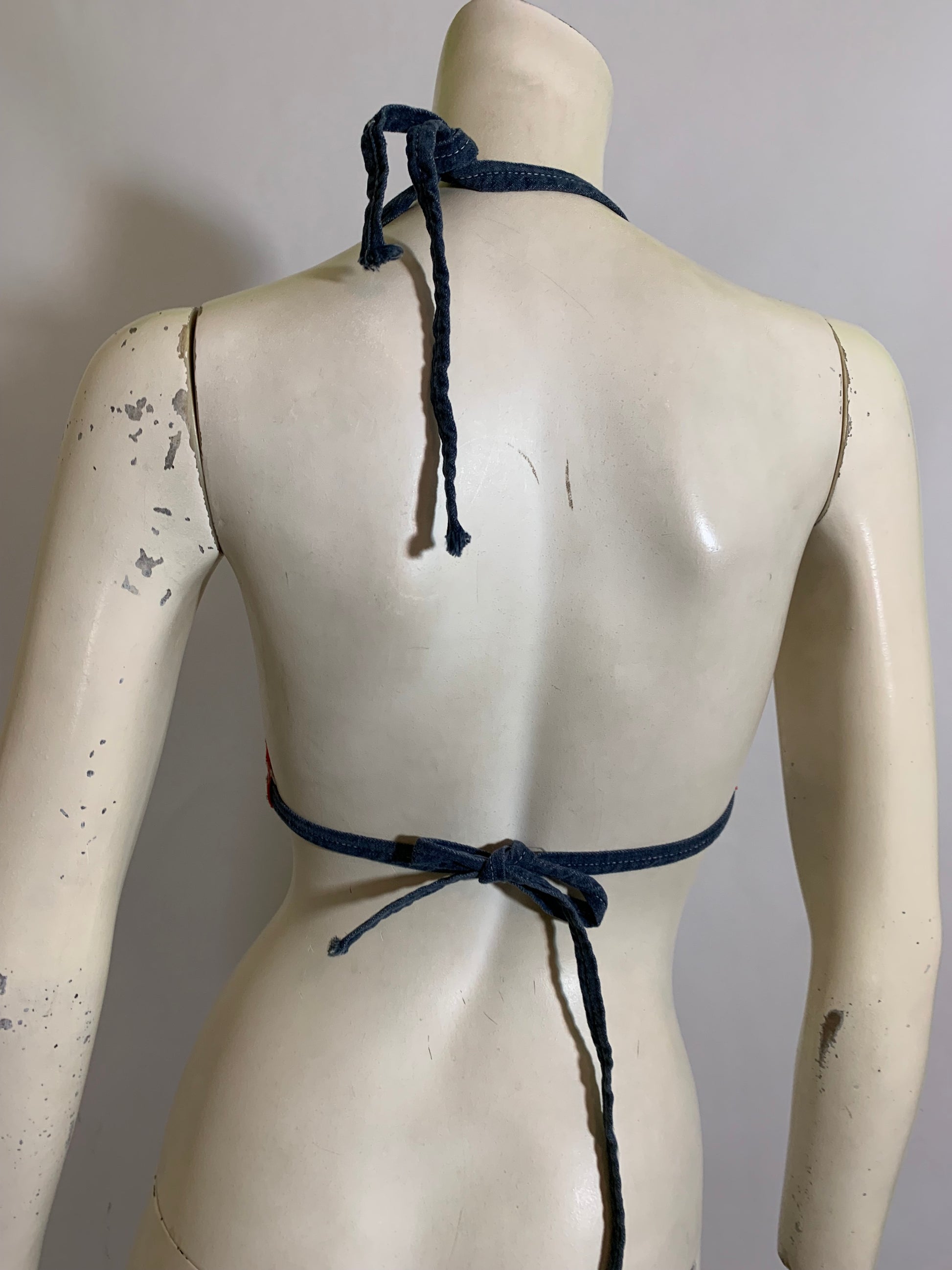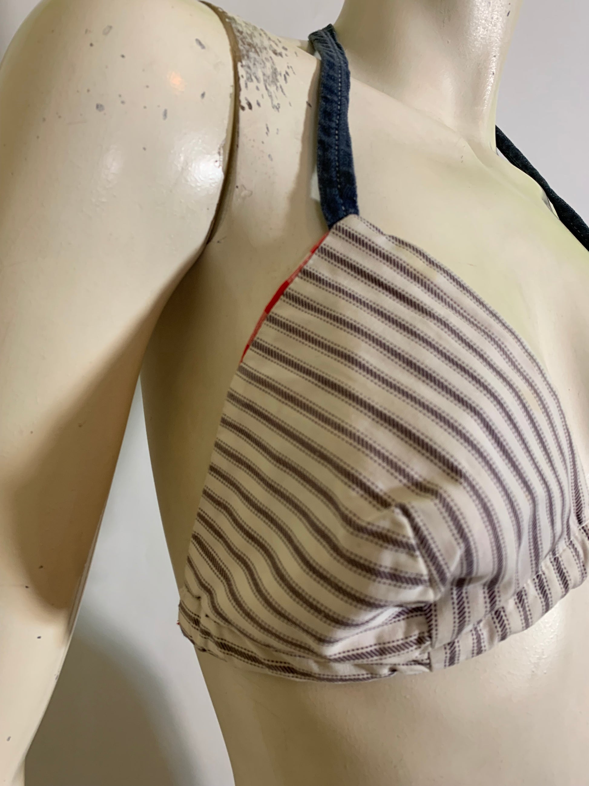 Ticking Striped Bikini Top with Red Gingham Reverse circa 1970s
