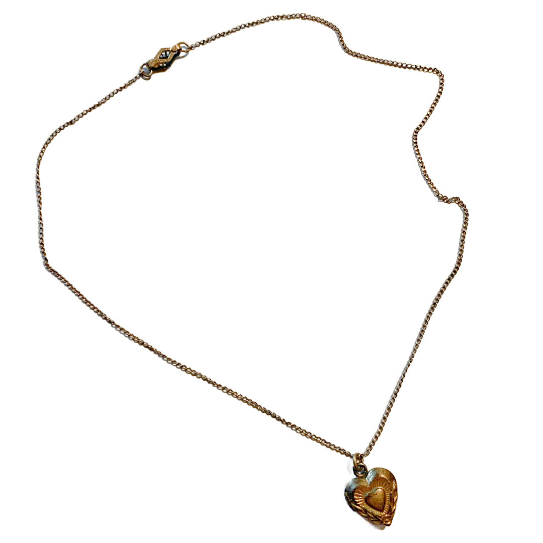 Diminutive Etched Heart Locket on Fine Golden Chain Necklace circa 1950s