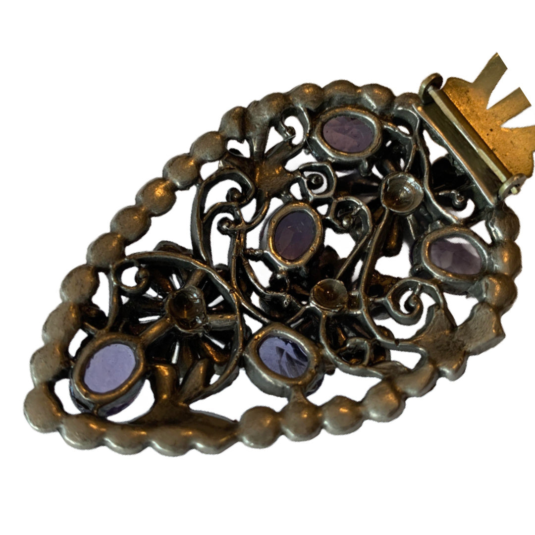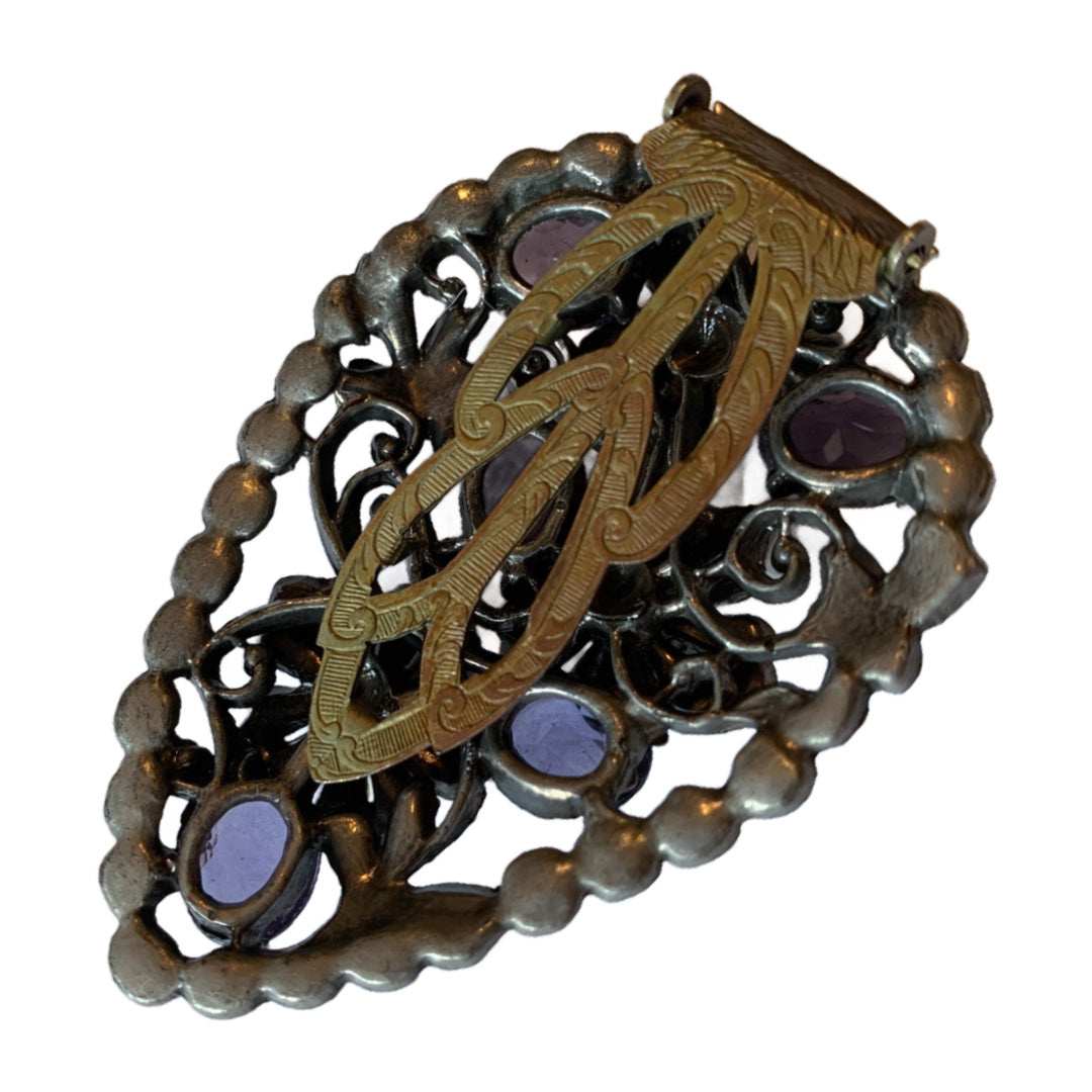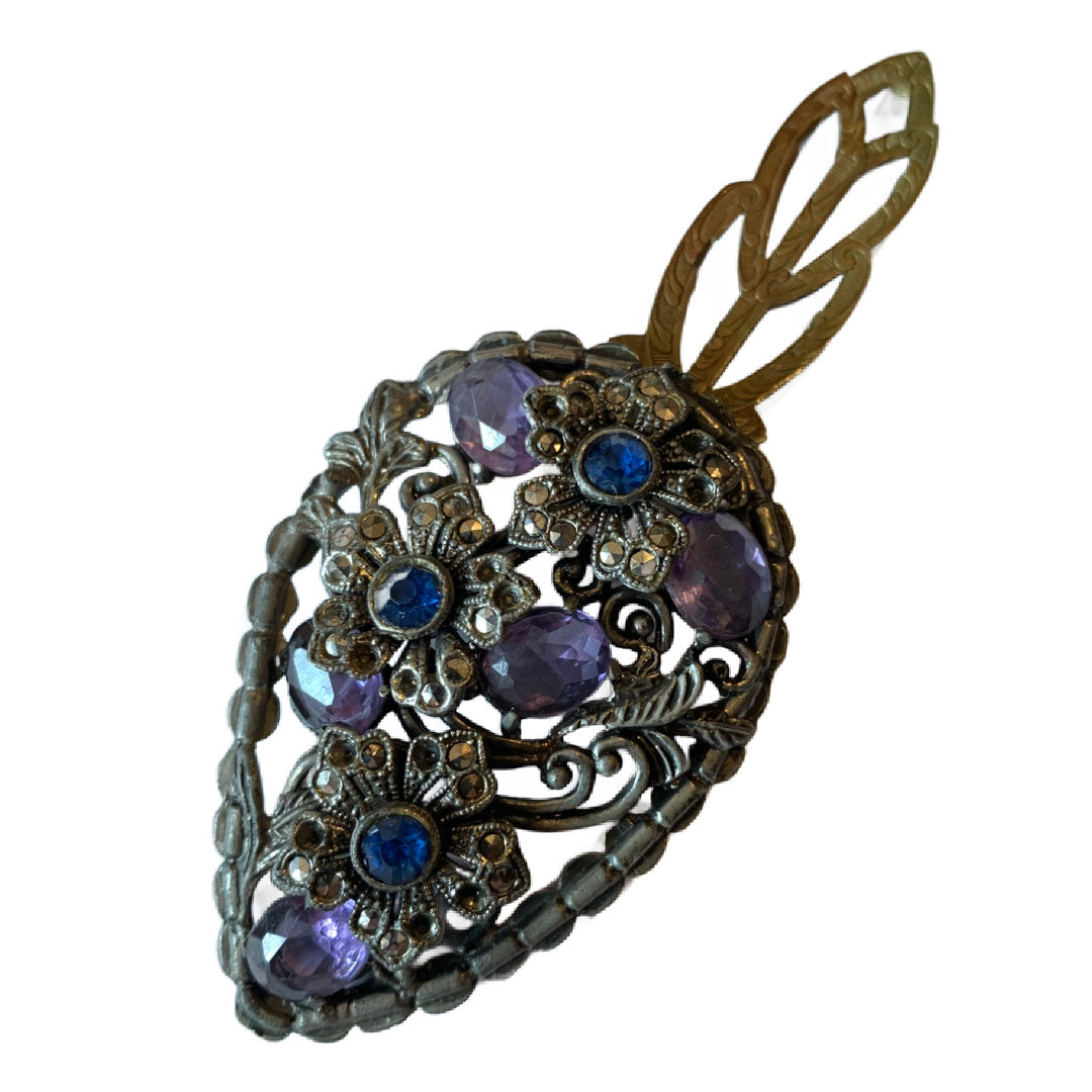 Violet and Blue Czech Glass Floral Design Large Fur Clip circa 1930s