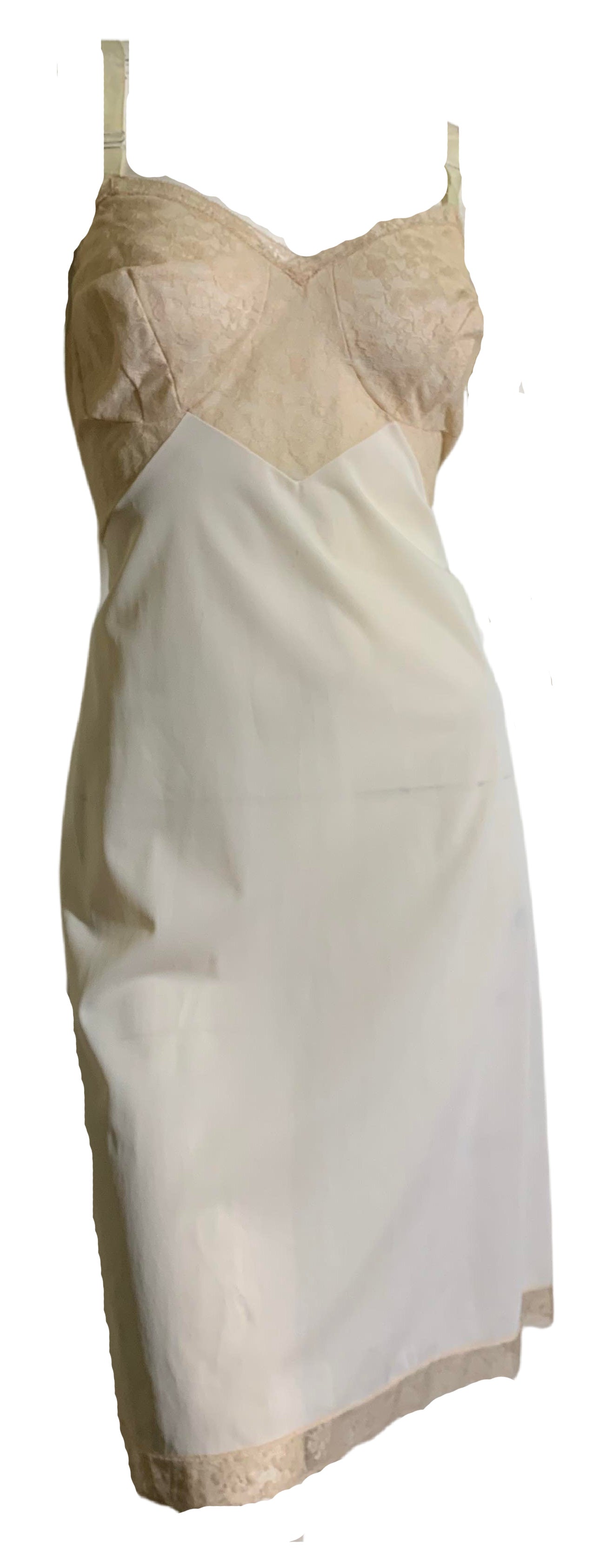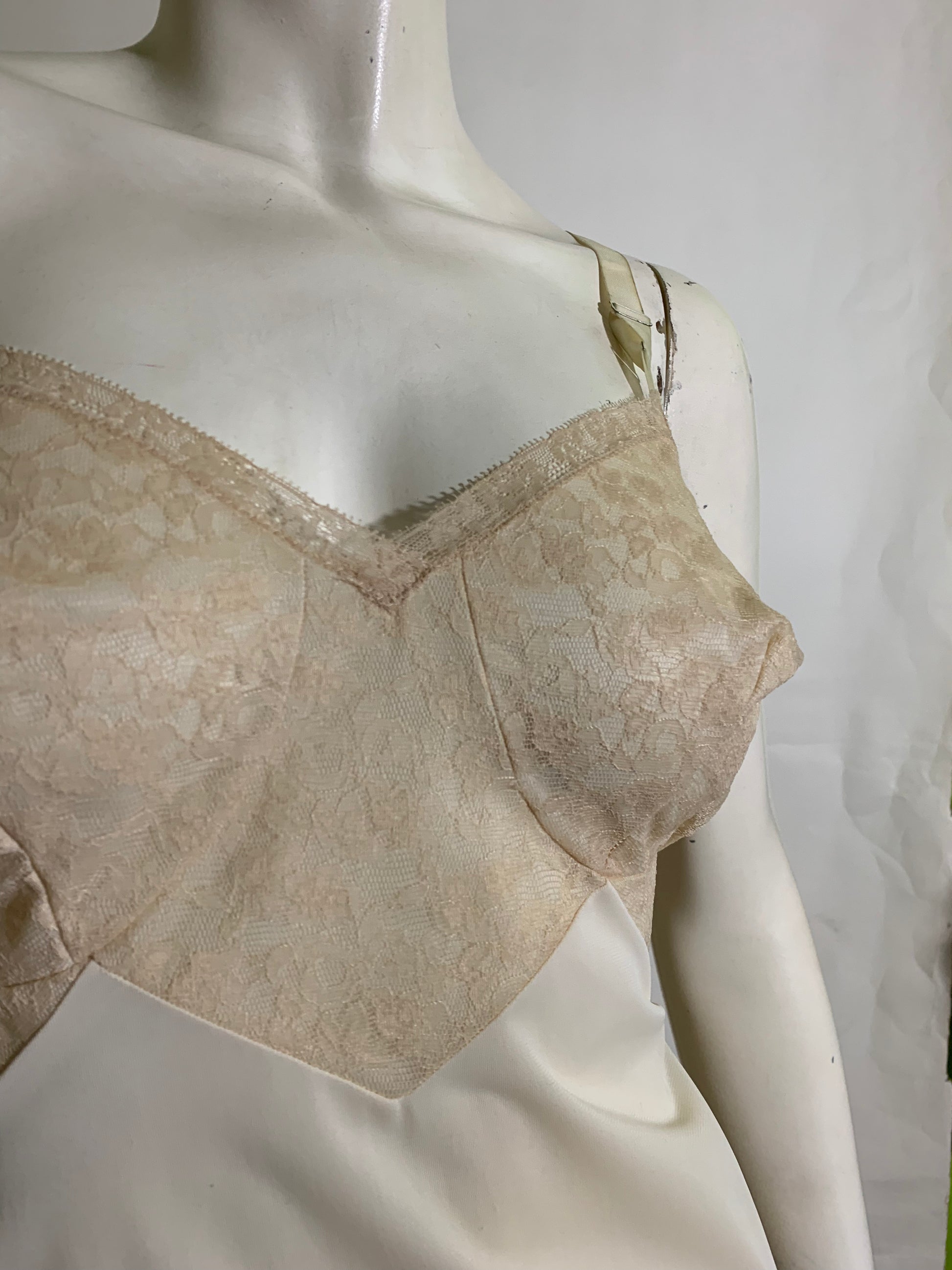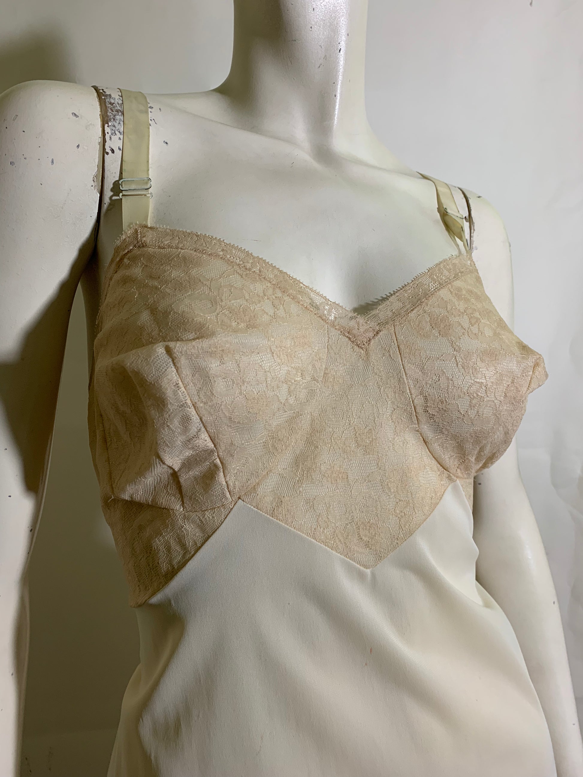 Warm Off White Nylon Lace Trimmed Slip circa 1960s 36S