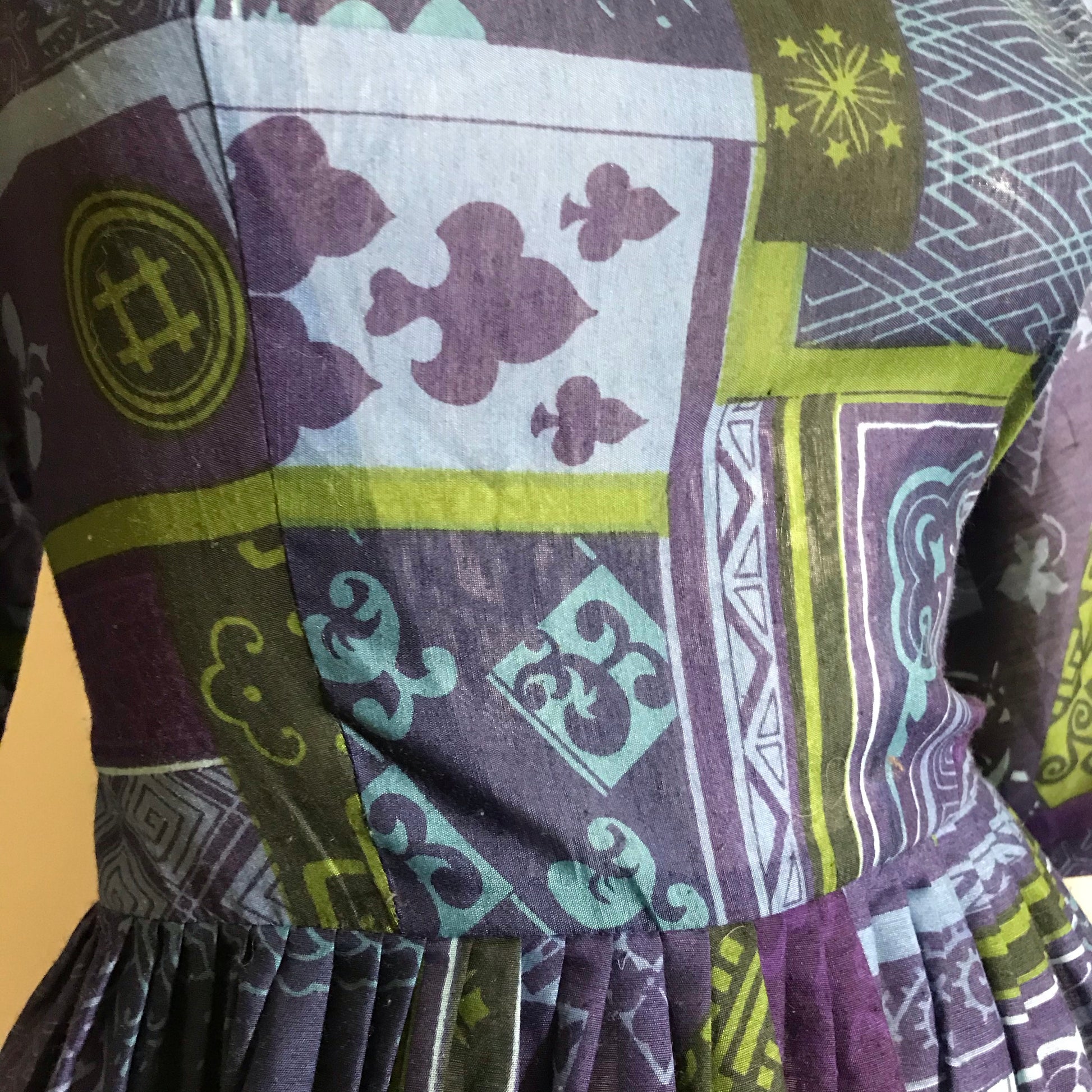 Whimsical Novelty Print Dress Spades and Hashtags and Stars! circa 1960s