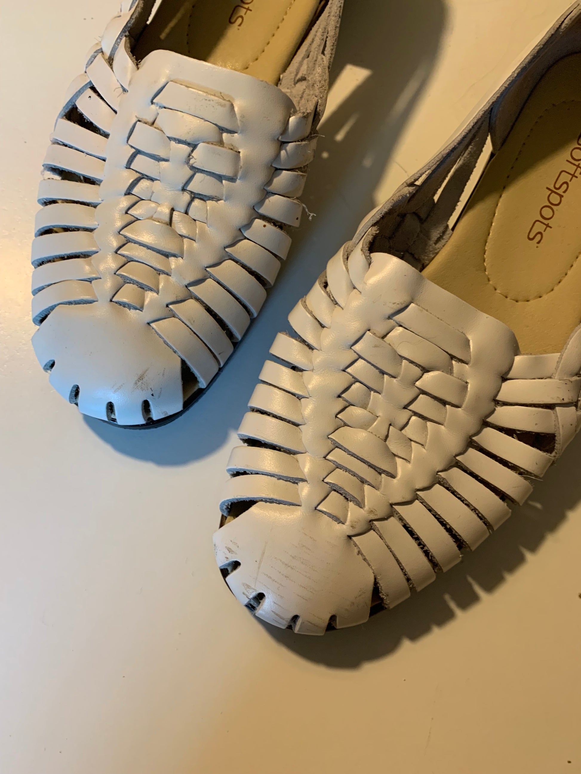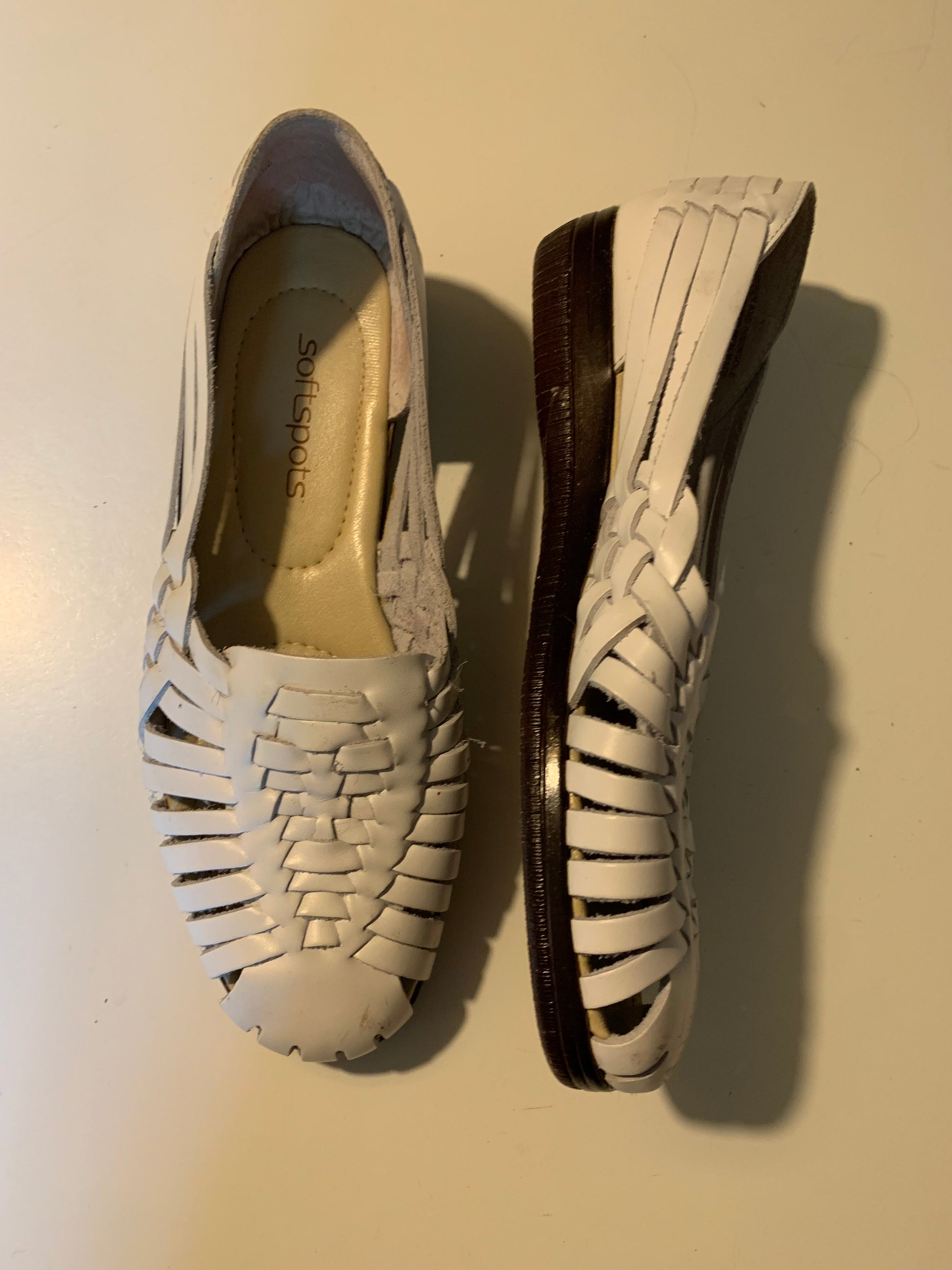 Iconic 1980s white huarache sandals by Softspot. US size 6, minimal wear.