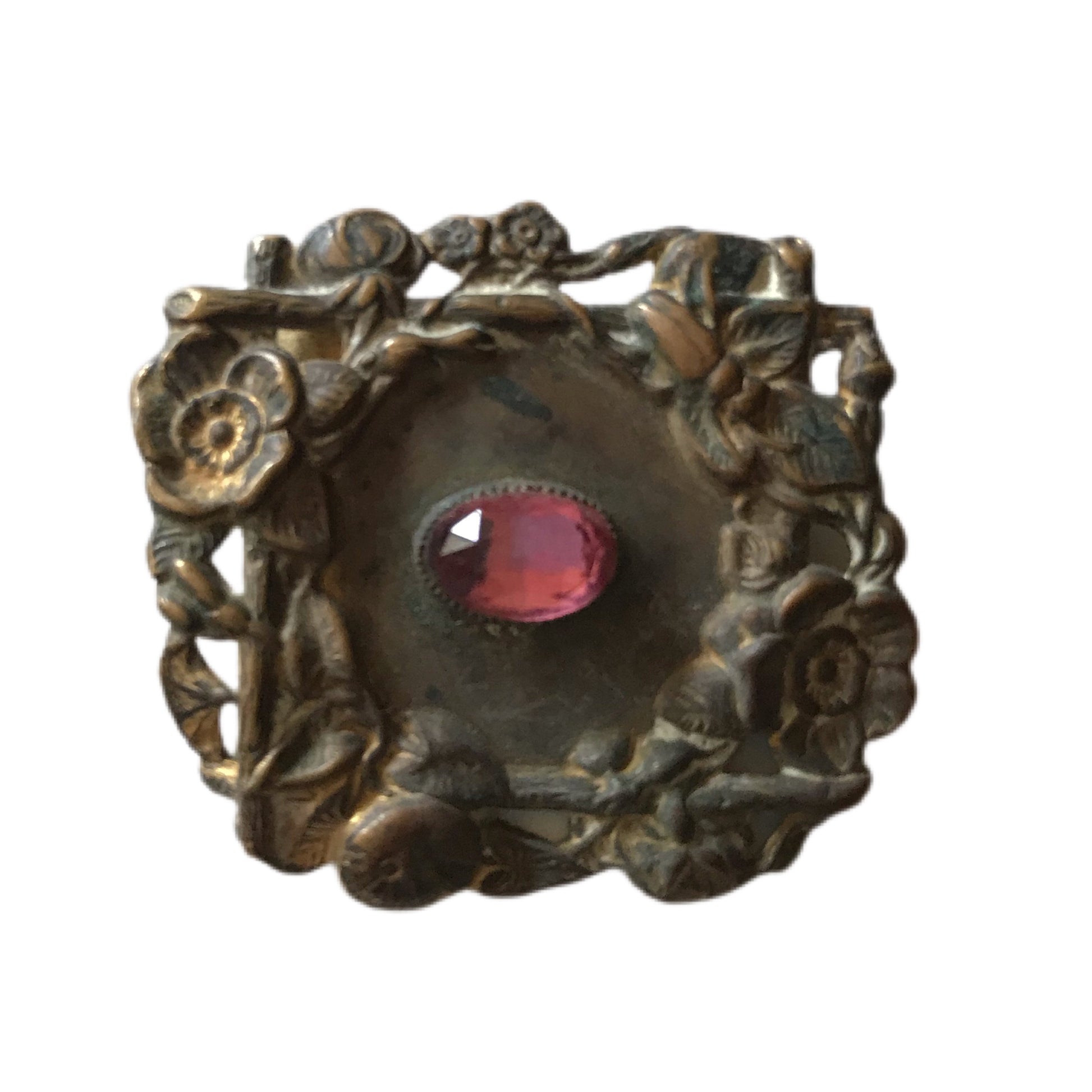 Art Nouveau Golden Metal Buckle Piece with Purple Czech Glass Accent circa 1910s