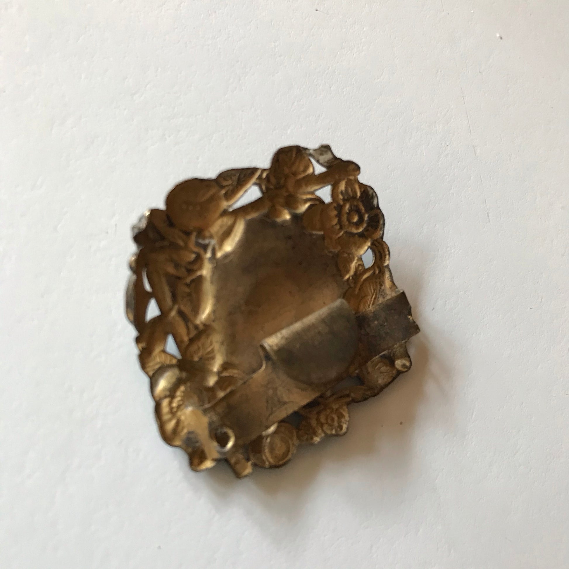 Early 1900s gold tone metal half buckle *(missing other half)* - gorgeous Art Nouveau design, center accented with purple Czech Glass. Could be made into a brooch or accent on a dress, no flaws.