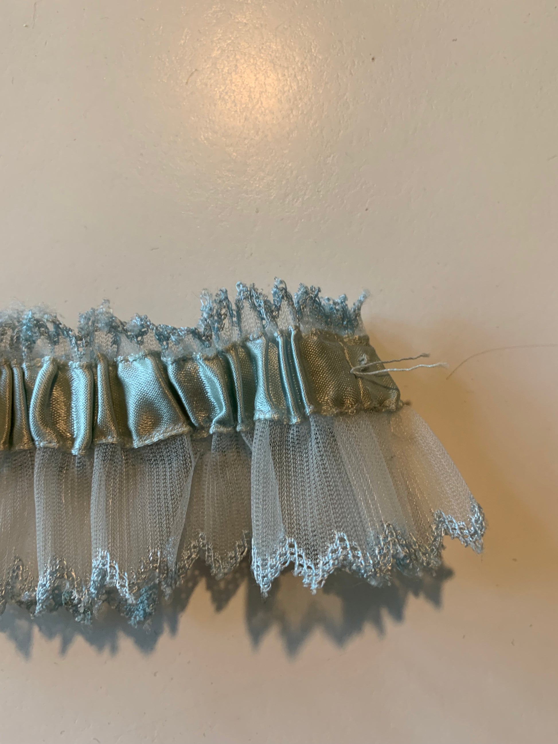 Sweet light blue satin and nylon lace elastic garter. One size, US S-L