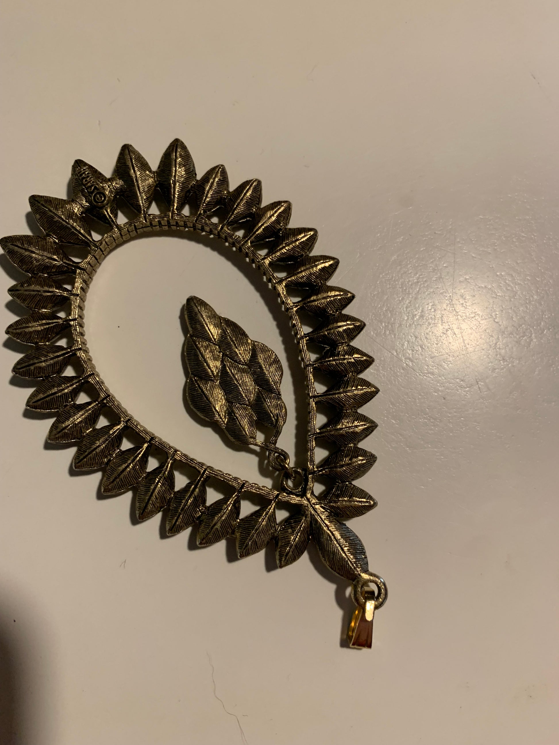 Pewter tone metal teardrop pendant with dangle center from the 1970s. 3 1/2 by 2 1/2