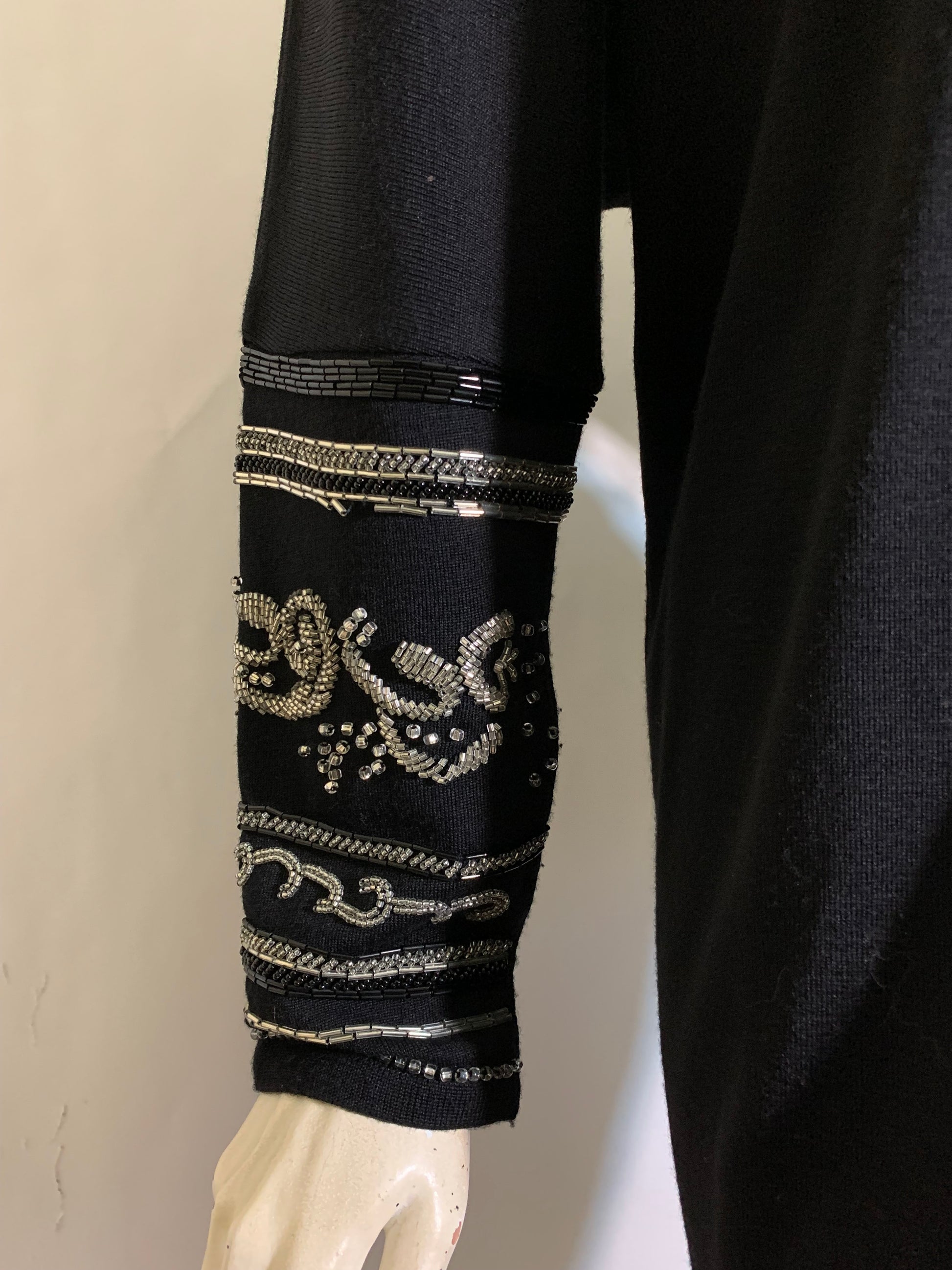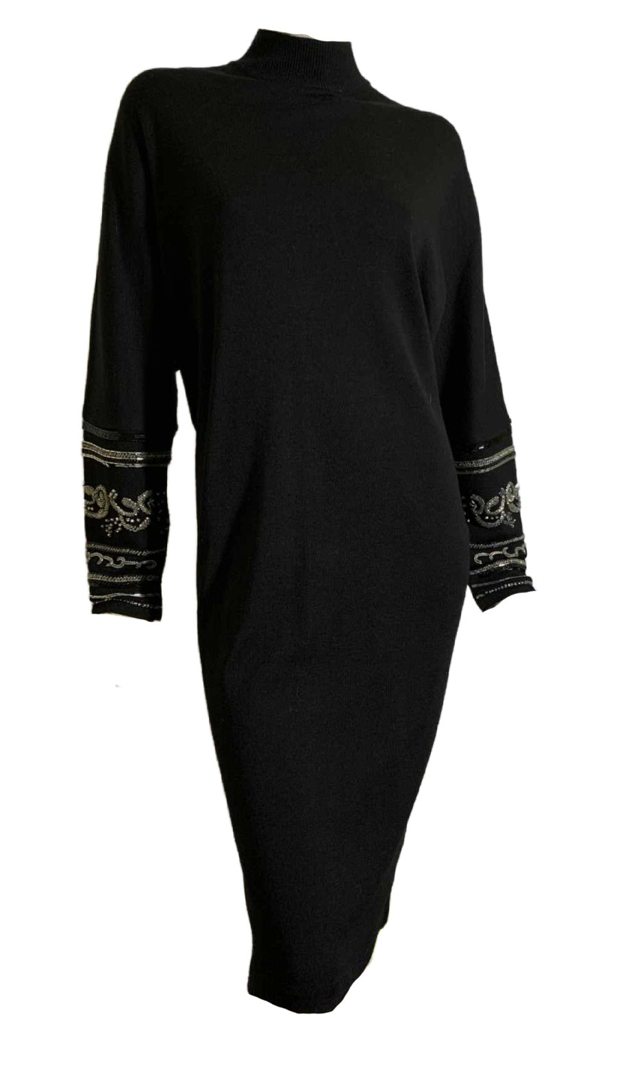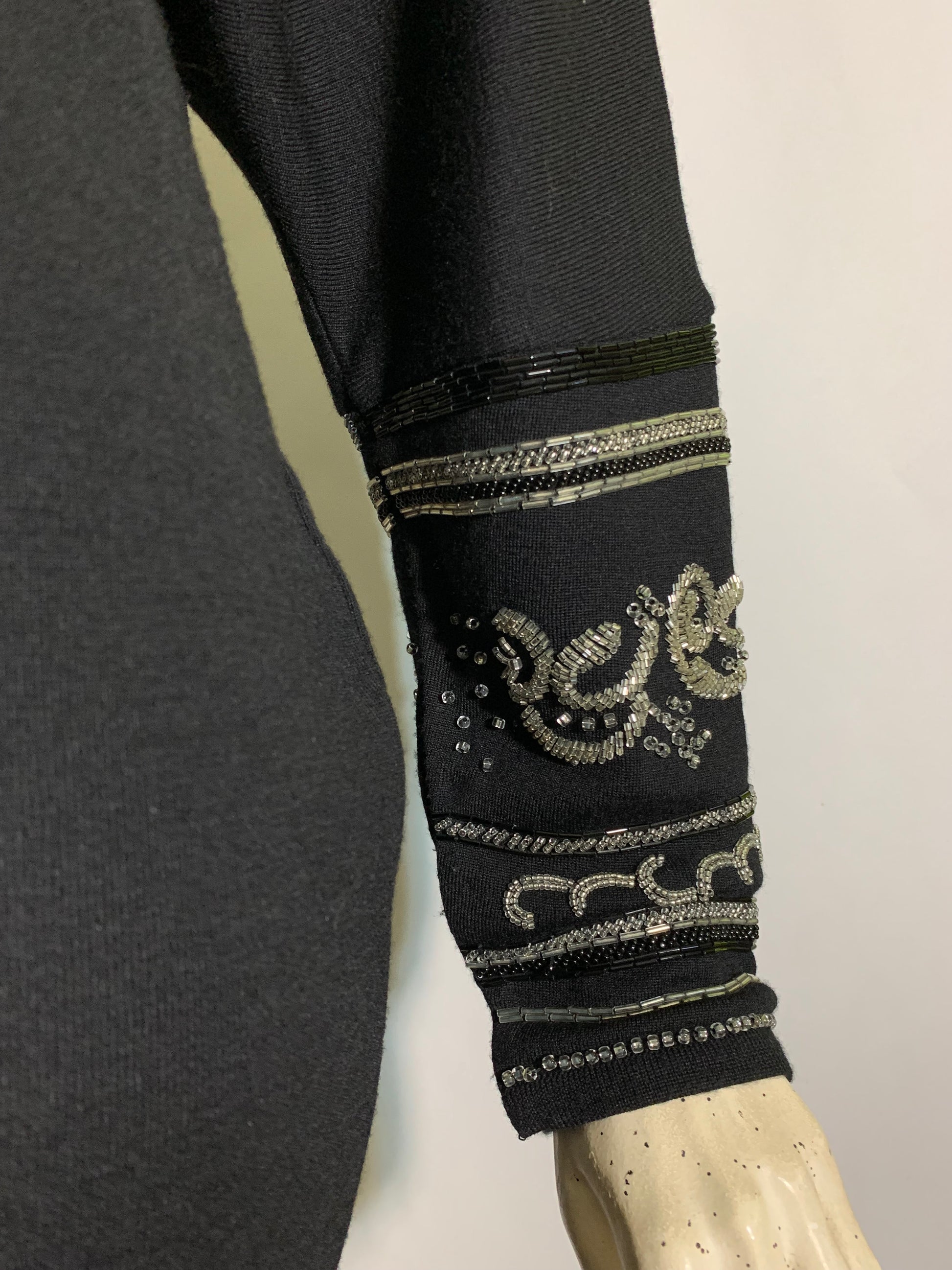 Black Knit Wedge Style Dress with Beaded Cuffs circa 1990s