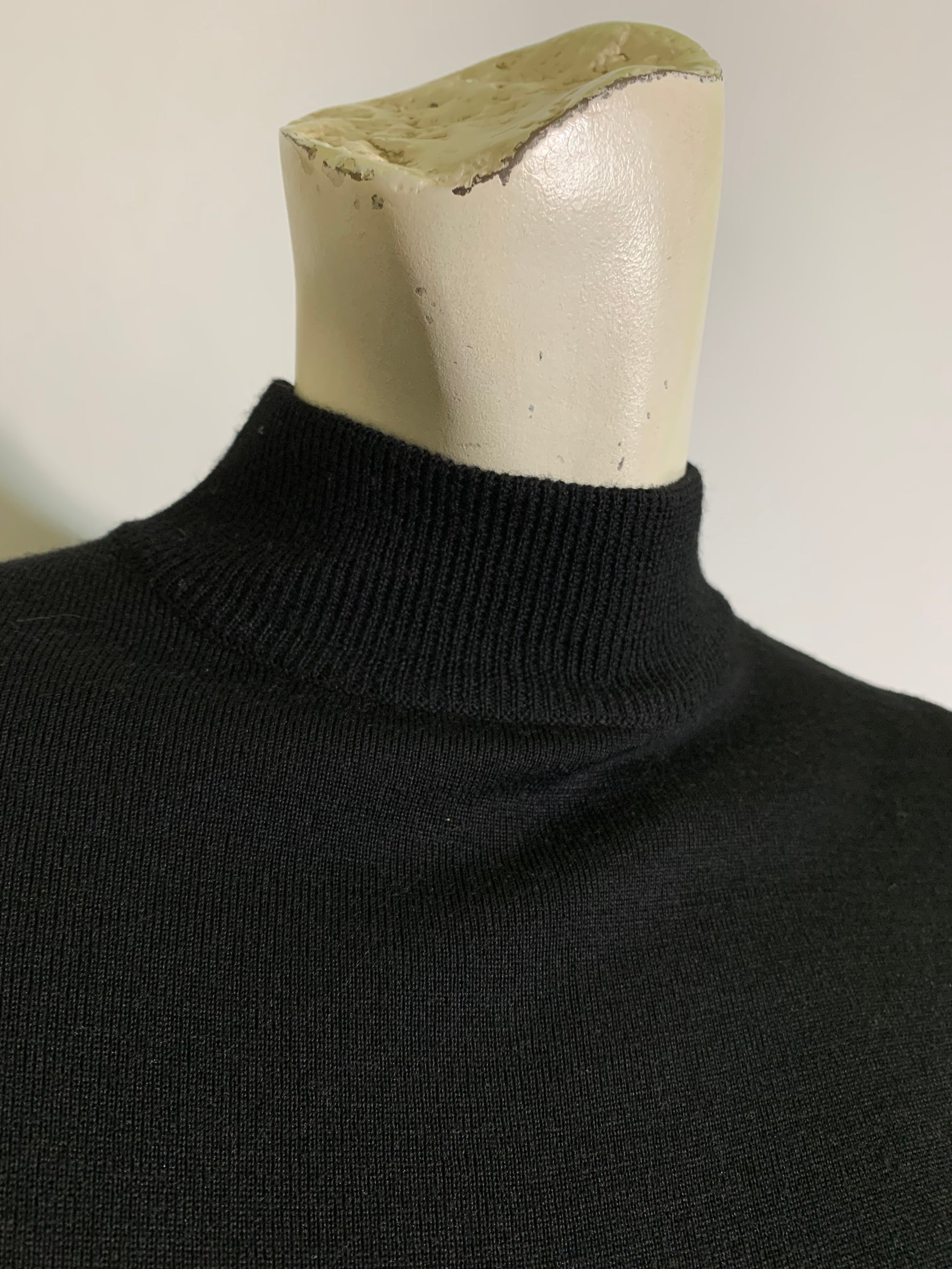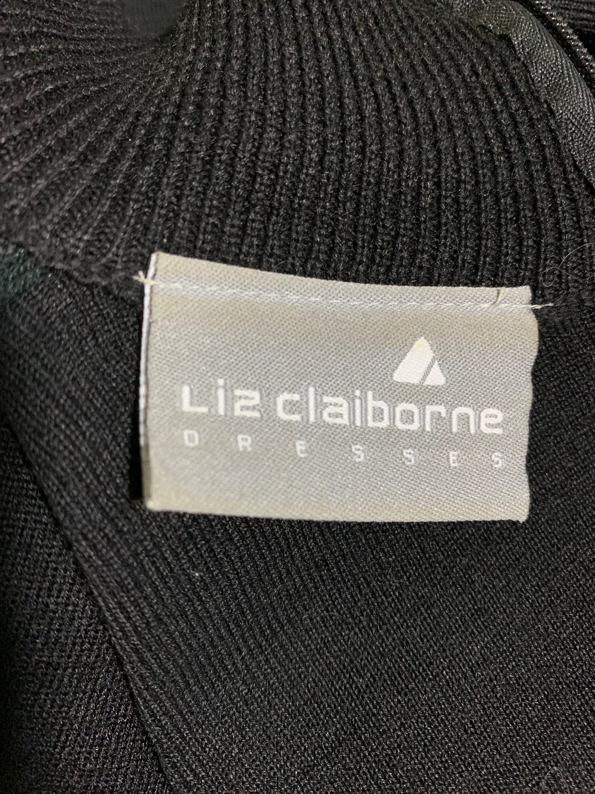 Liz Claiborne black knit wedge style dress with high neck and gorgeous beaded cuffs that snap along wrist. Back zipper. Unlined, no flaws.