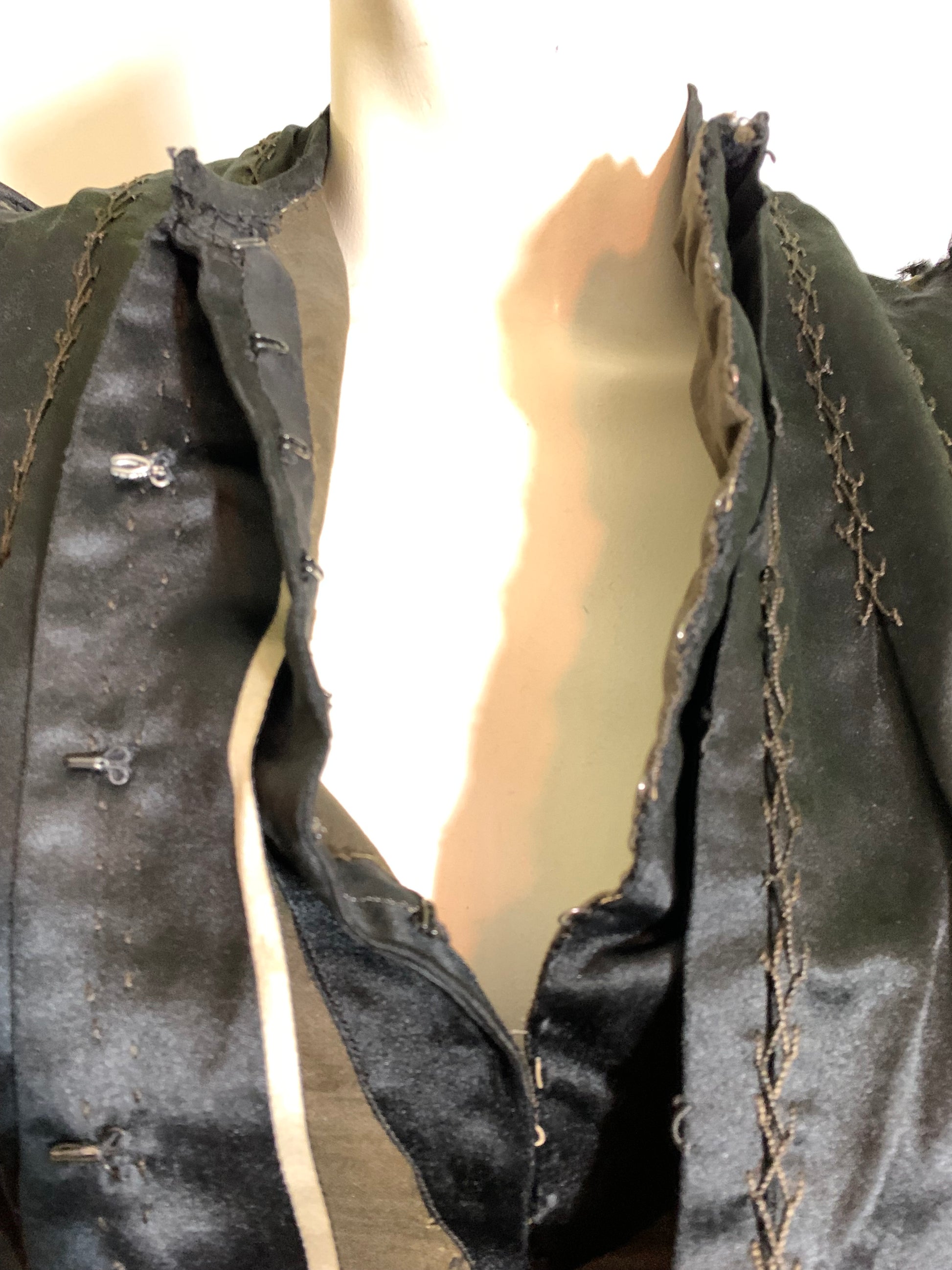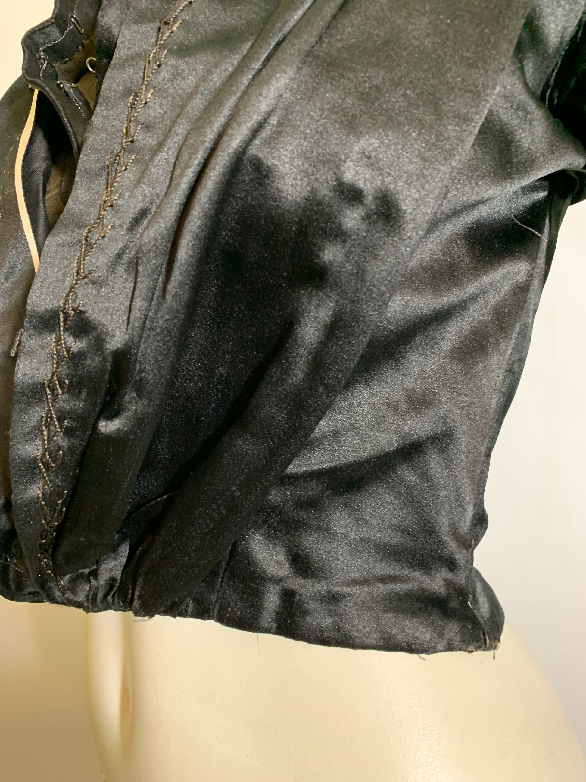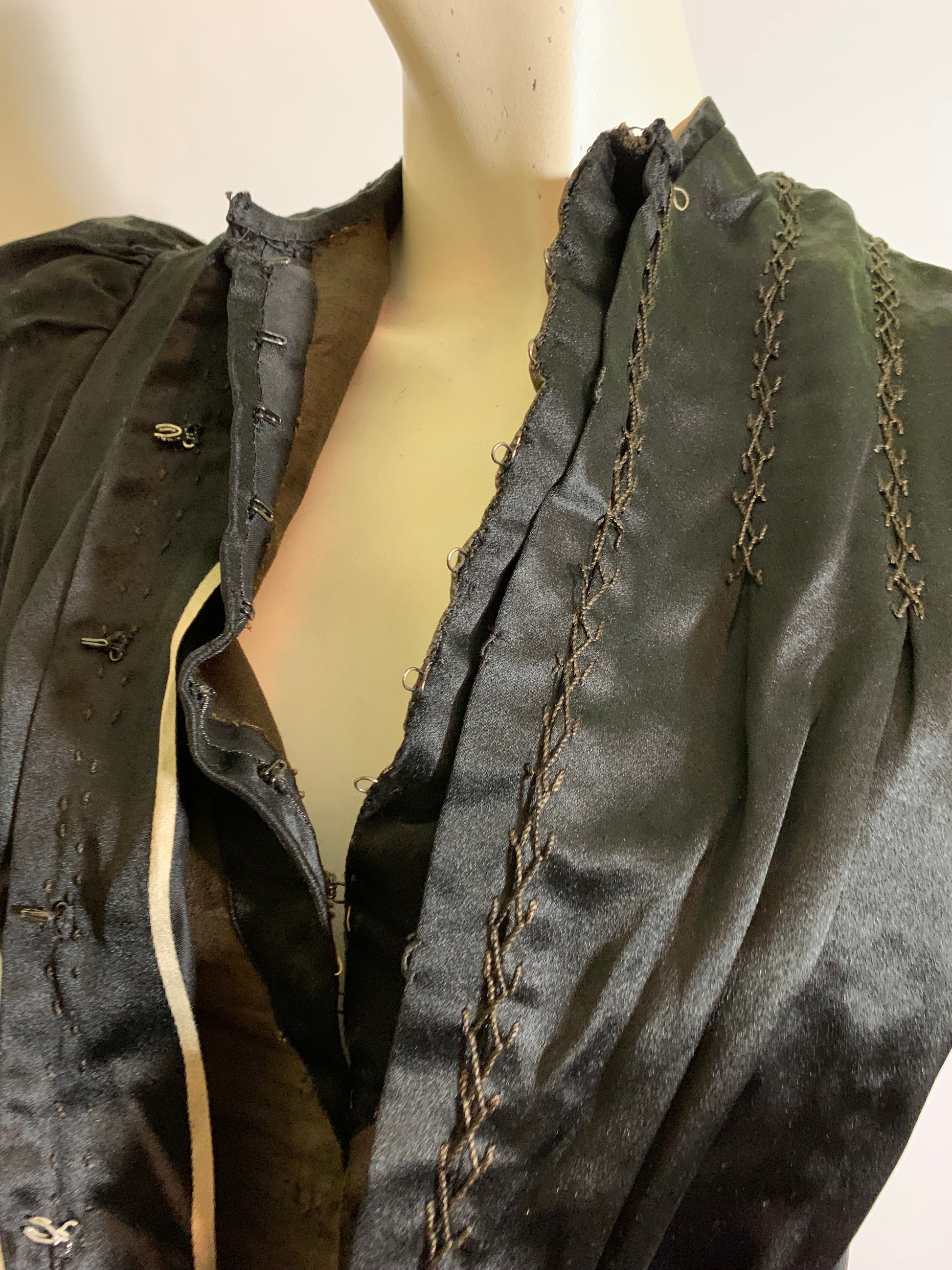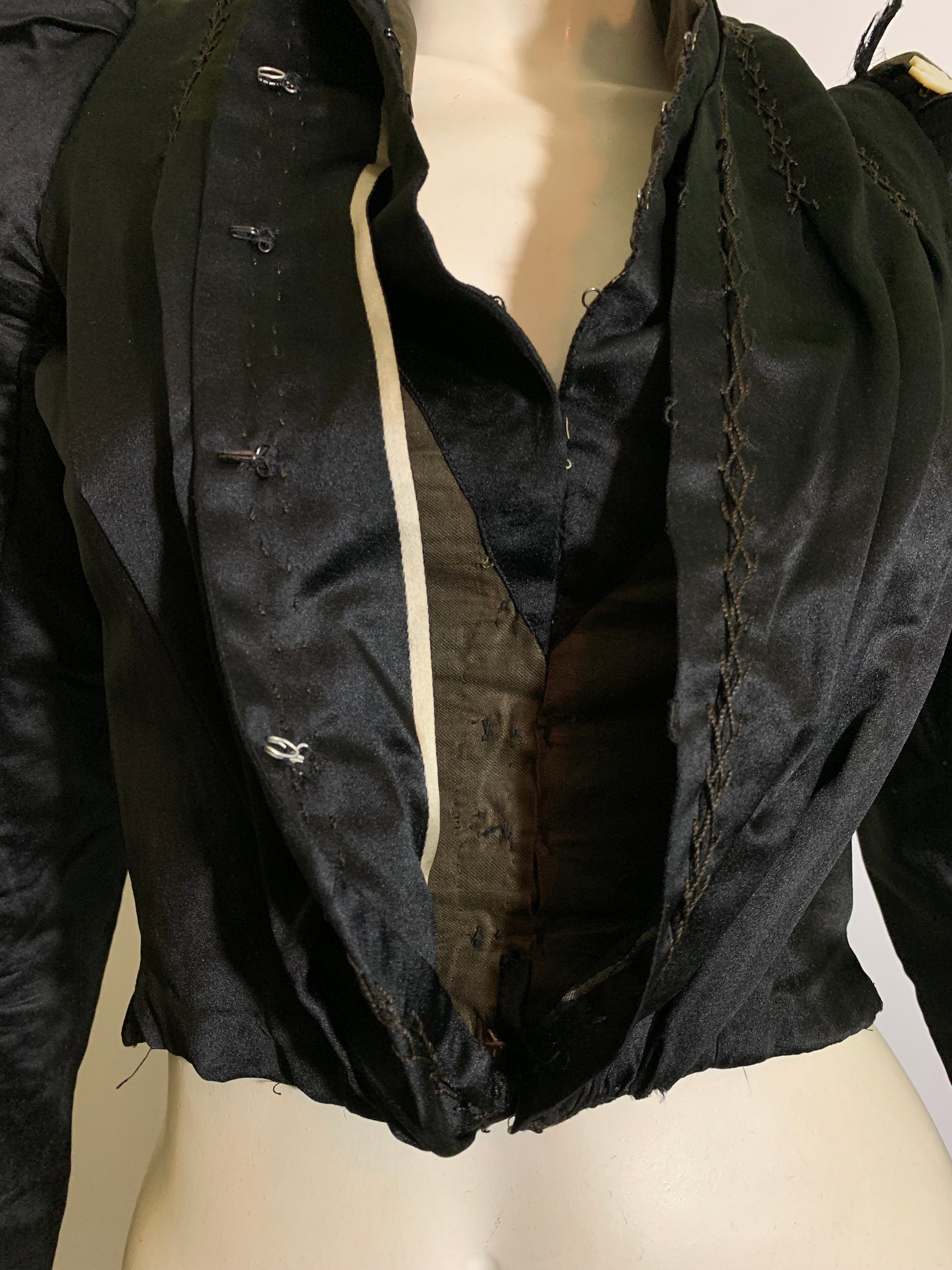 Black Silk Hook Front Puff Shoulder Bodice circa 1890s