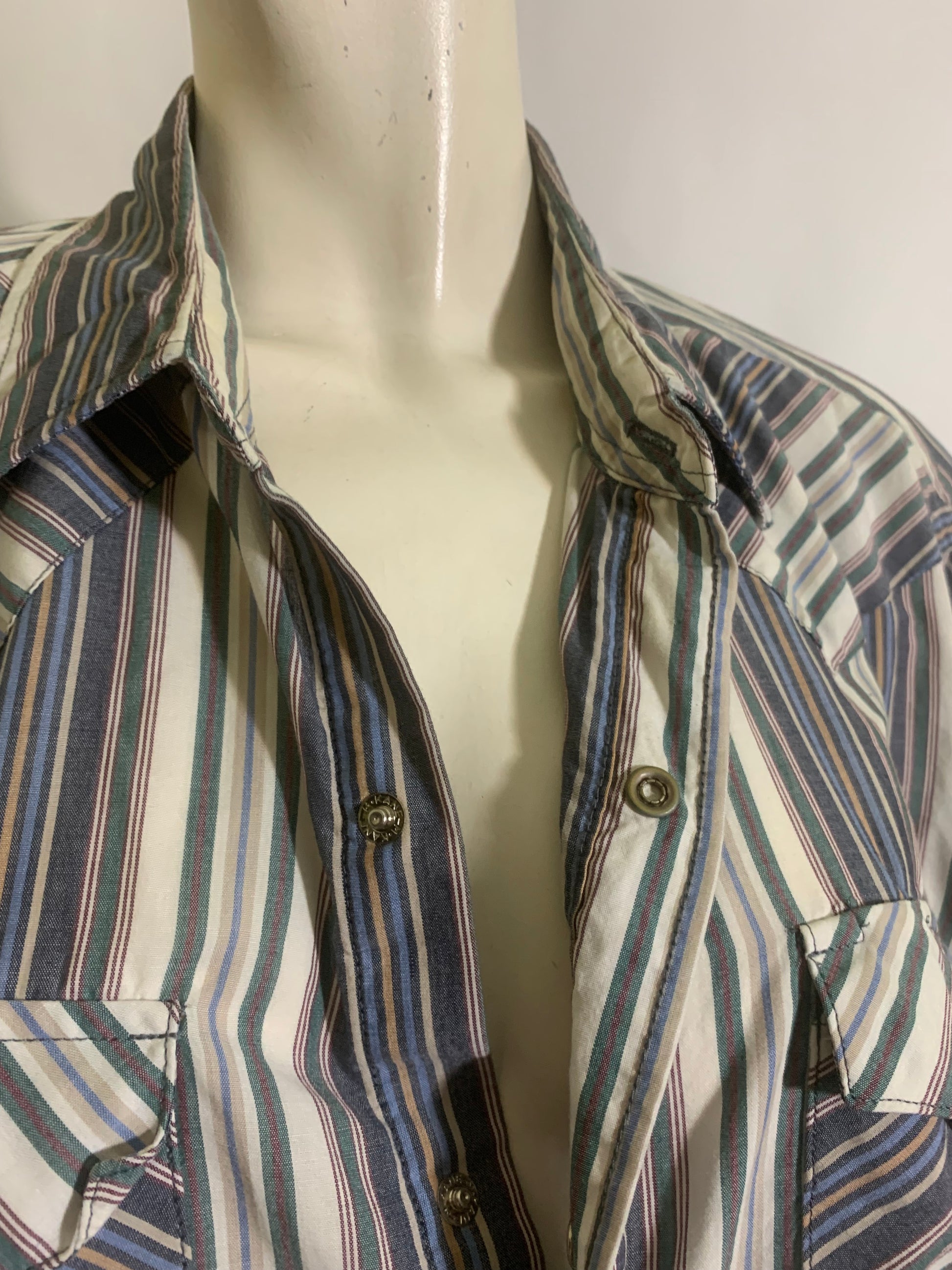 Blue, White and Red Striped Snap Front Men's Western Shirt circa 1980s L