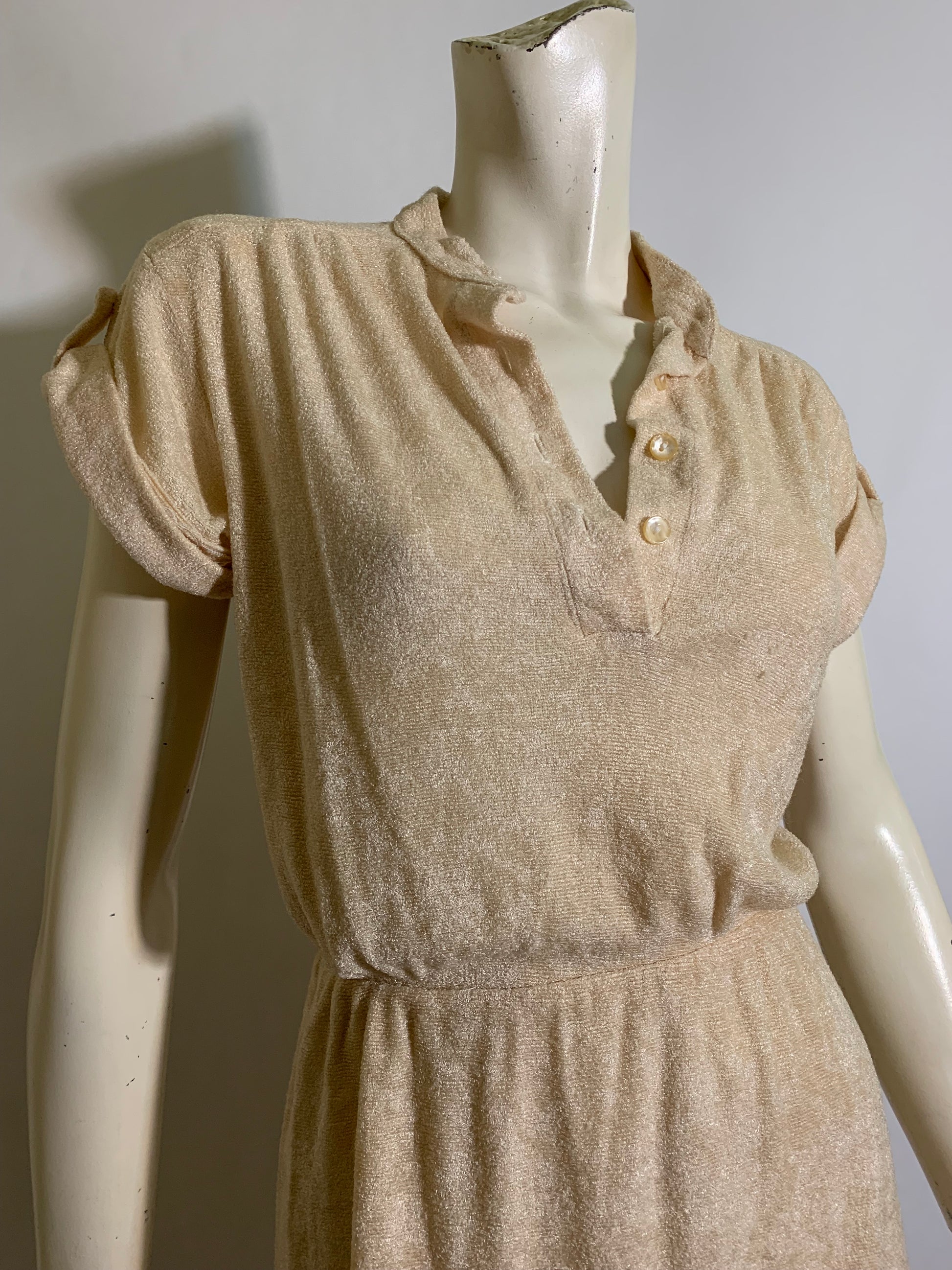 Butter Cream Terry Cloth Dress circa 1970s