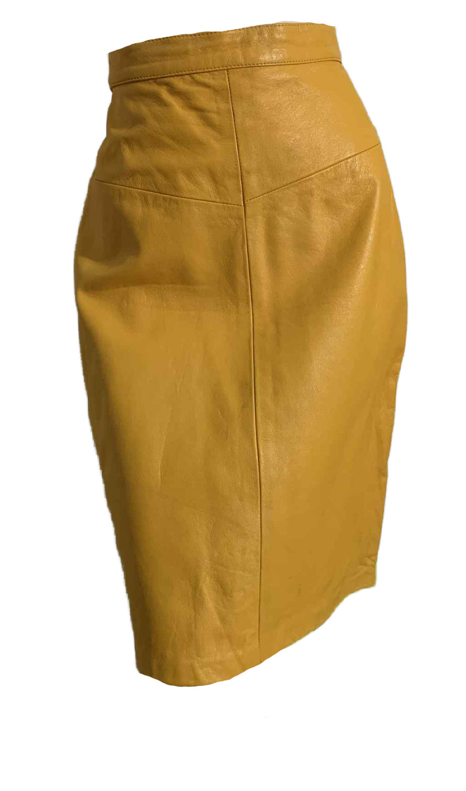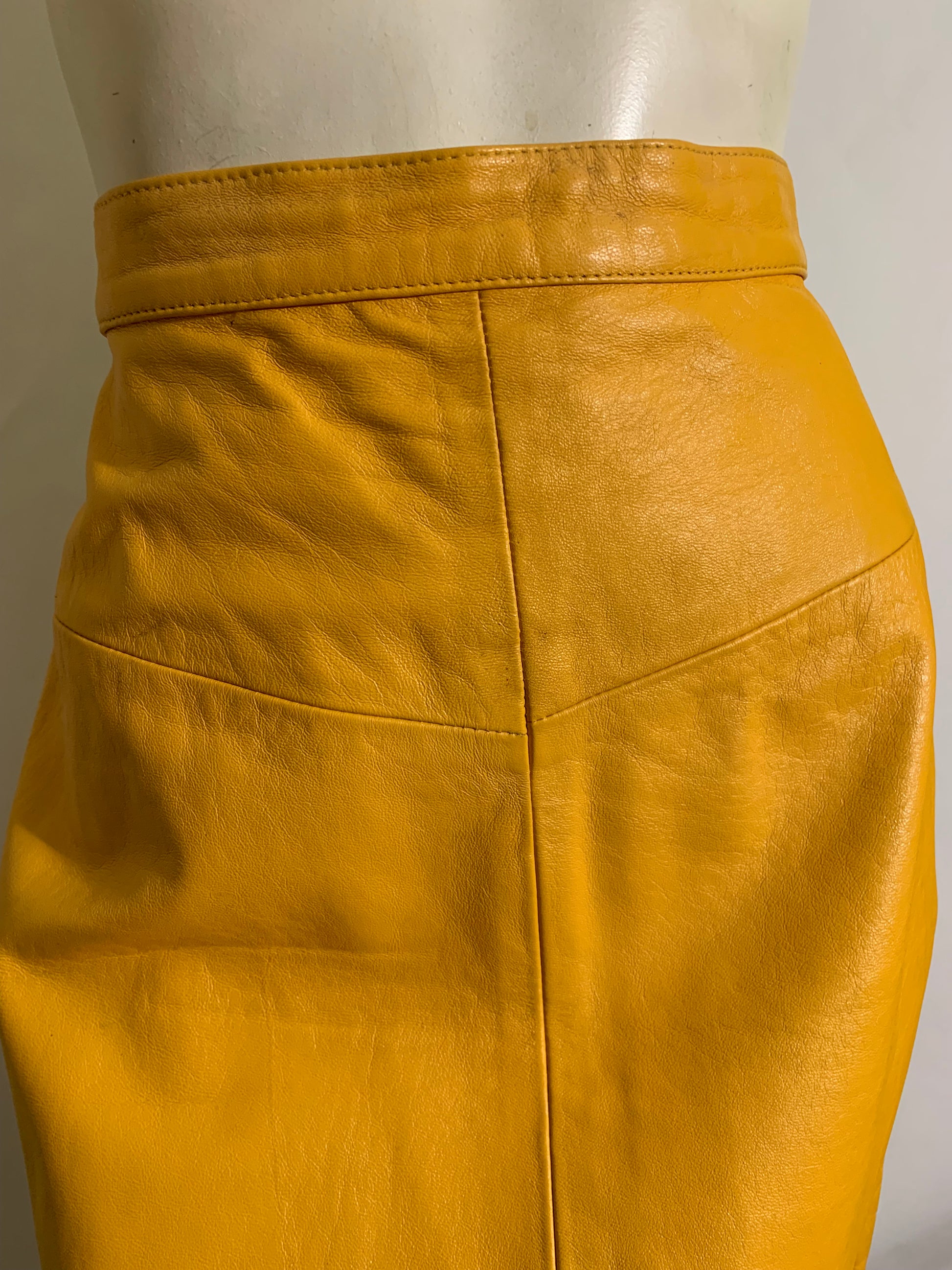 Butter Yellow Leather Pencil Skirt circa 1980s
