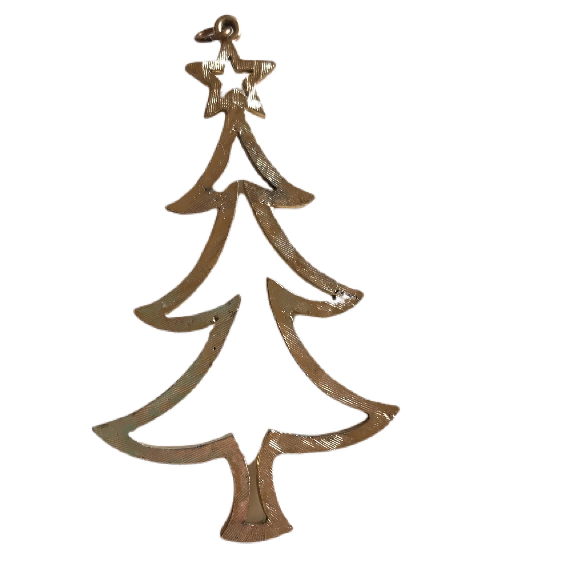 1970s brushed silver tone Christmas tree metal pendant. No chain. Measures 3 1/2" long, 2" wide