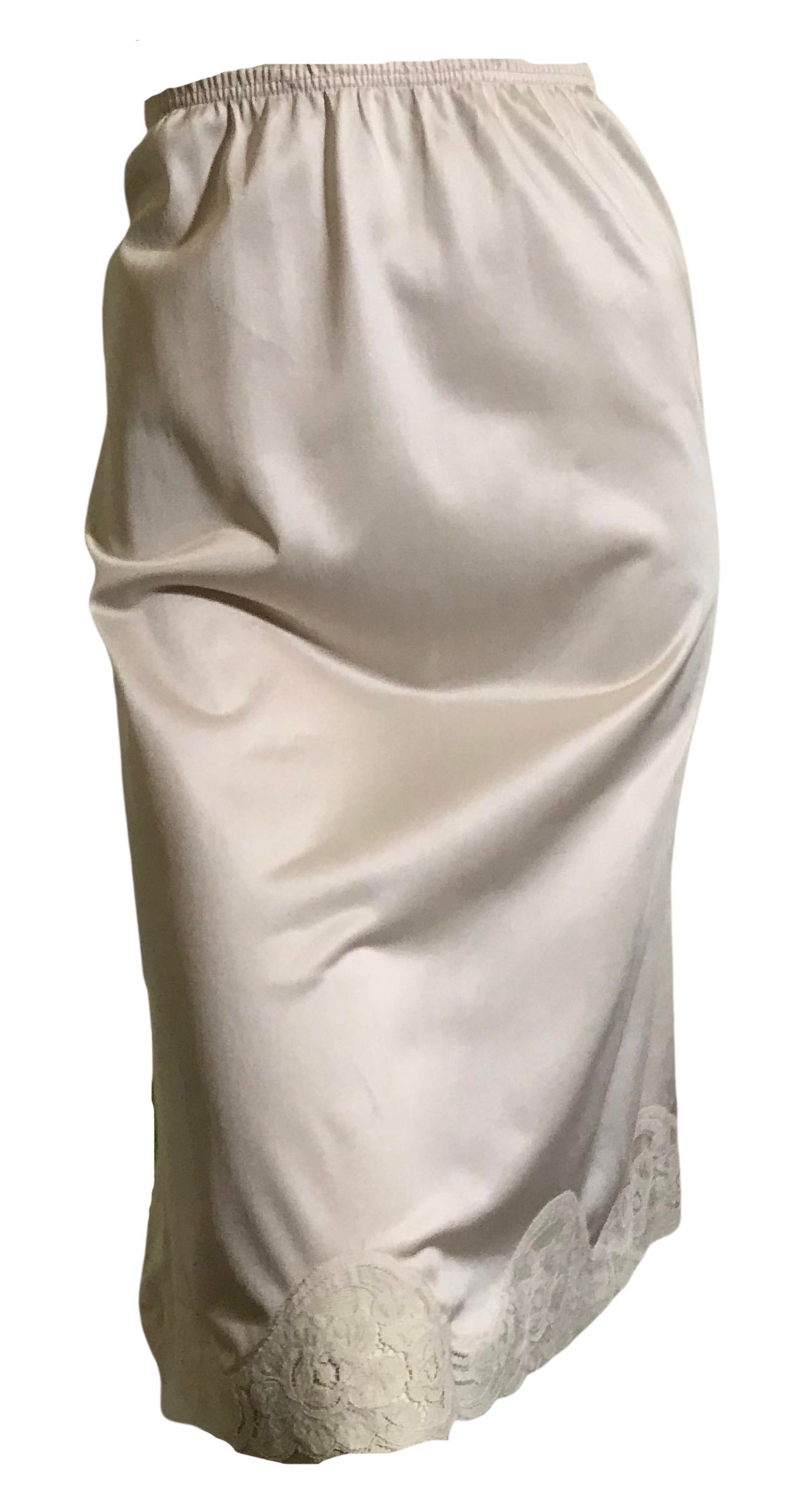 Cream Colored Tricot Nylon Lace Trimmed Half Slip circa 1960s