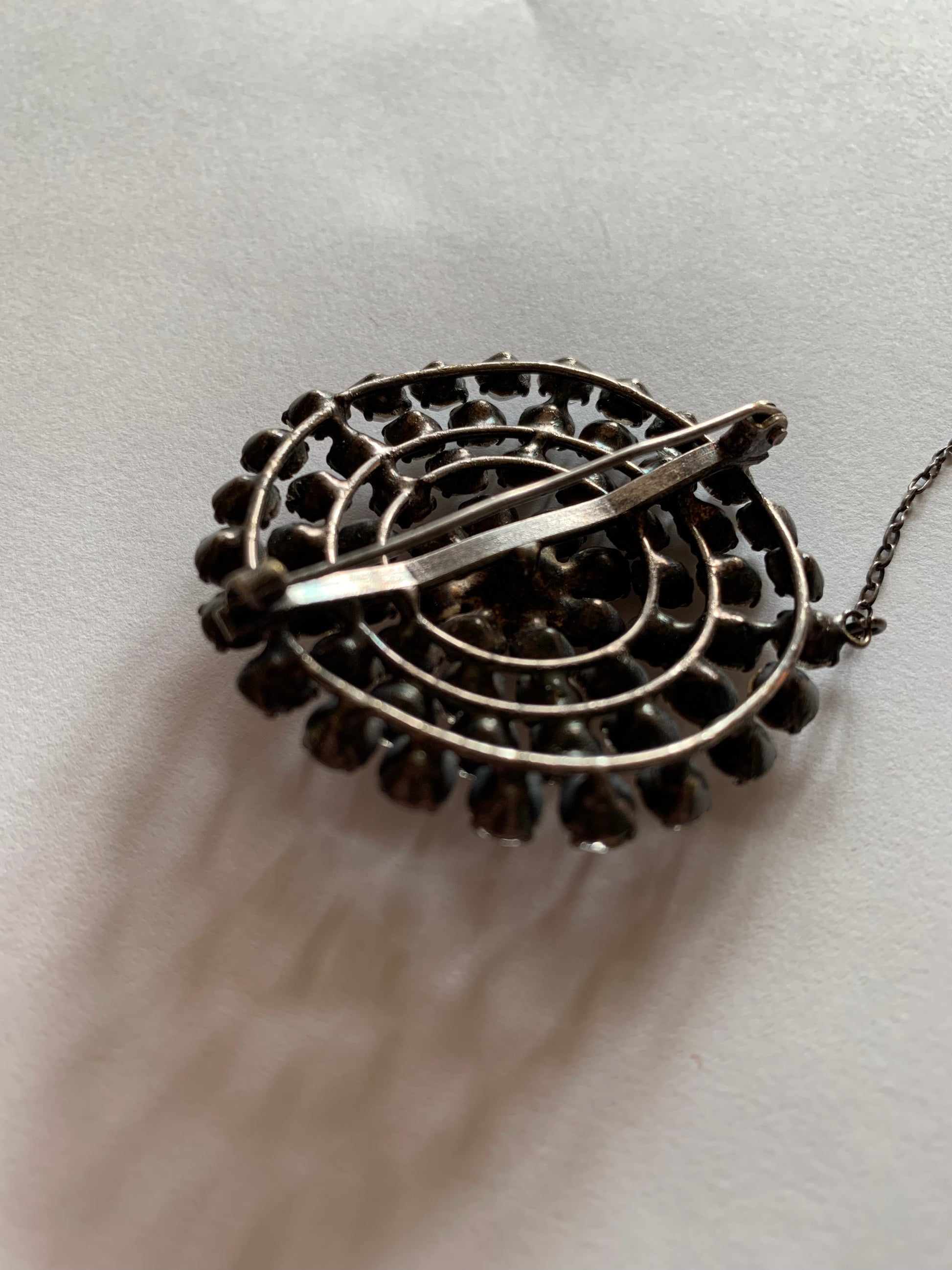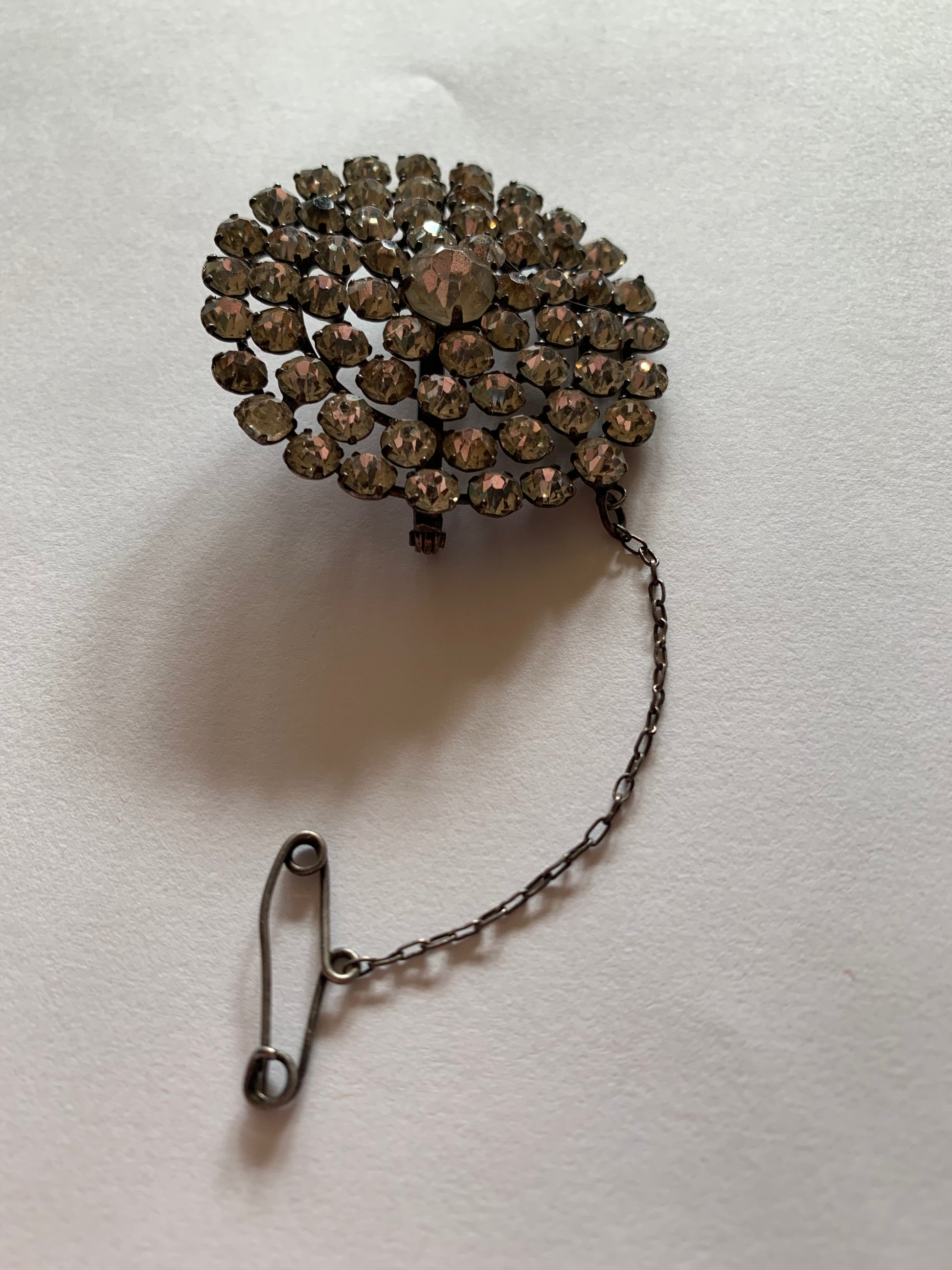 Elegant Clear Rhinestone Round Brooch on Chain with Pin circa 1800s