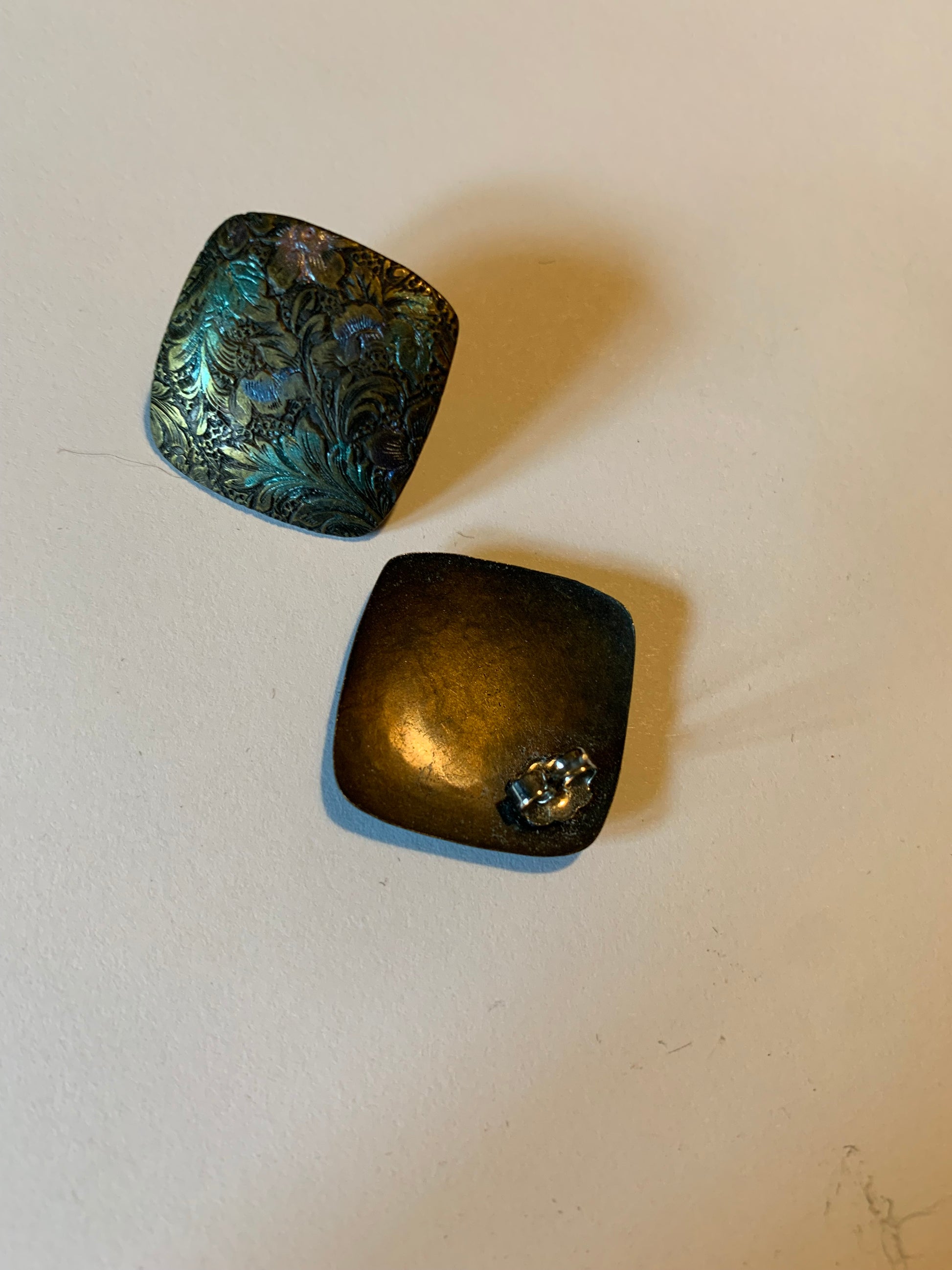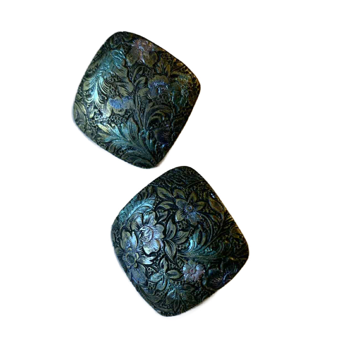 Etched Burnished Copper Pierced Earrings circa 1970s