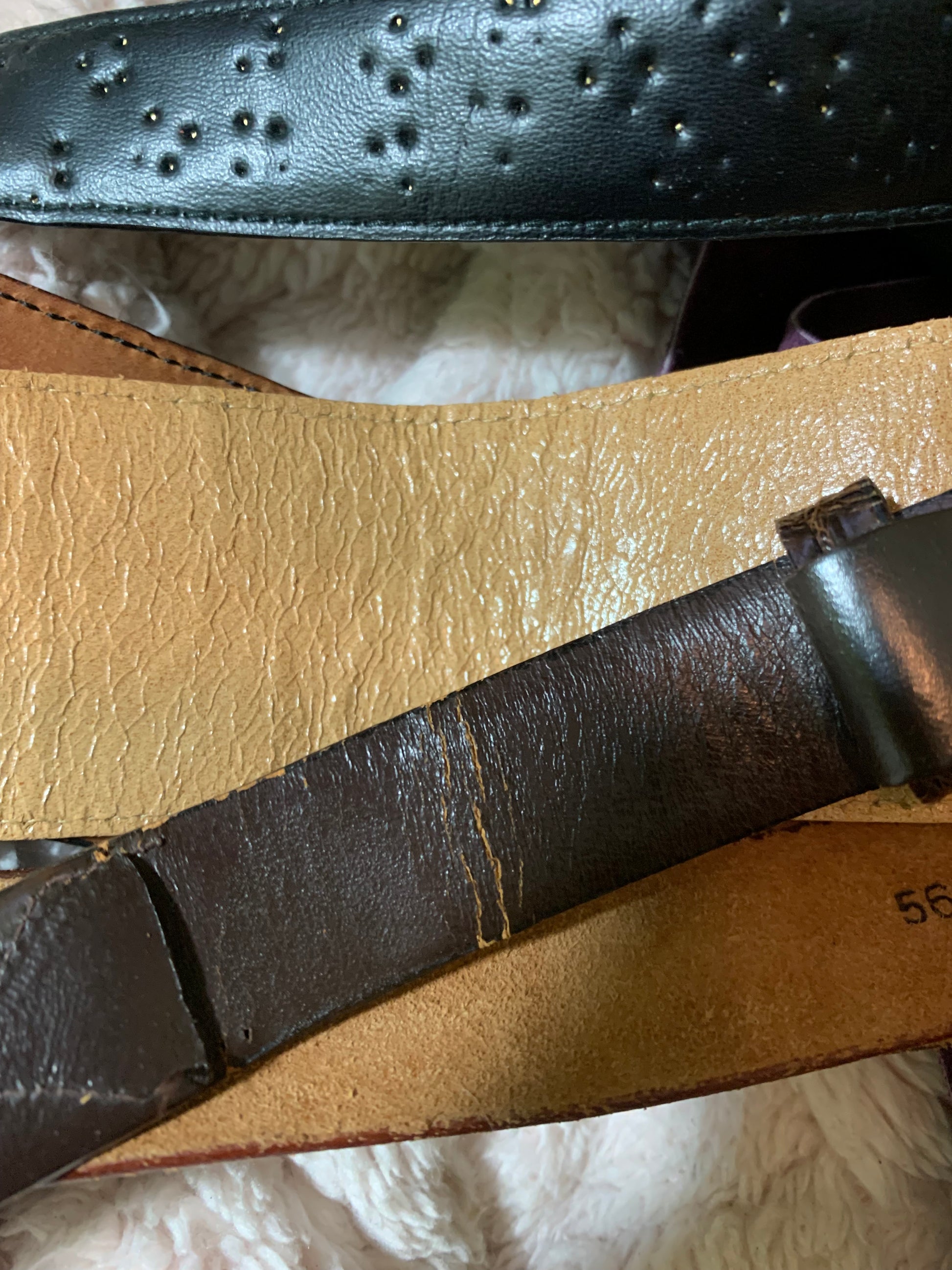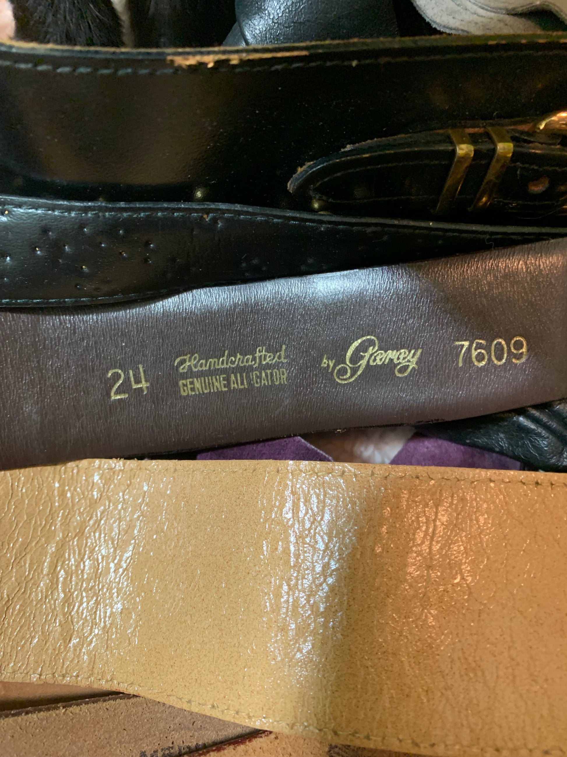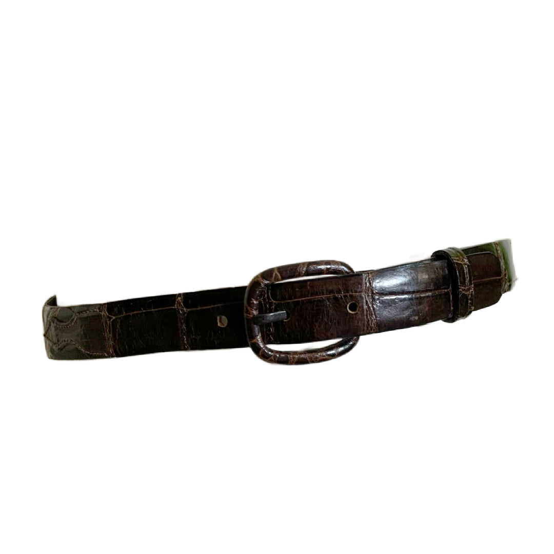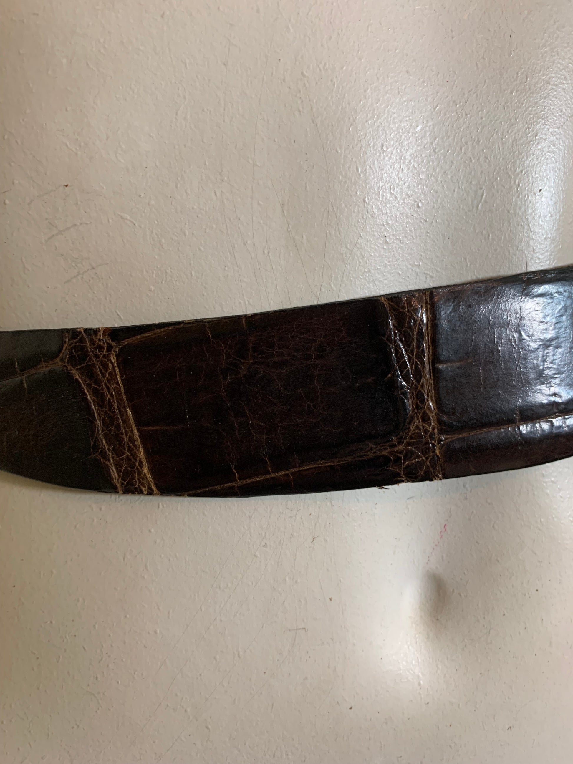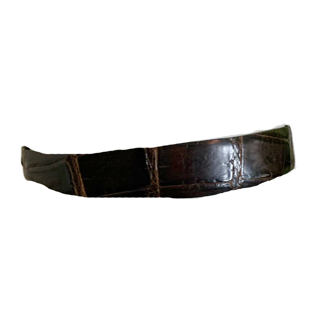 Cognac brown genuine alligator leather belt from the 1950s, wider in front, closure in back (buckle). Minor wear.