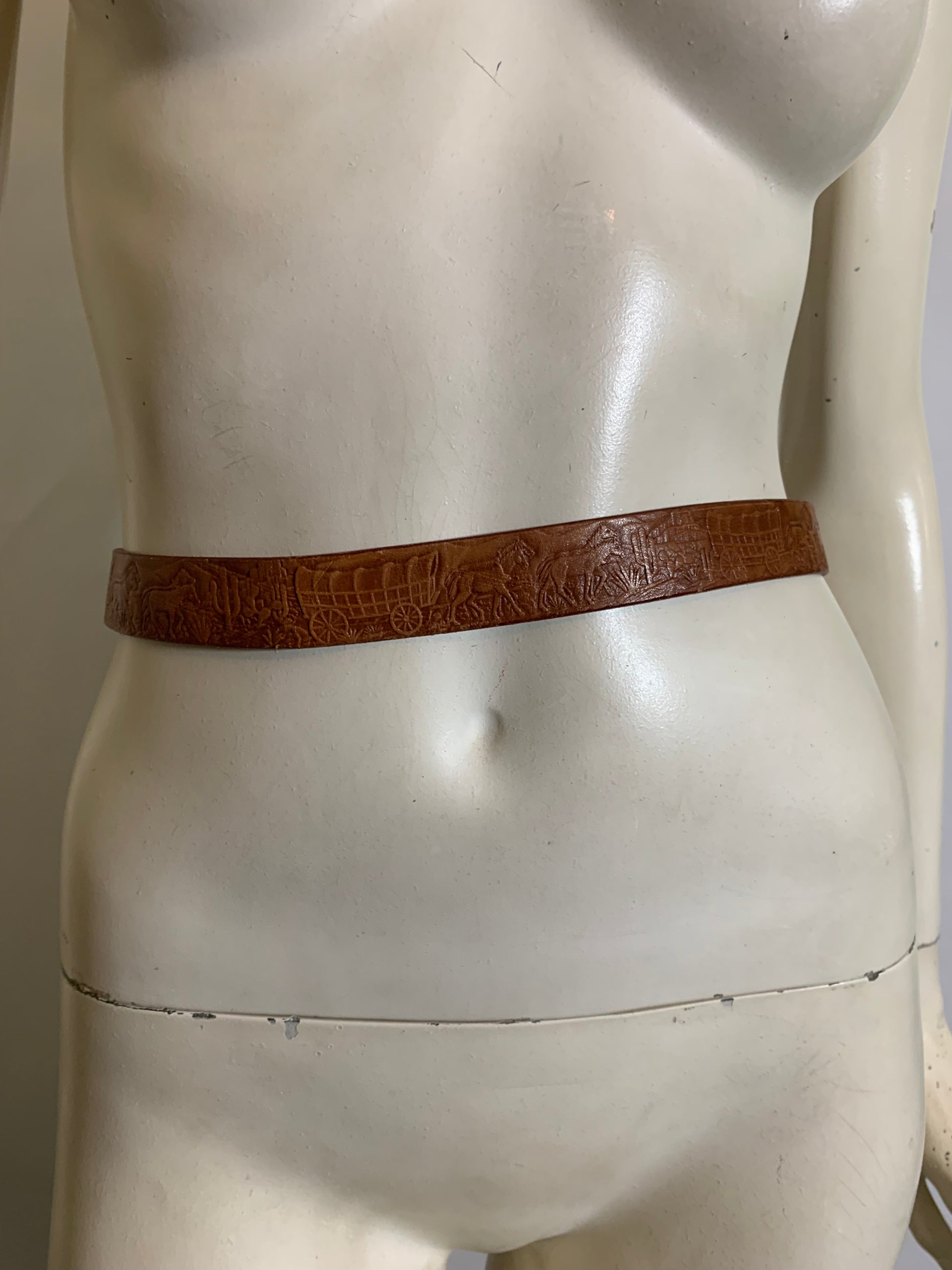 Iconic Tooled Western Leather Belt with Red Rhinestone on Cowboy with Horse circa 1950s