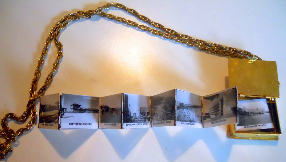 Iowa State Souvenir Necklace Fort Dodge Photo Book Locket circa 1960s