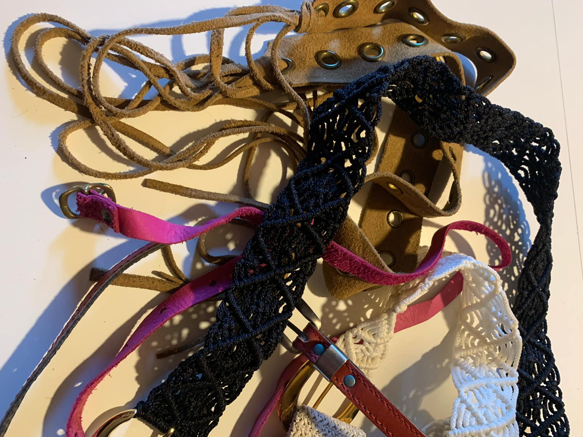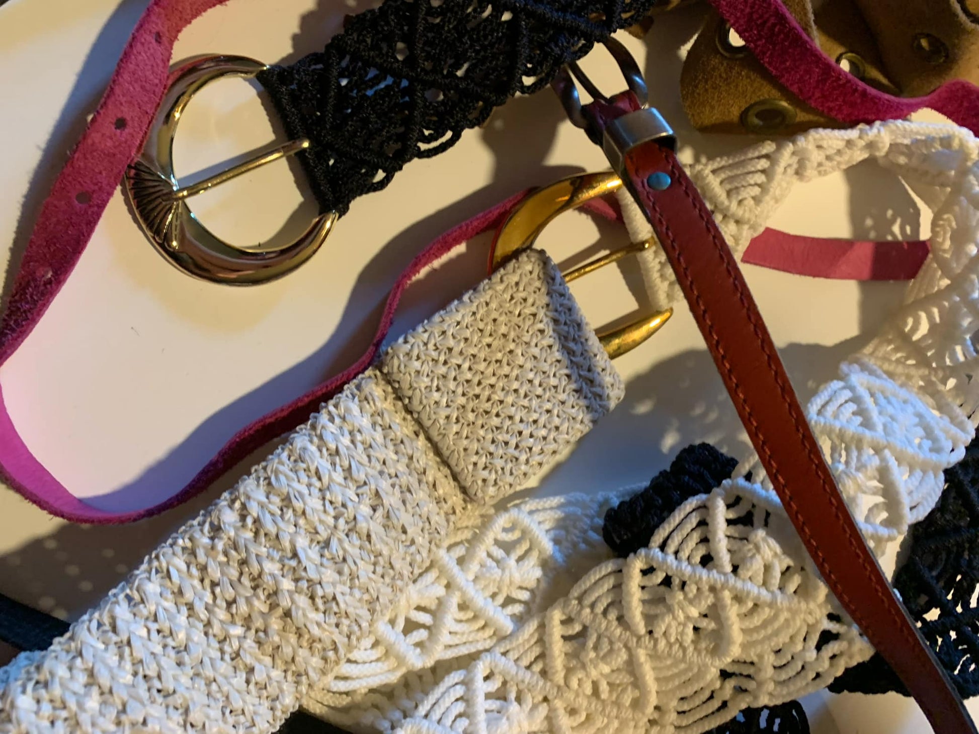 6 belts, some suede, some raffia, some macrame. No flaws.