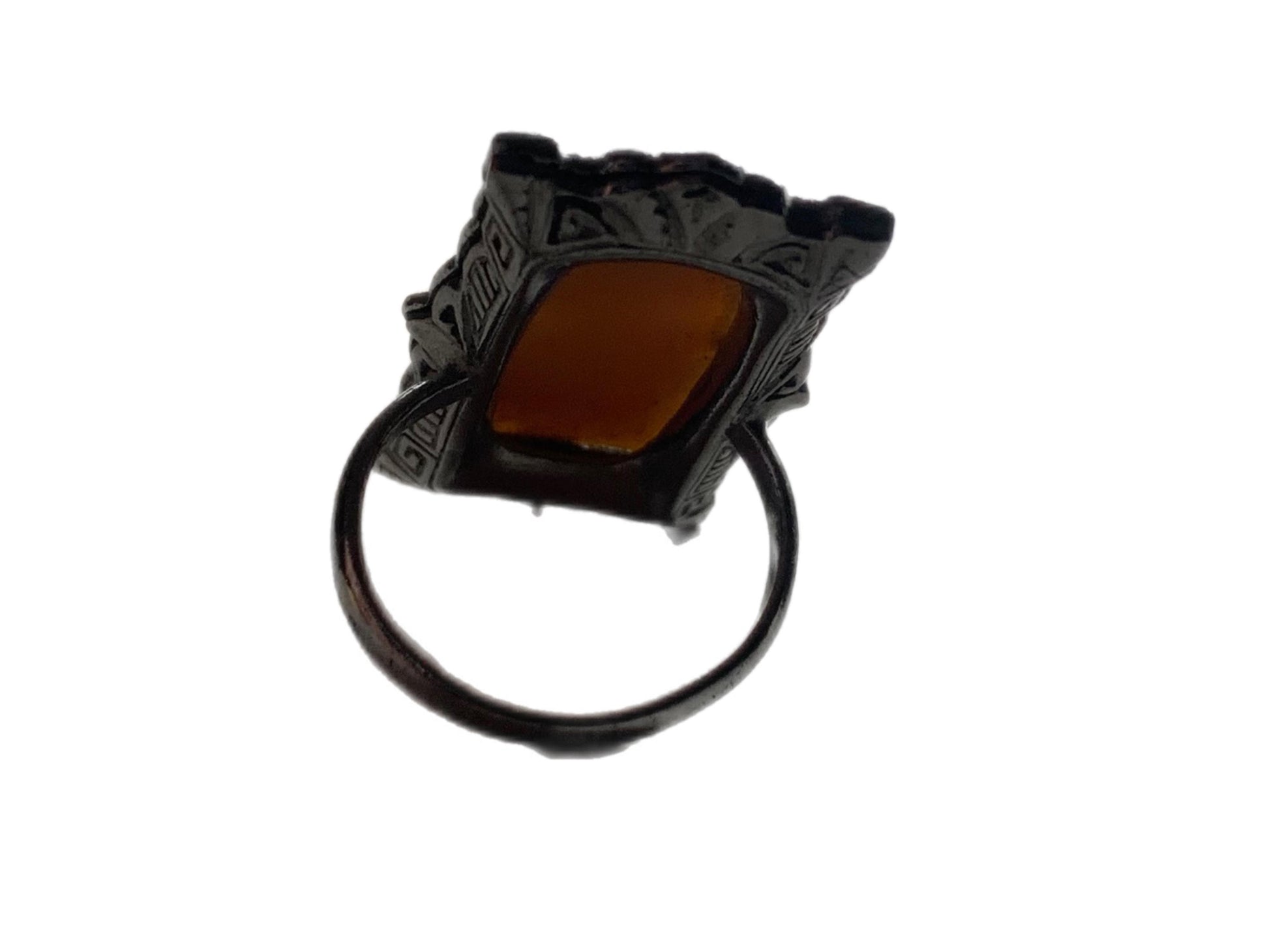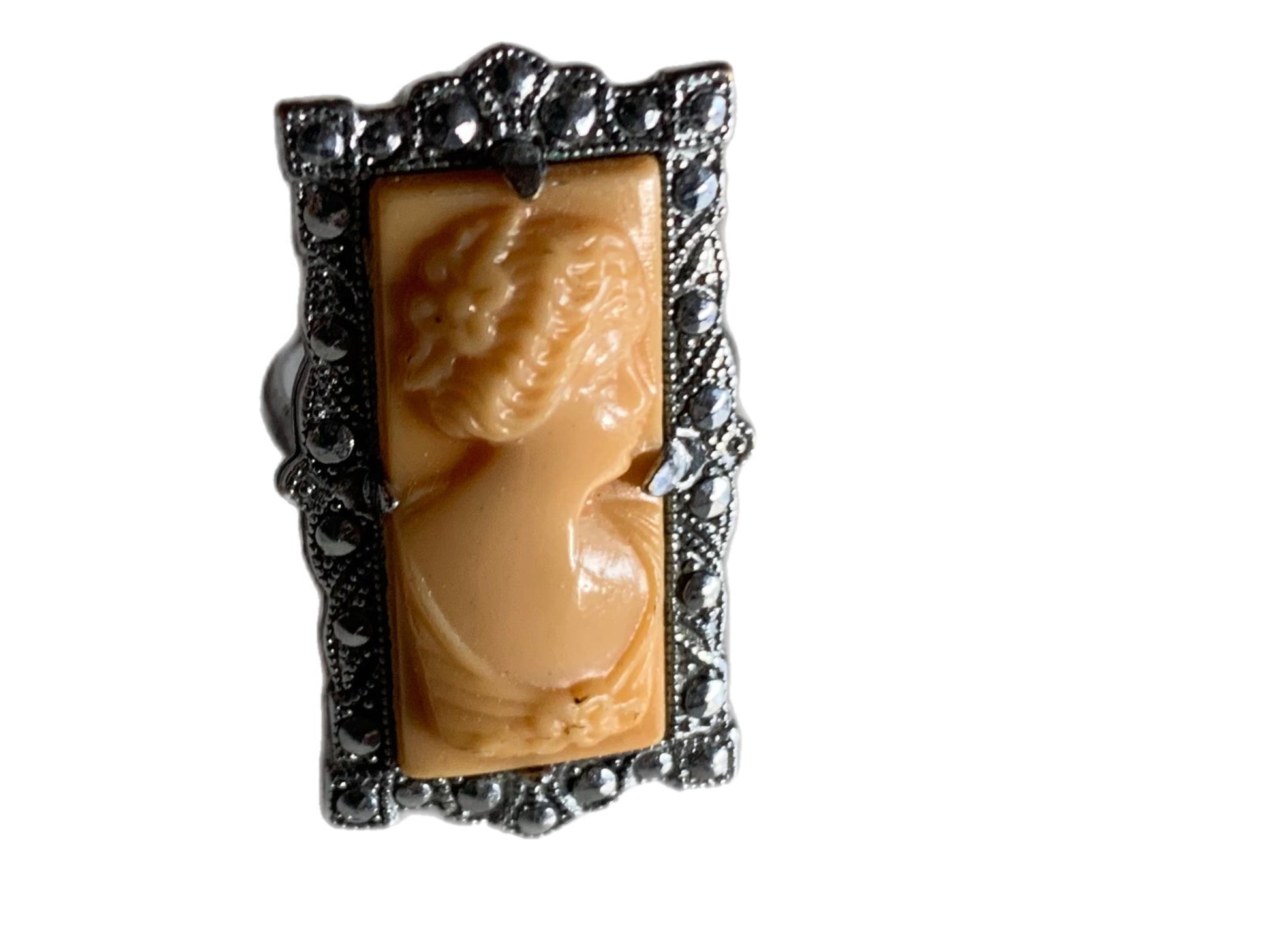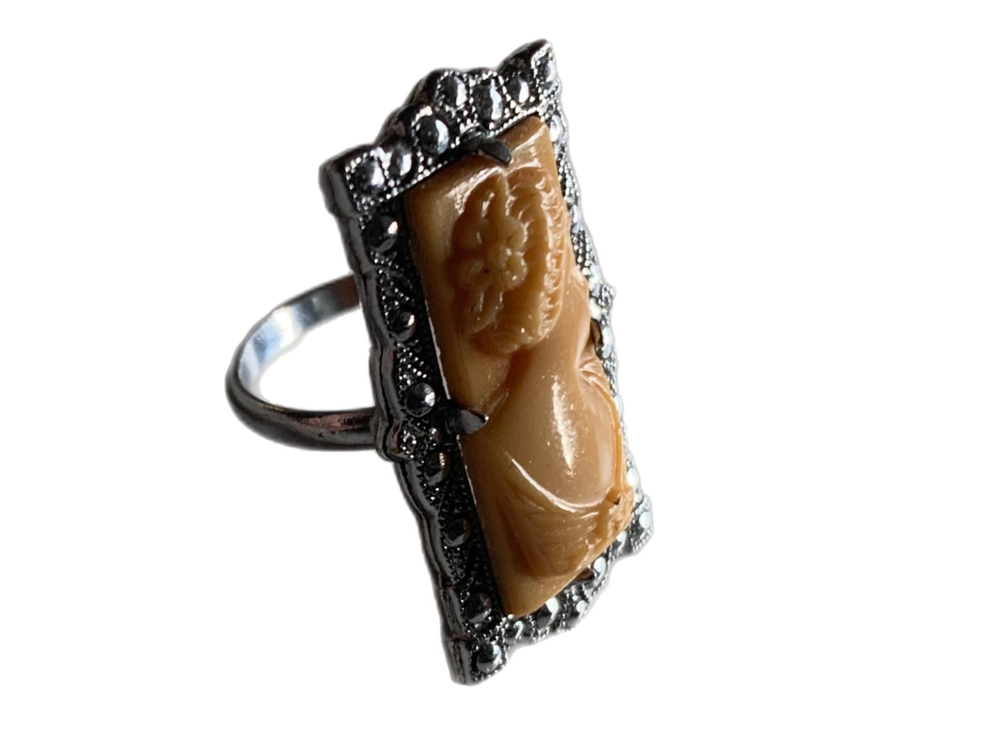 Marcasite and Faux Cameo Profile Ring circa 1960s 3