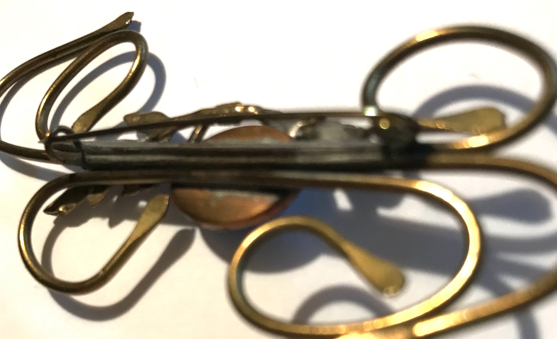 Medusa Inspired Gold Flower and Vine Brooch with Blue Art Glass Center circa 1910s