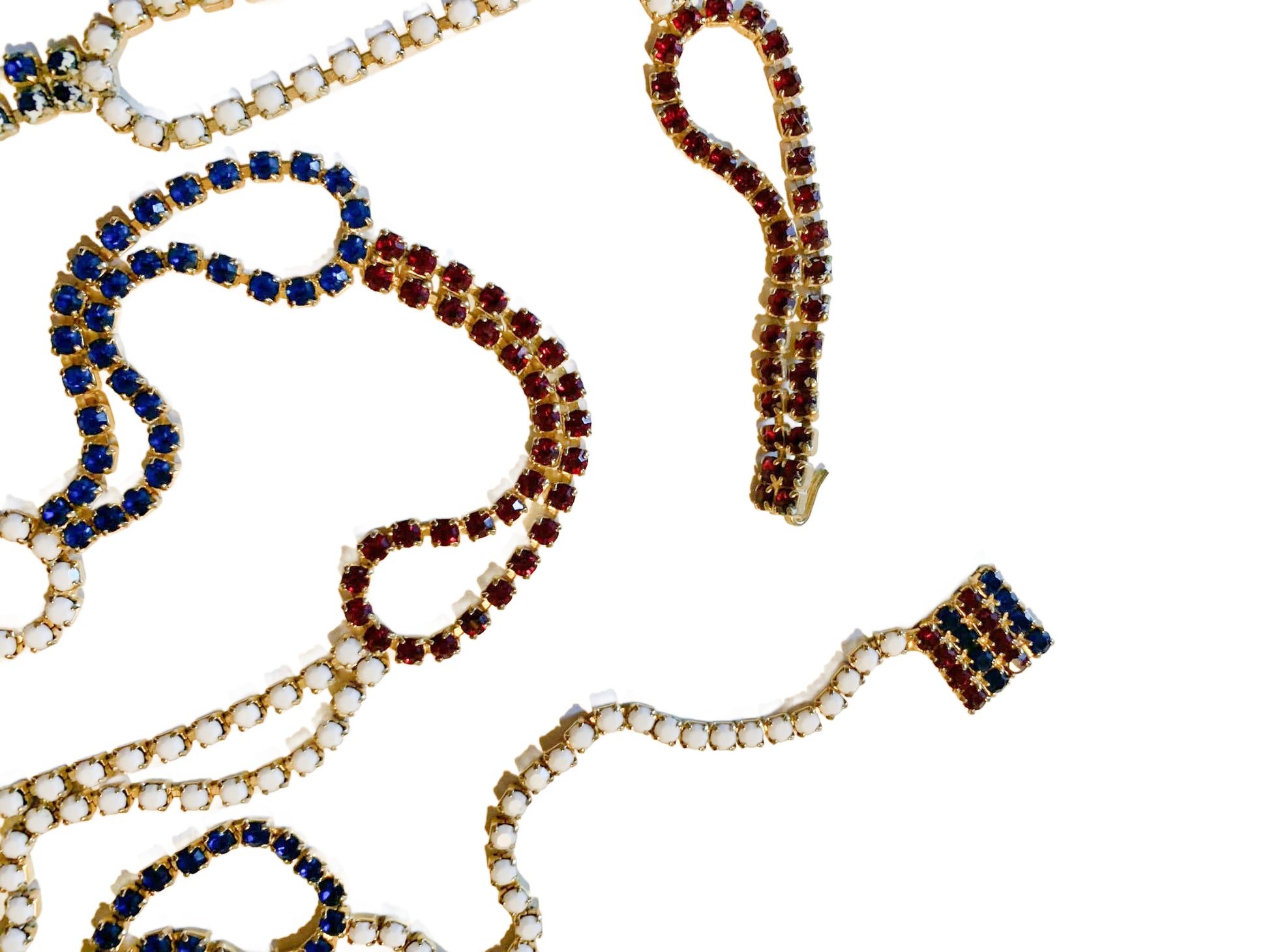 Red White and Blue Rhinestone Hip Belt circa 1980s