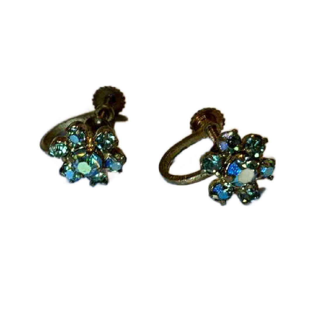 Shimmering Pale Green Rhinestone Screwback Clip Earrings circa 1960s