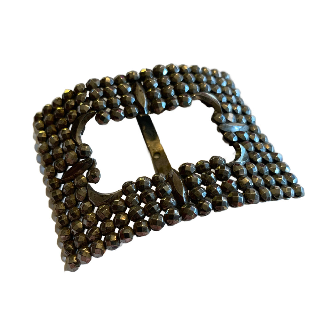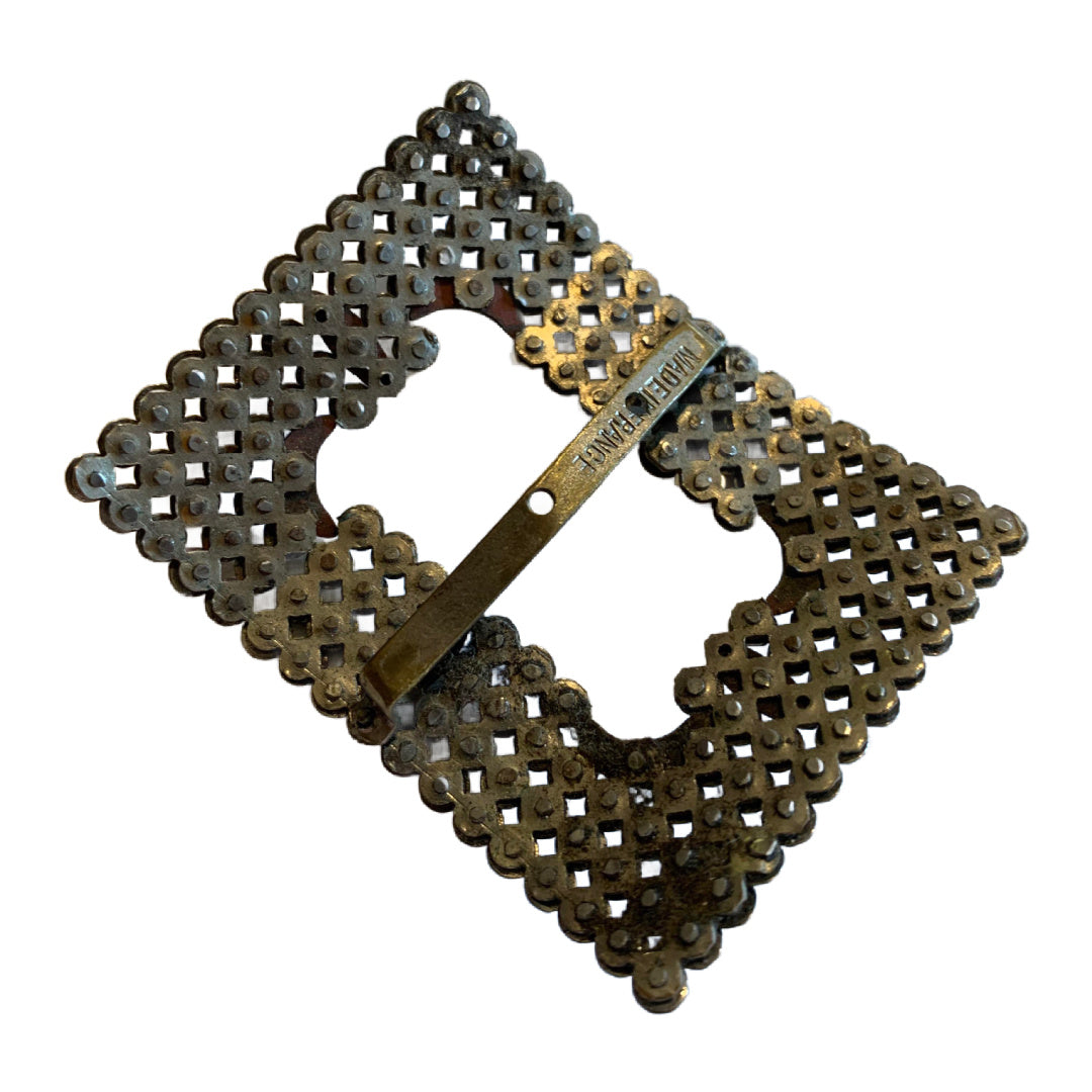 Silvery cut steel late 1800s sash buckle or shoe accent. Made in France. 2 1/4" by 2"