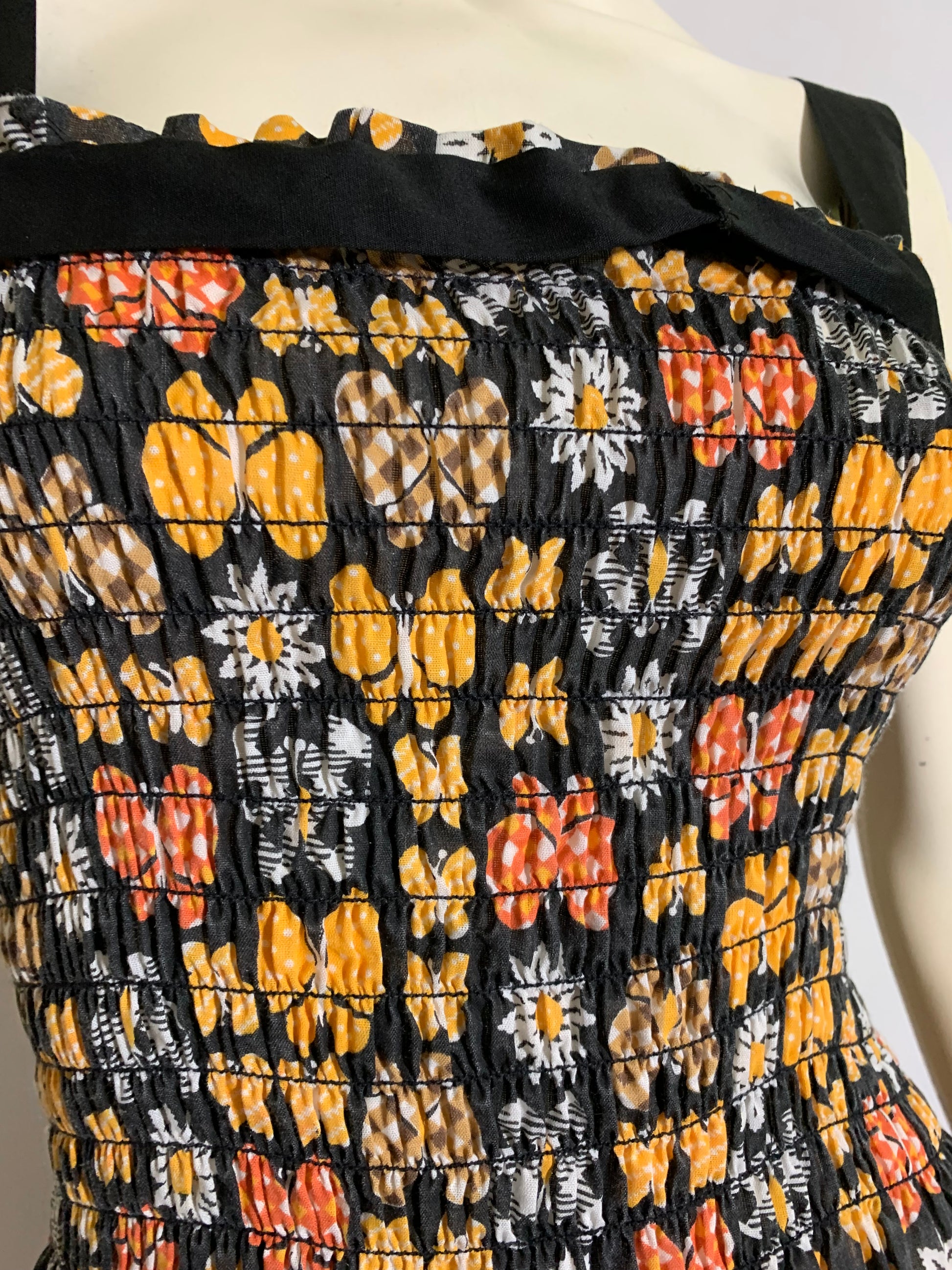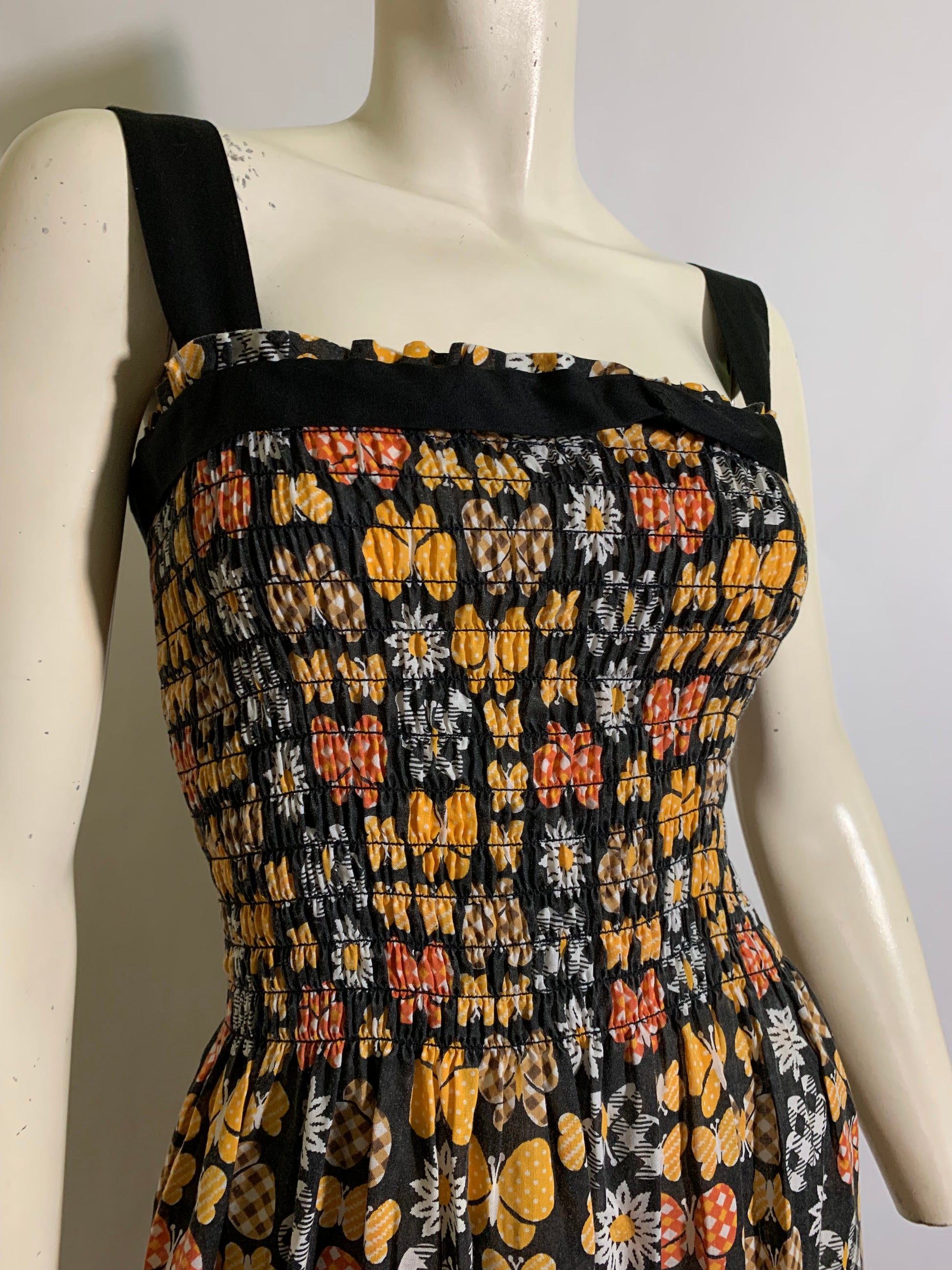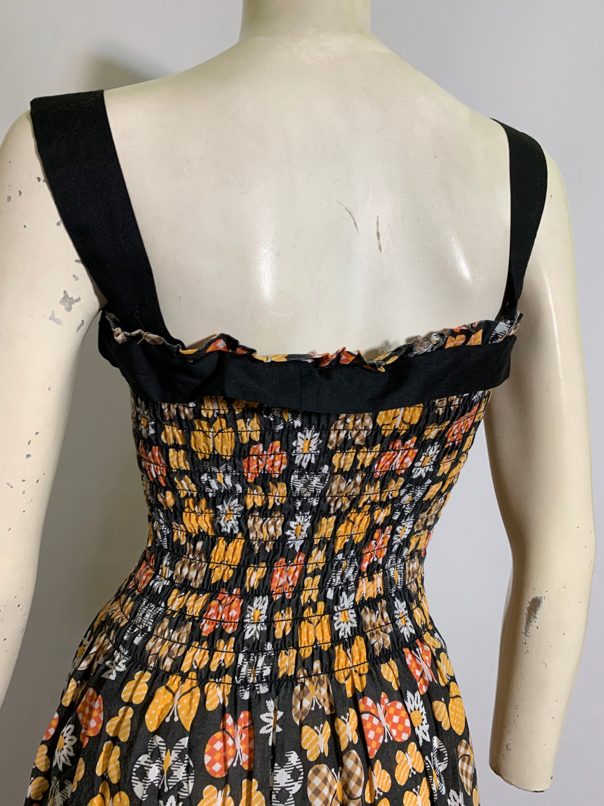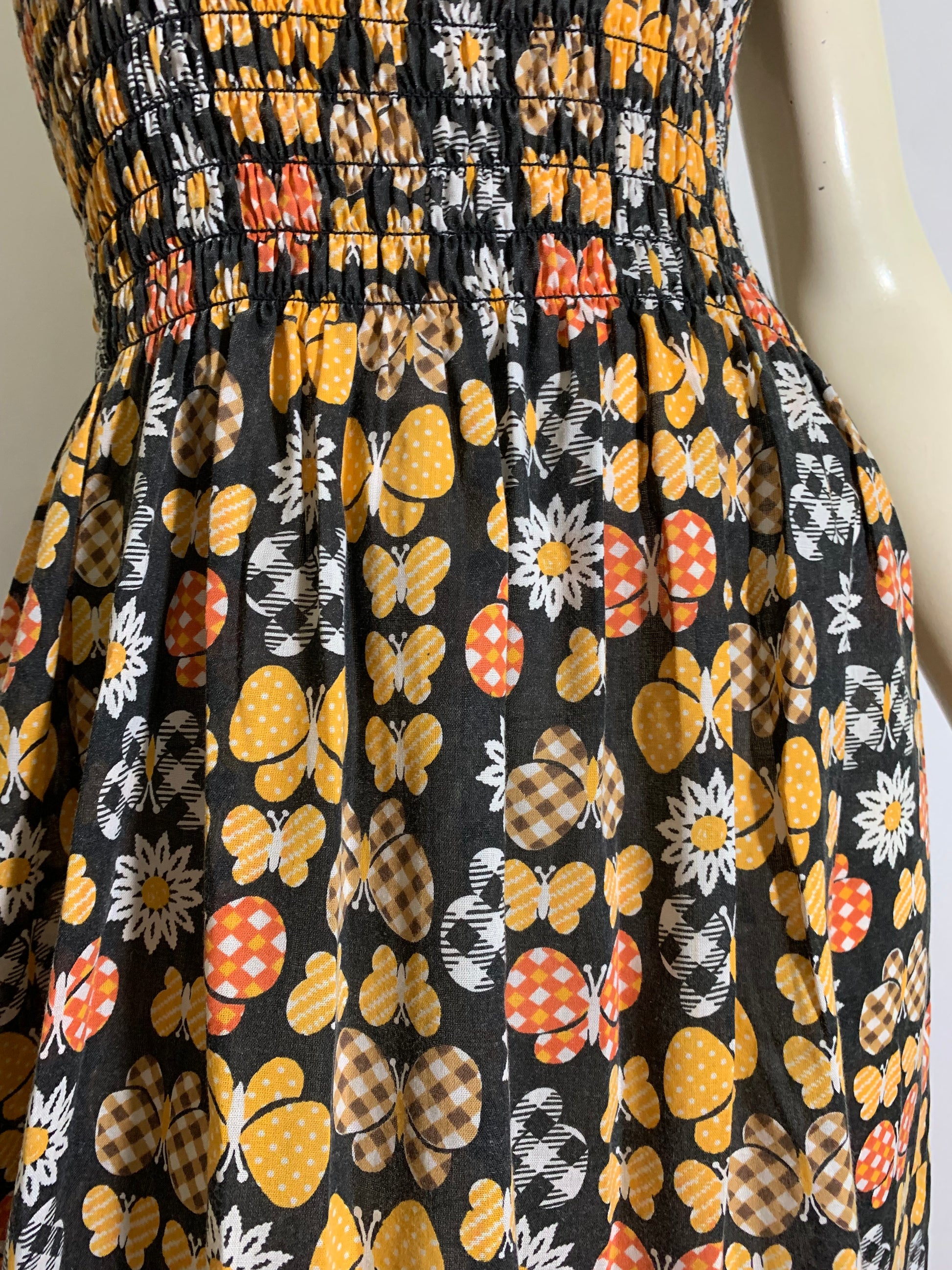 Smocked Bodice Butterfly Print Cotton Sun Dress circa 1970s