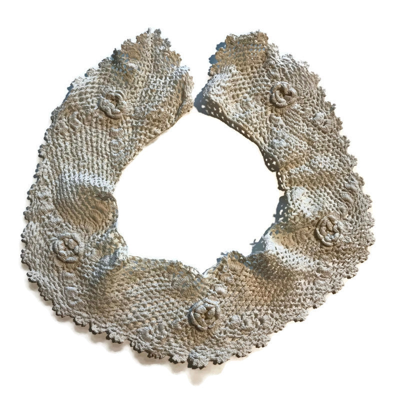 Soft White Flower Design Scalloped Crocheted Collar circa 1910s