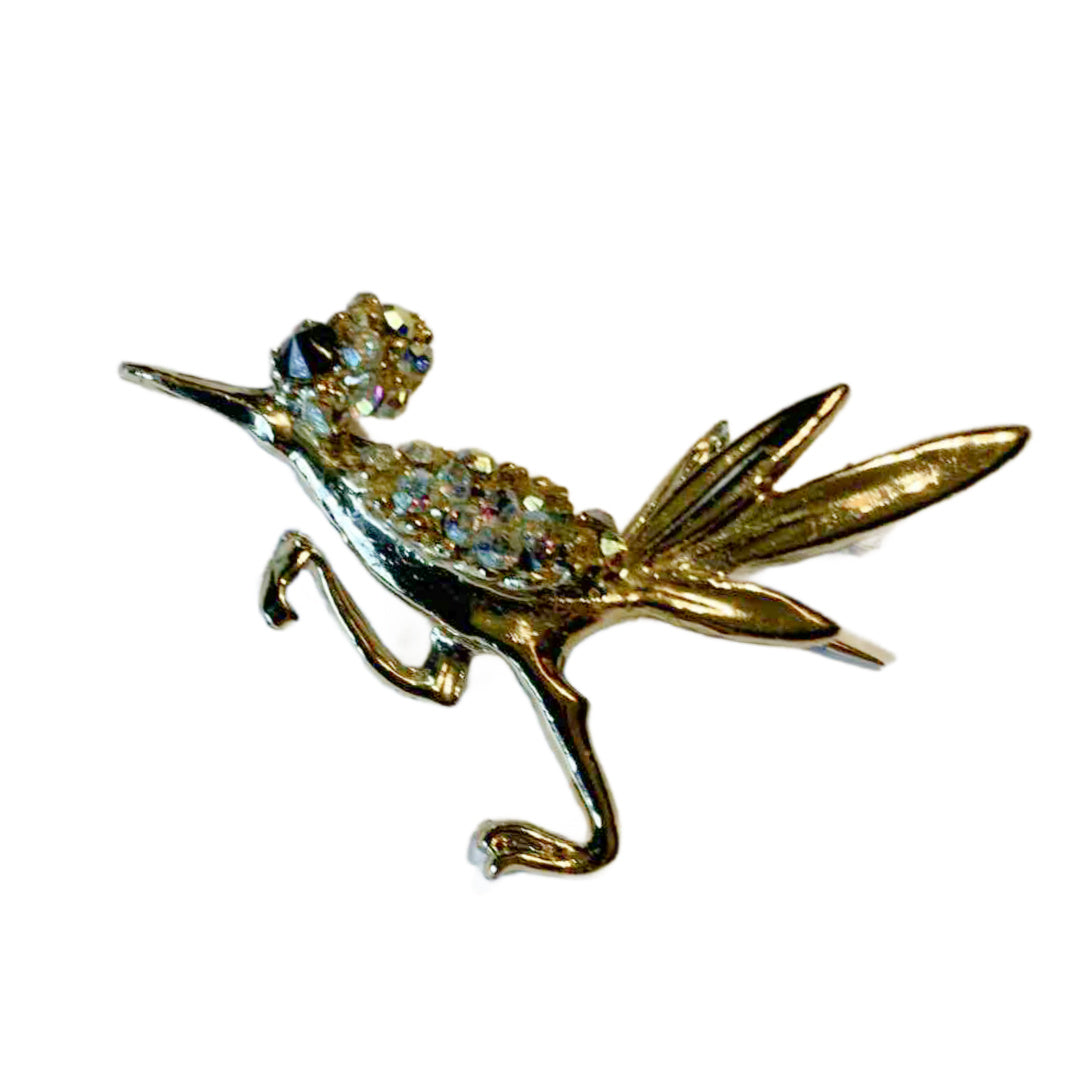 Spry Little Desert Bird Colored Rhinestone Brooch circa 1960s