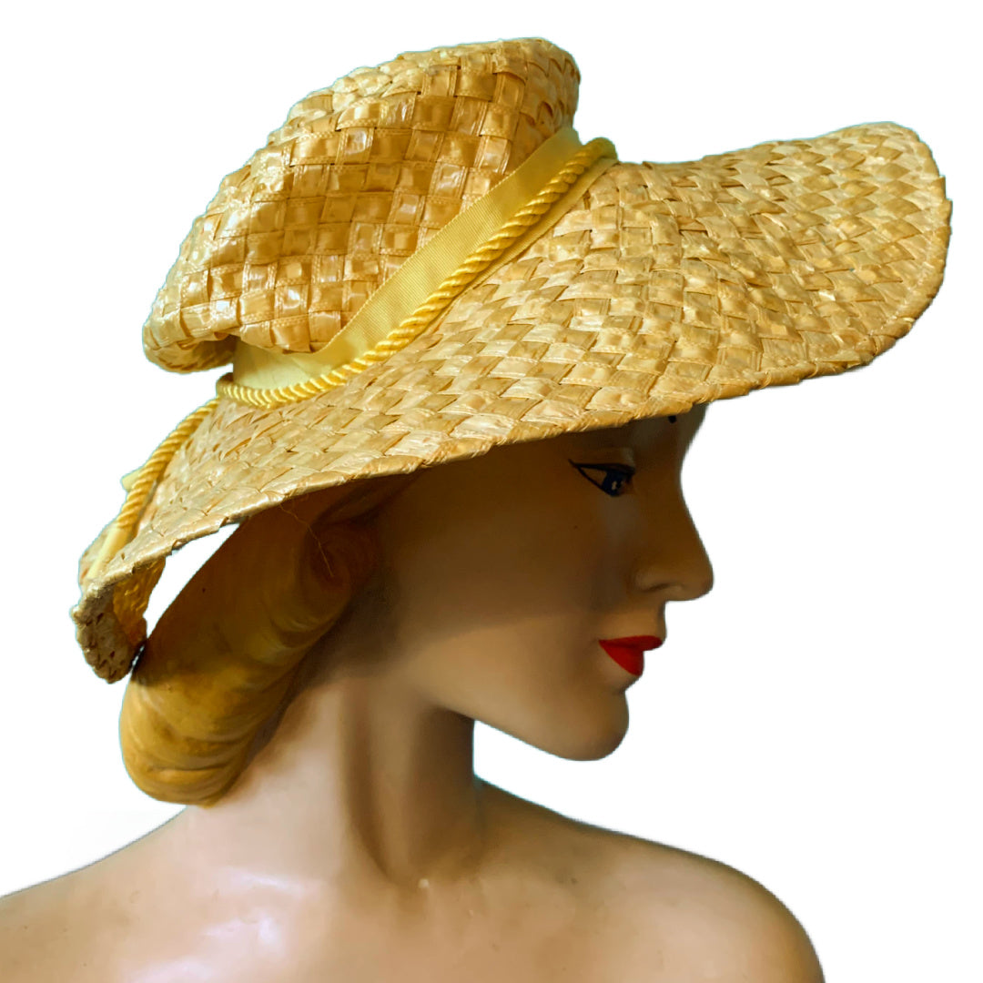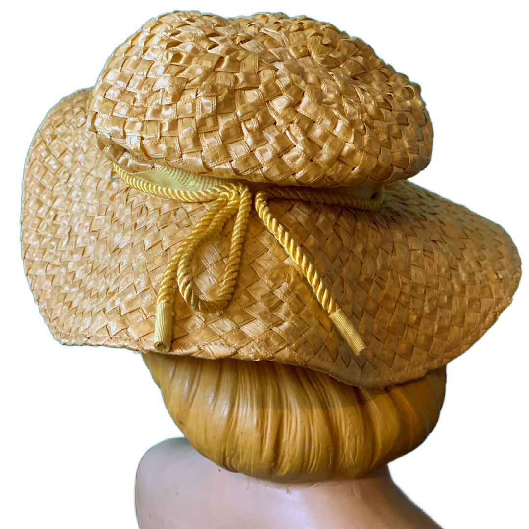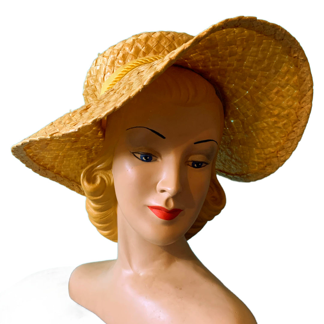 Sunshine Yellow Raffia Hat with Wide Brim circa 1970s