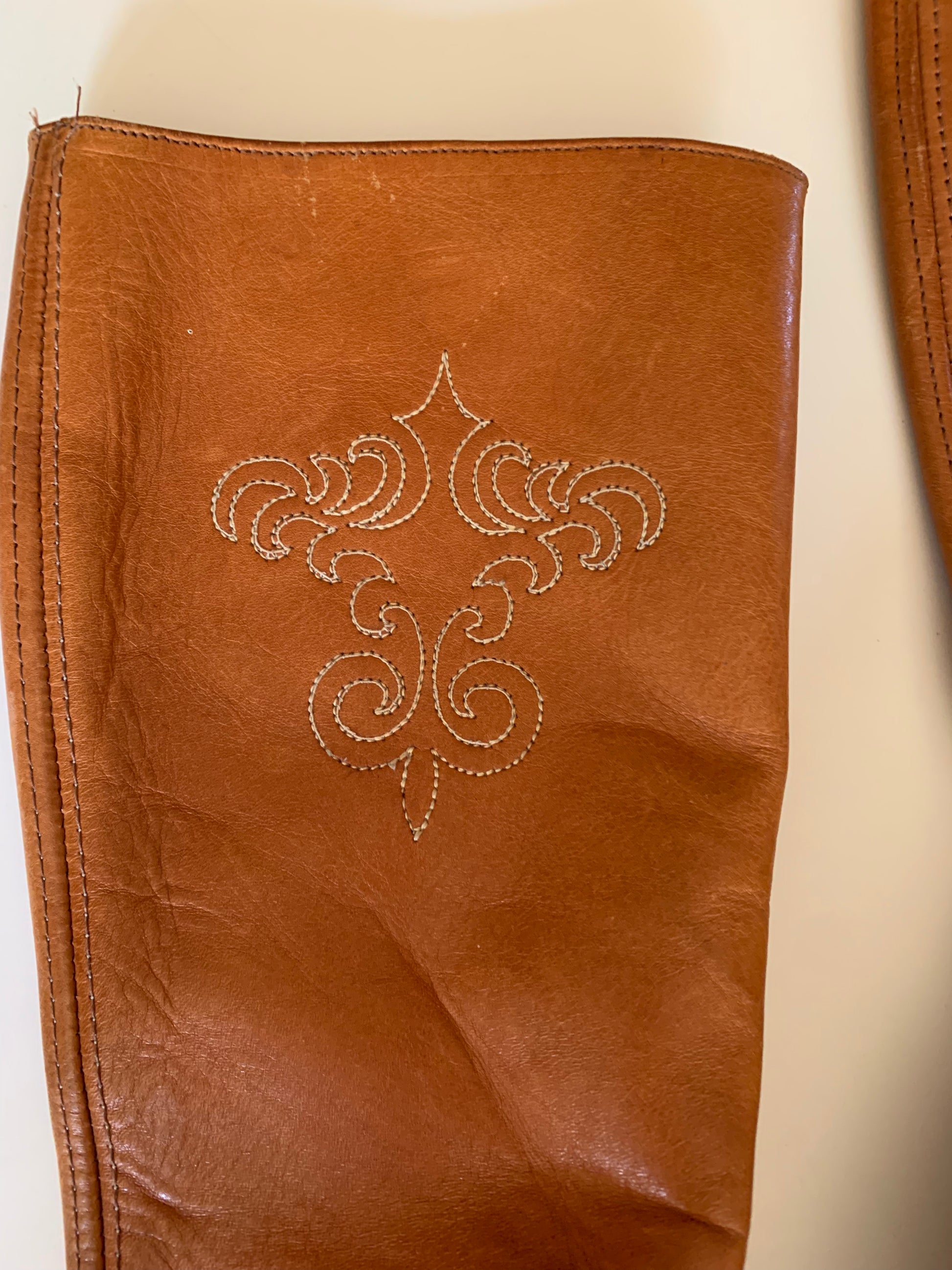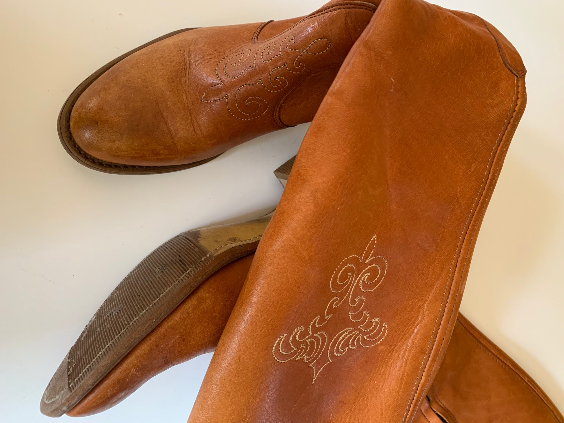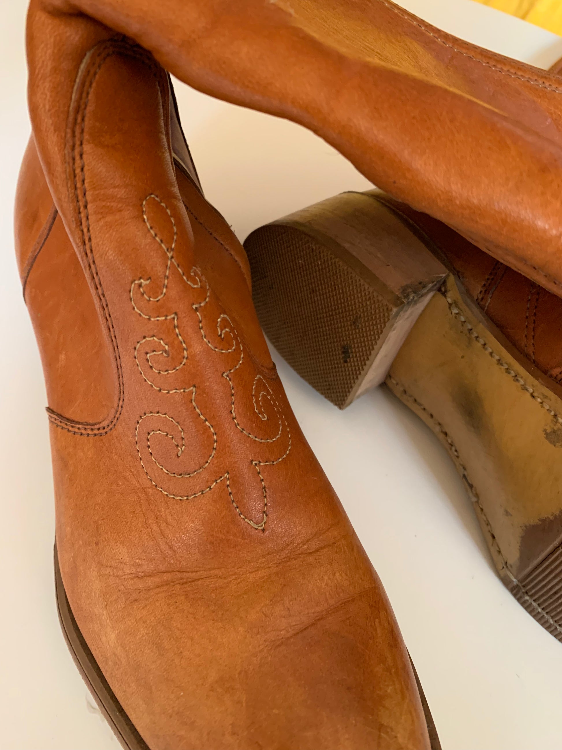 Terra Cotta Western Style Embroidered Leather Boots circa 1970s